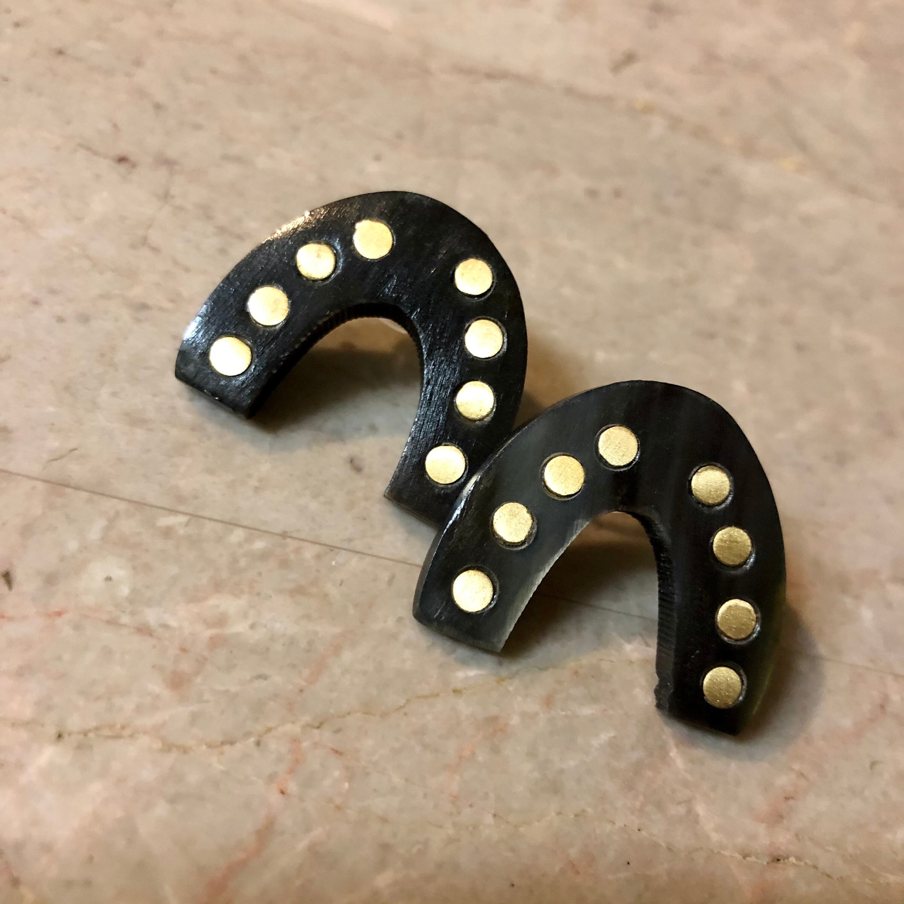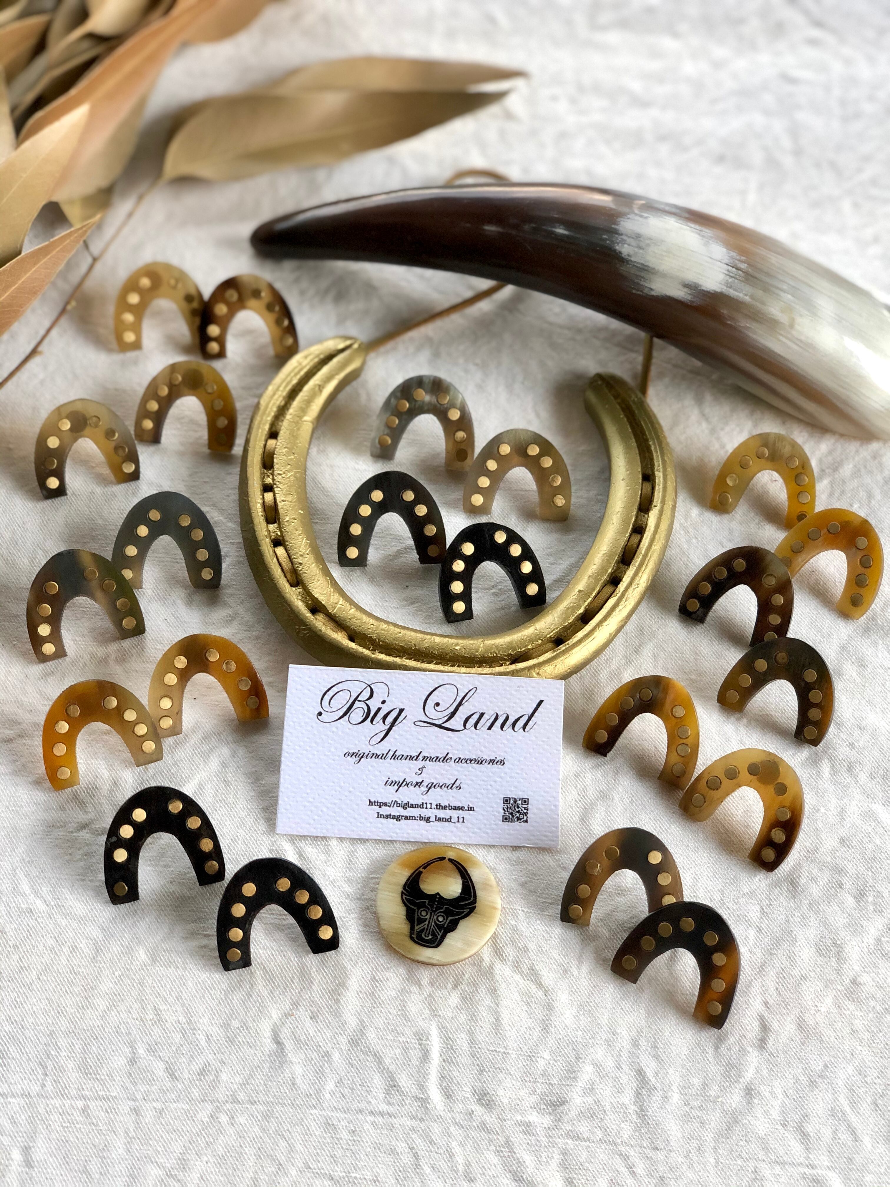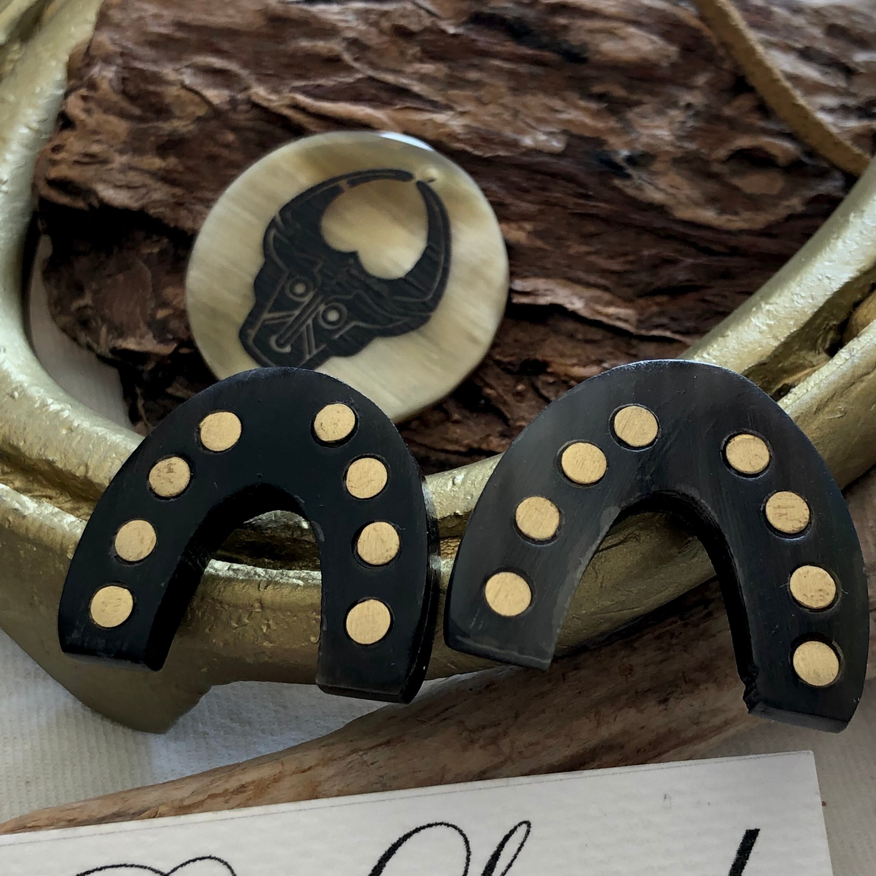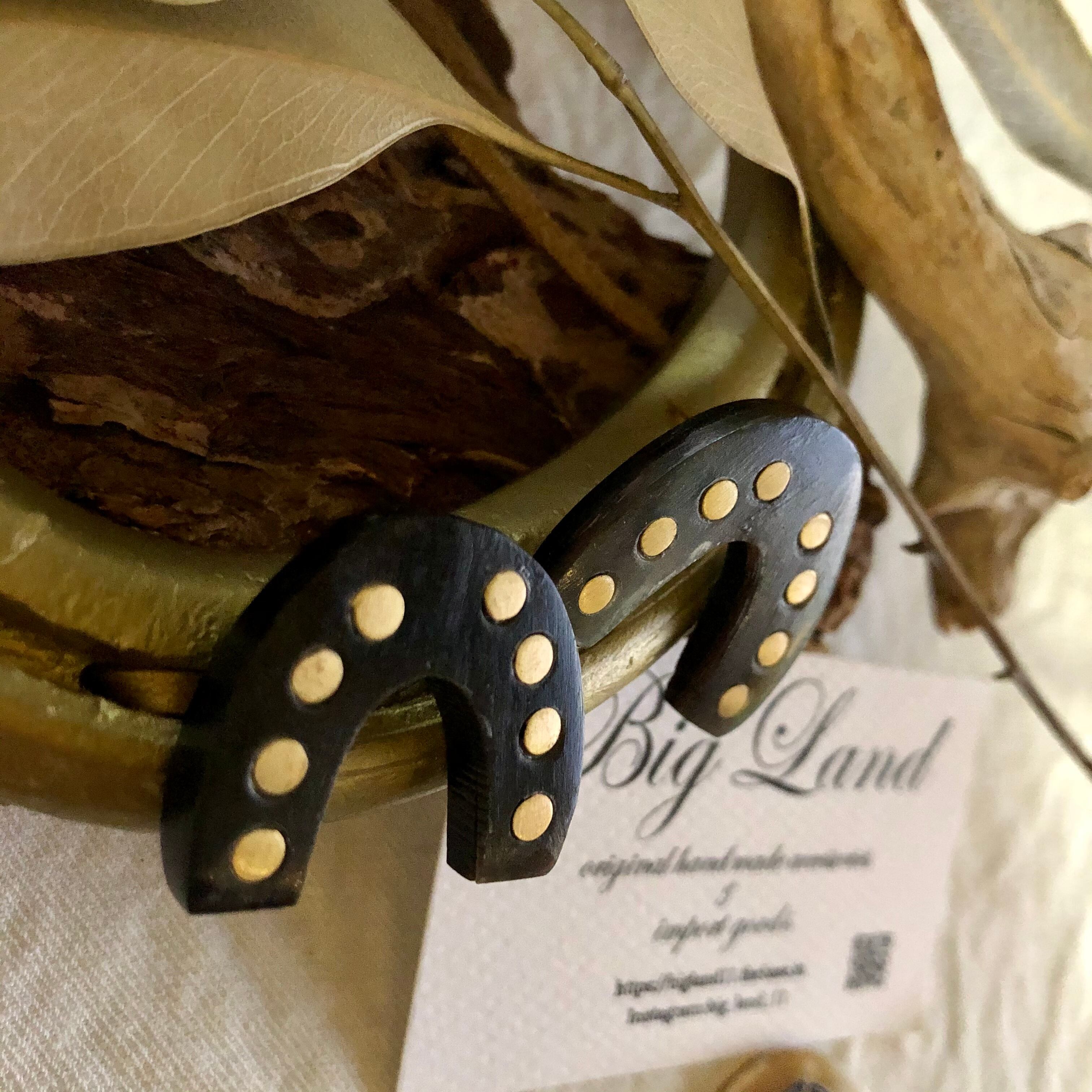 水牛と真鍮の異素材を組み合わせラッキーモチーフの馬蹄(ばてい)フォルムがなんとも可愛らしく水牛の表面は真鍮の雰囲気と合うようにマット仕上げにし耳元にピッタリフィット‼︎