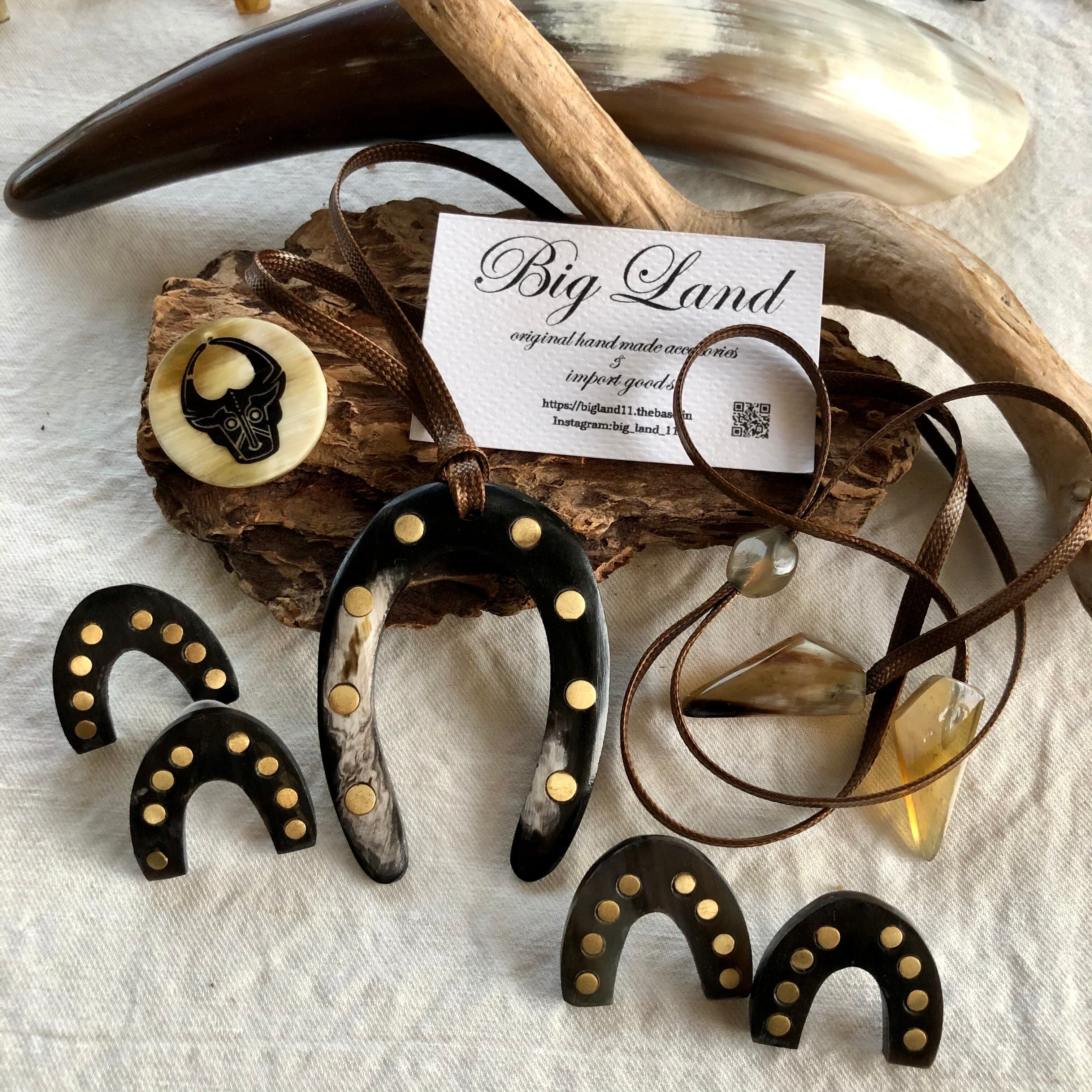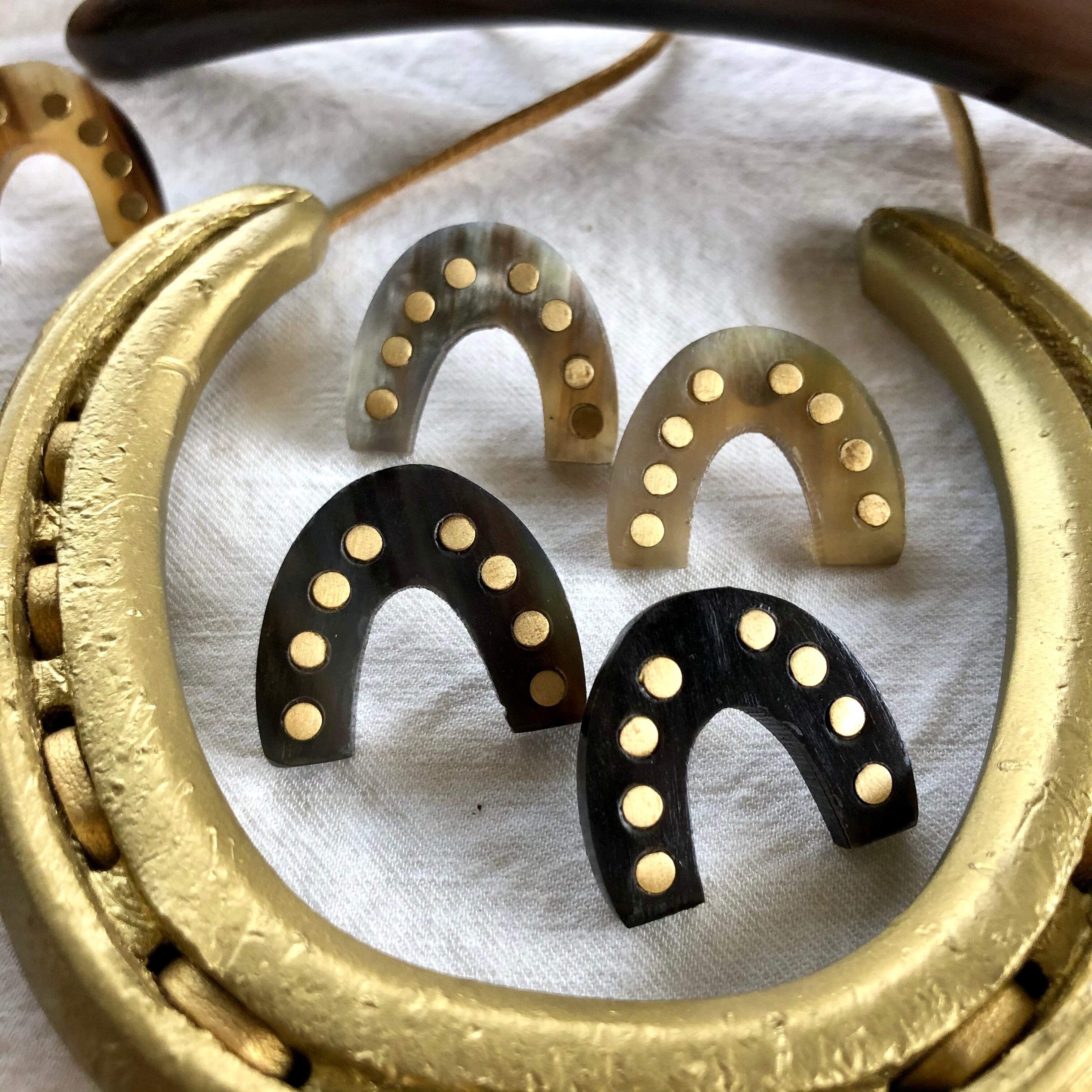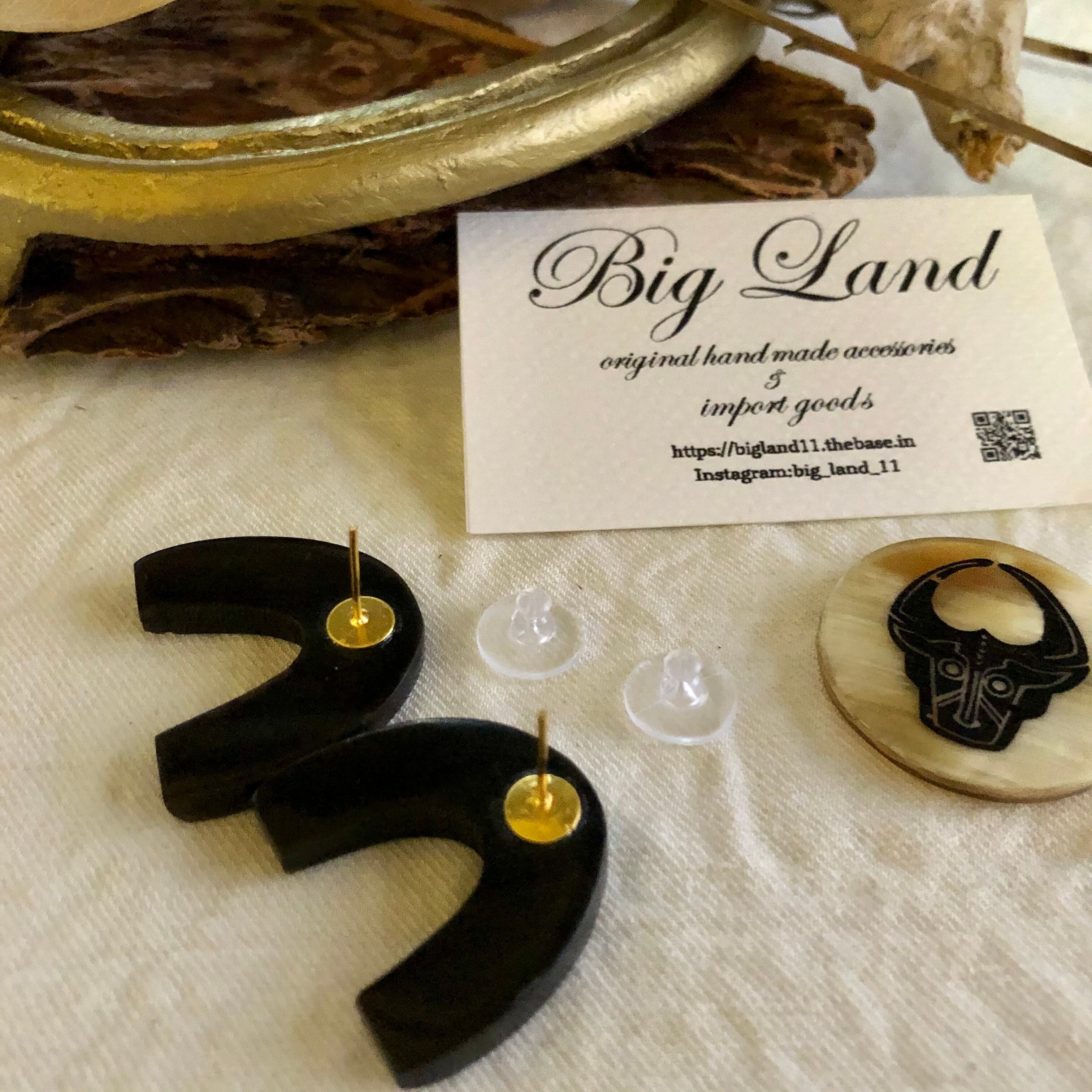 水牛と真鍮の異素材を組み合わせラッキーモチーフの馬蹄(ばてい)フォルムがなんとも可愛らしく水牛の表面は真鍮の雰囲気と合うようにマット仕上げにし耳元にピッタリフィット‼︎