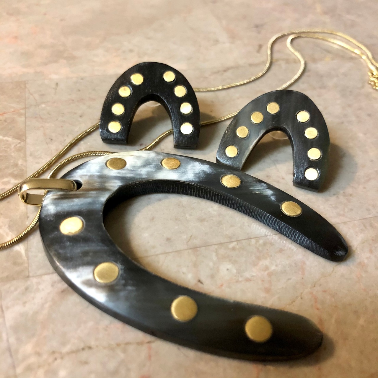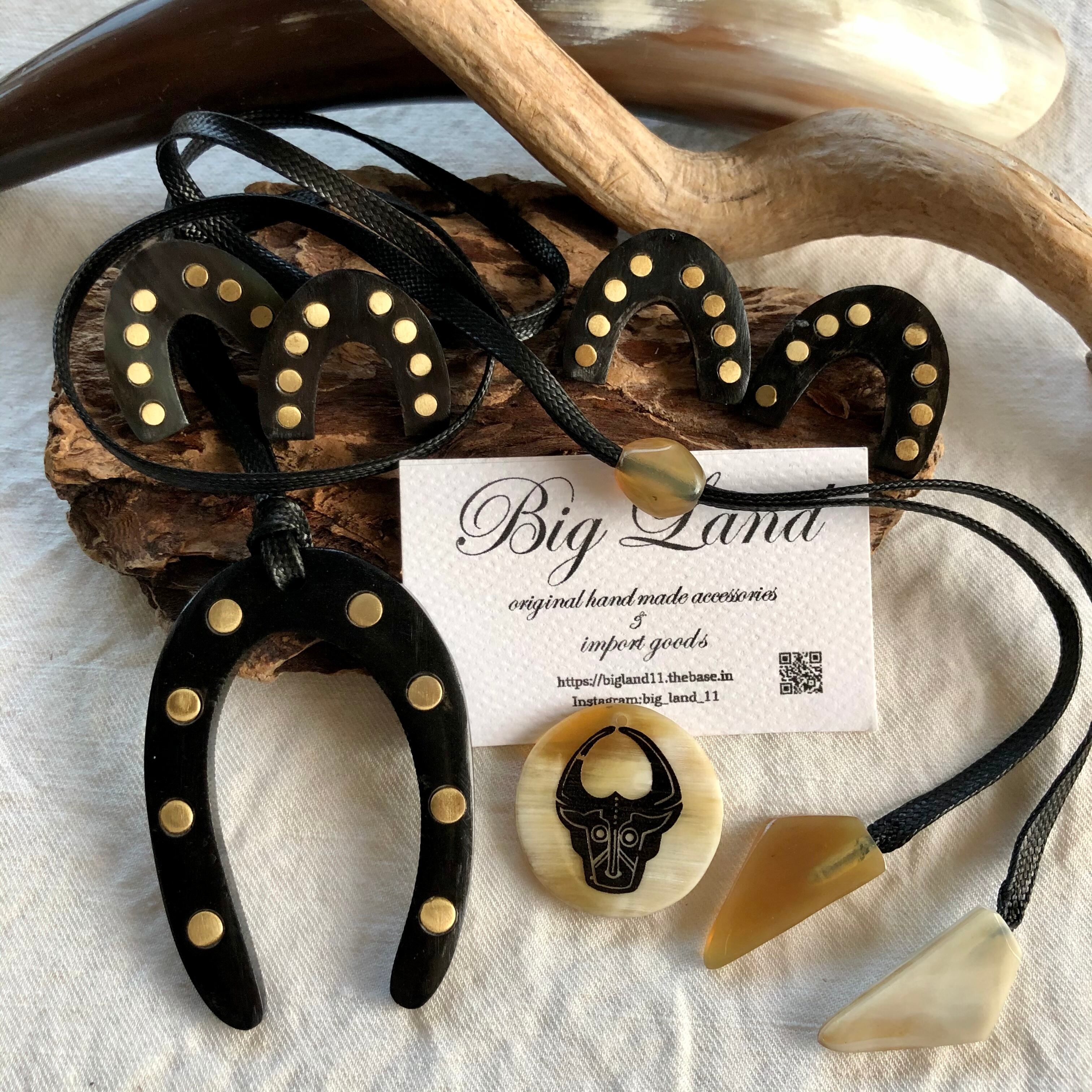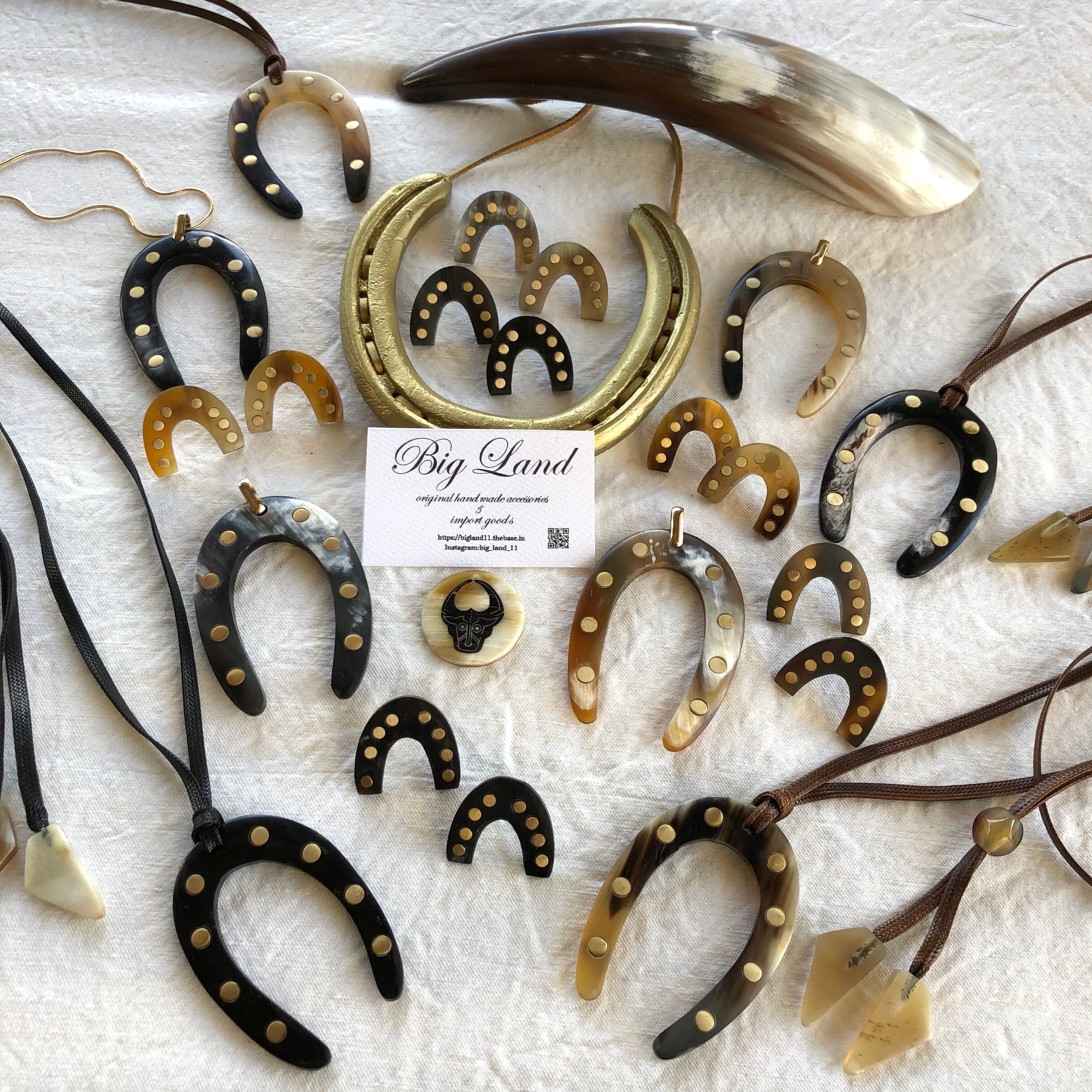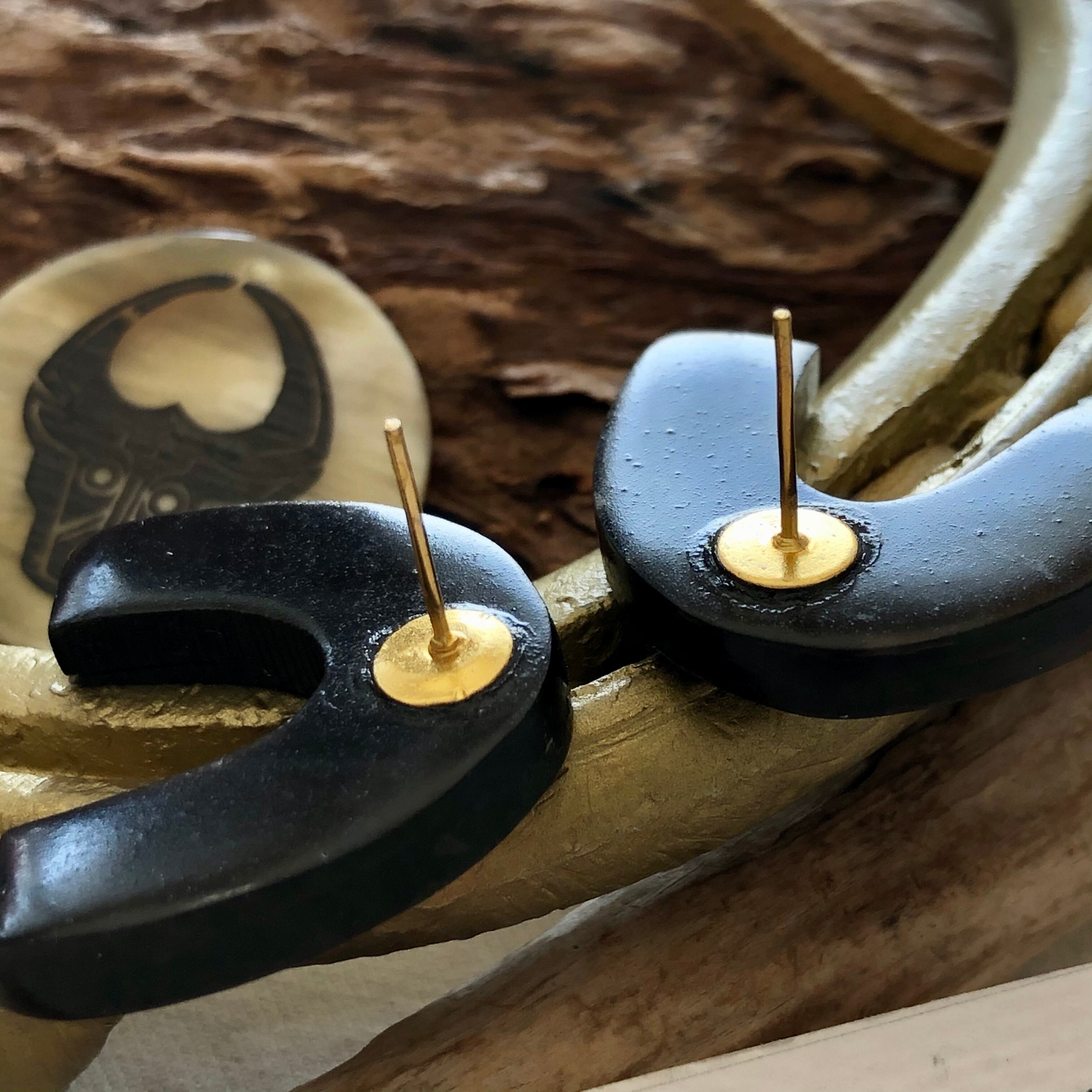 水牛と真鍮の異素材を組み合わせラッキーモチーフの馬蹄(ばてい)フォルムがなんとも可愛らしく水牛の表面は真鍮の雰囲気と合うようにマット仕上げにし耳元にピッタリフィット‼︎