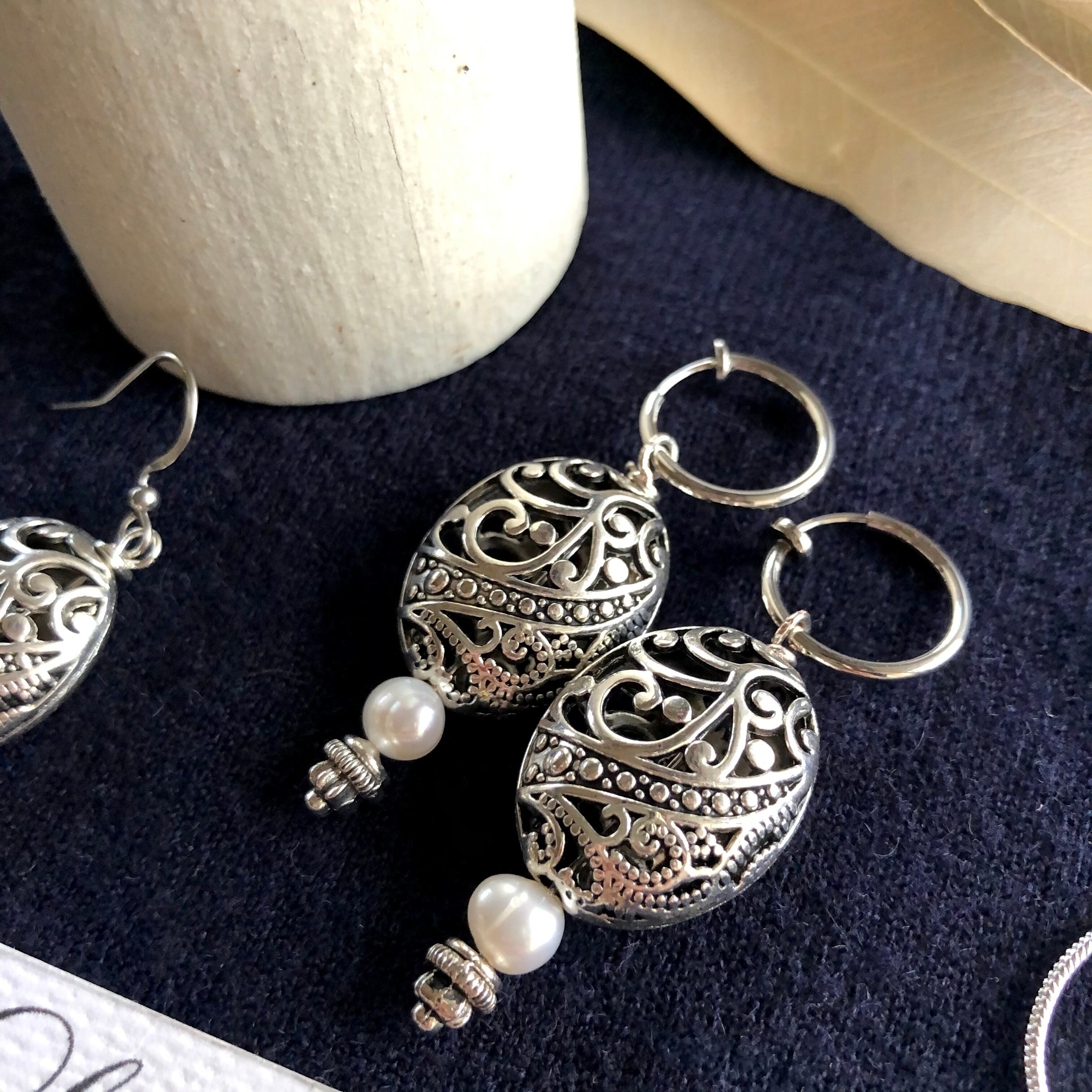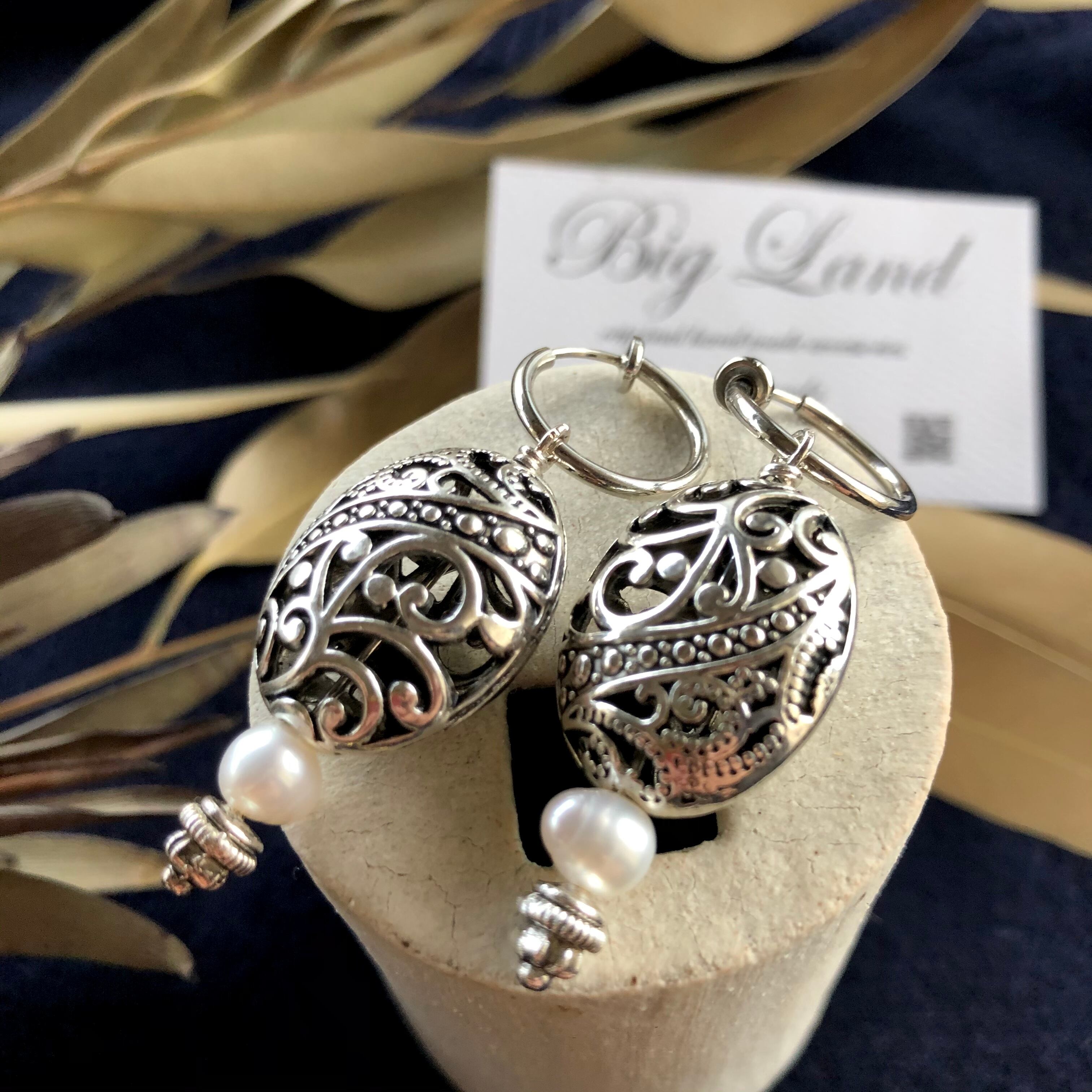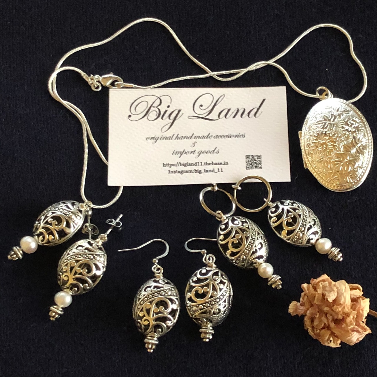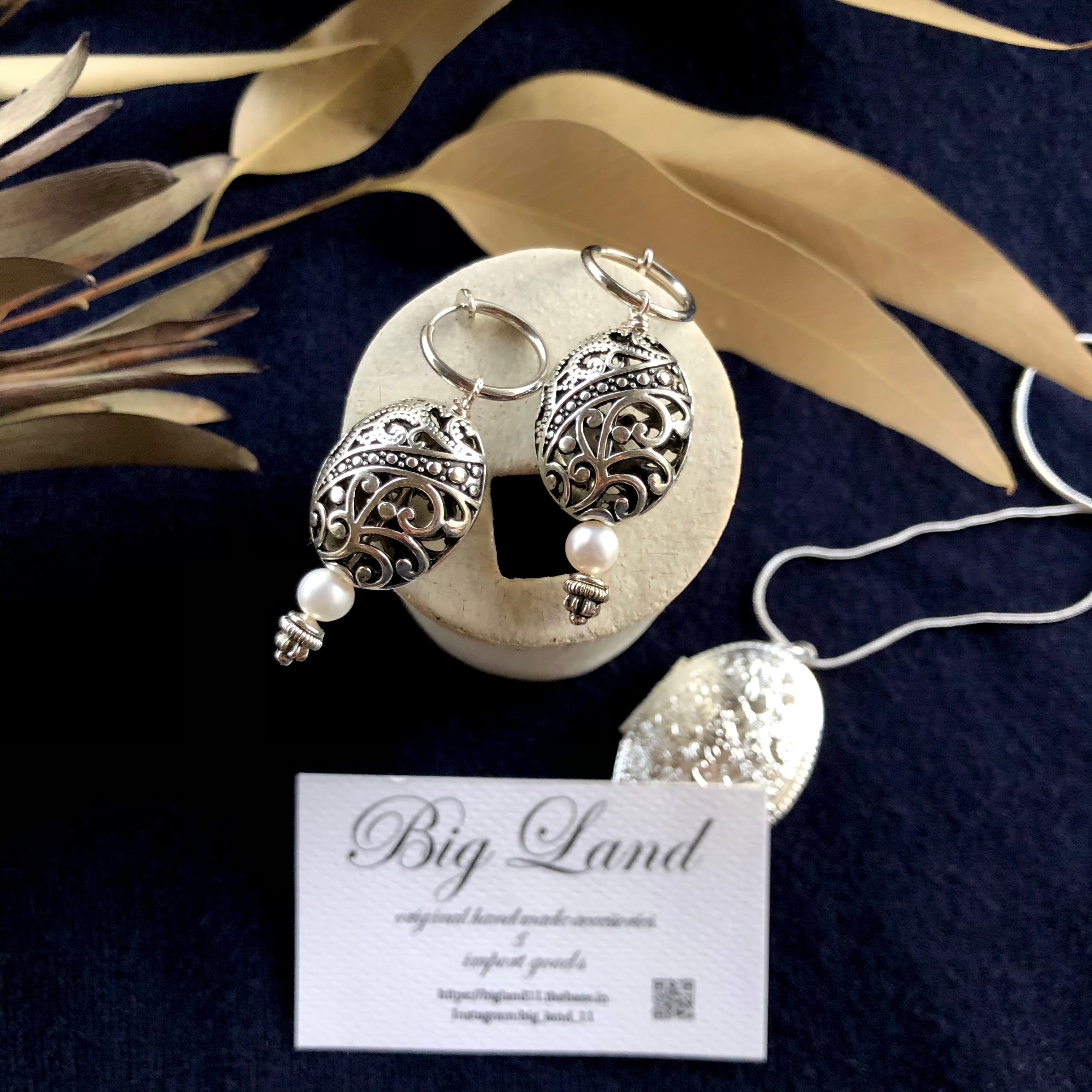 インドジュエリーを彷彿するようなエキゾチックなぽってりとした透かしデザインとパールを組み合わせ、存在感のある個性溢れるデザインに仕上げました✨