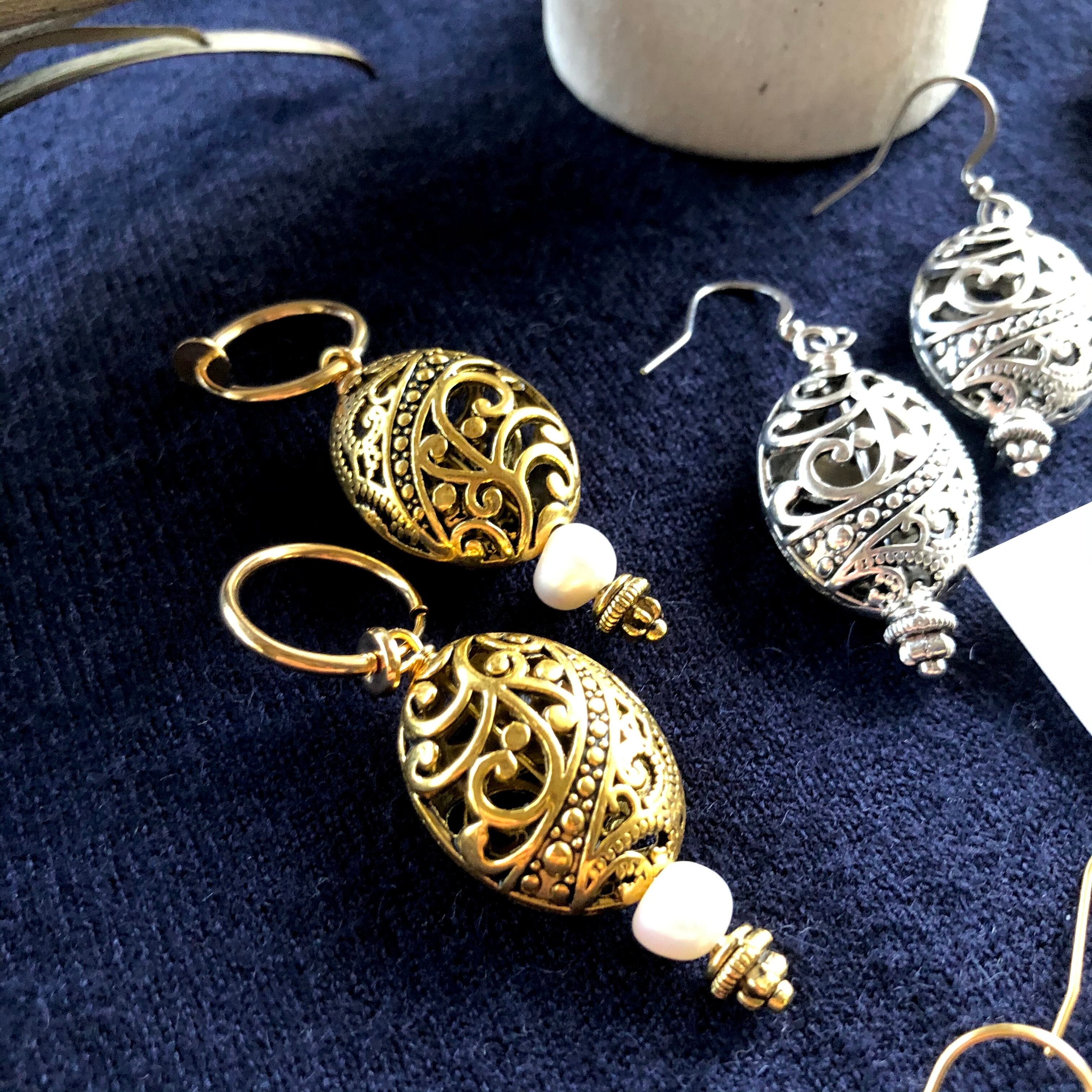 インドジュエリーを彷彿するようなエキゾチックなぽってりとした透かしデザインをシンプルに存在感のあるデザインに仕上げました‼︎