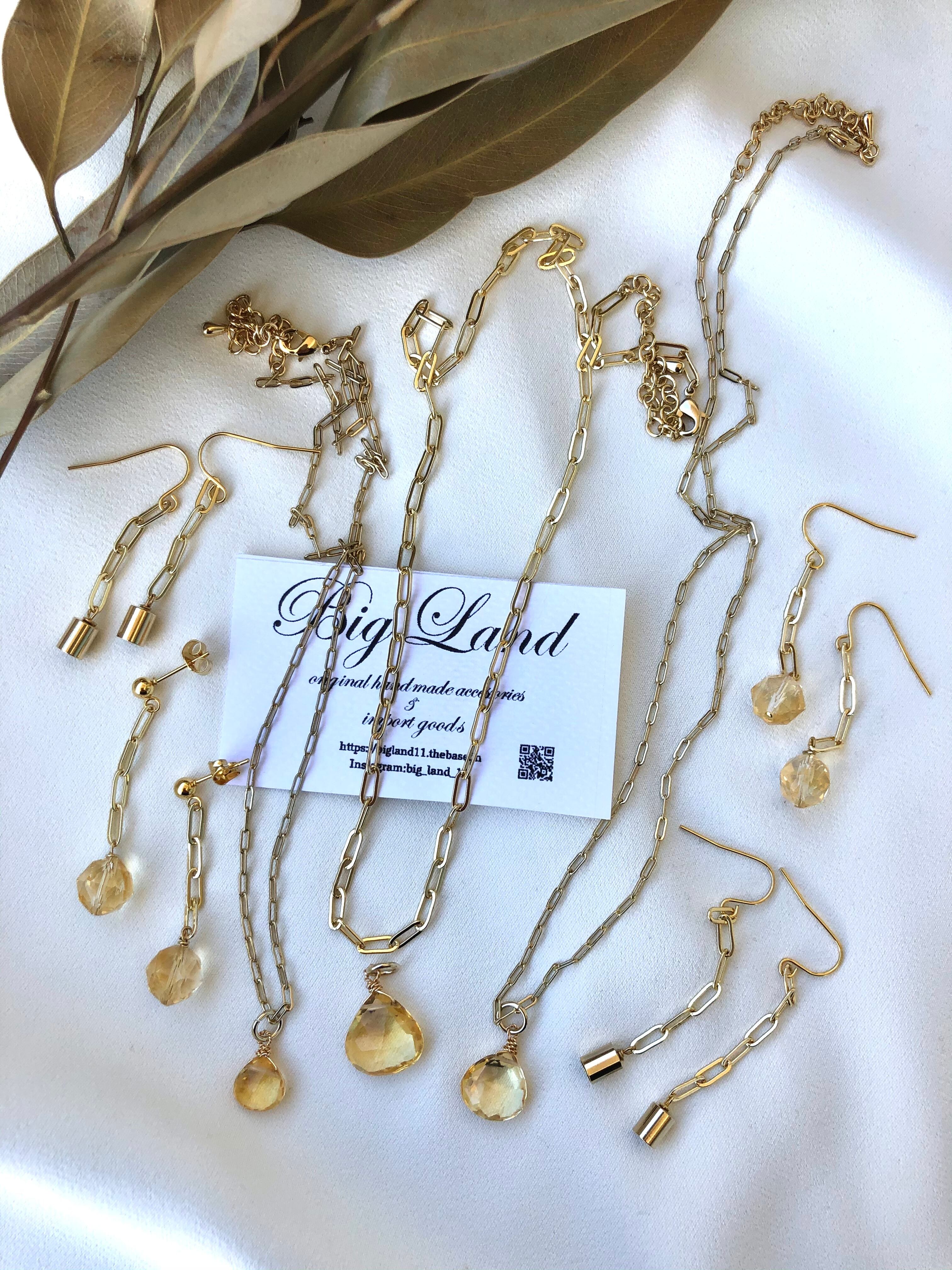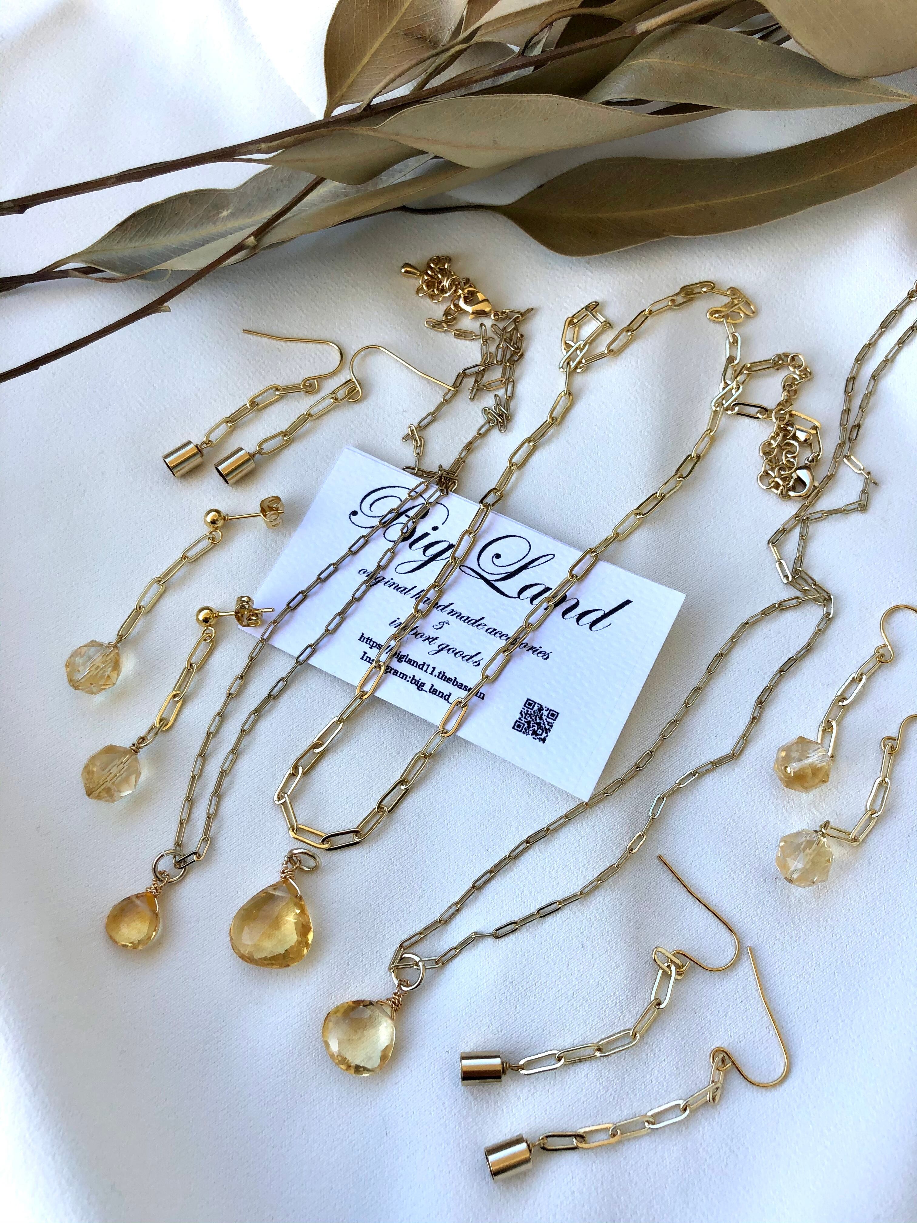 遅くなりましたが11月誕生石の宝石質シトリンとトレンドのチェーンを使ったネックレス等