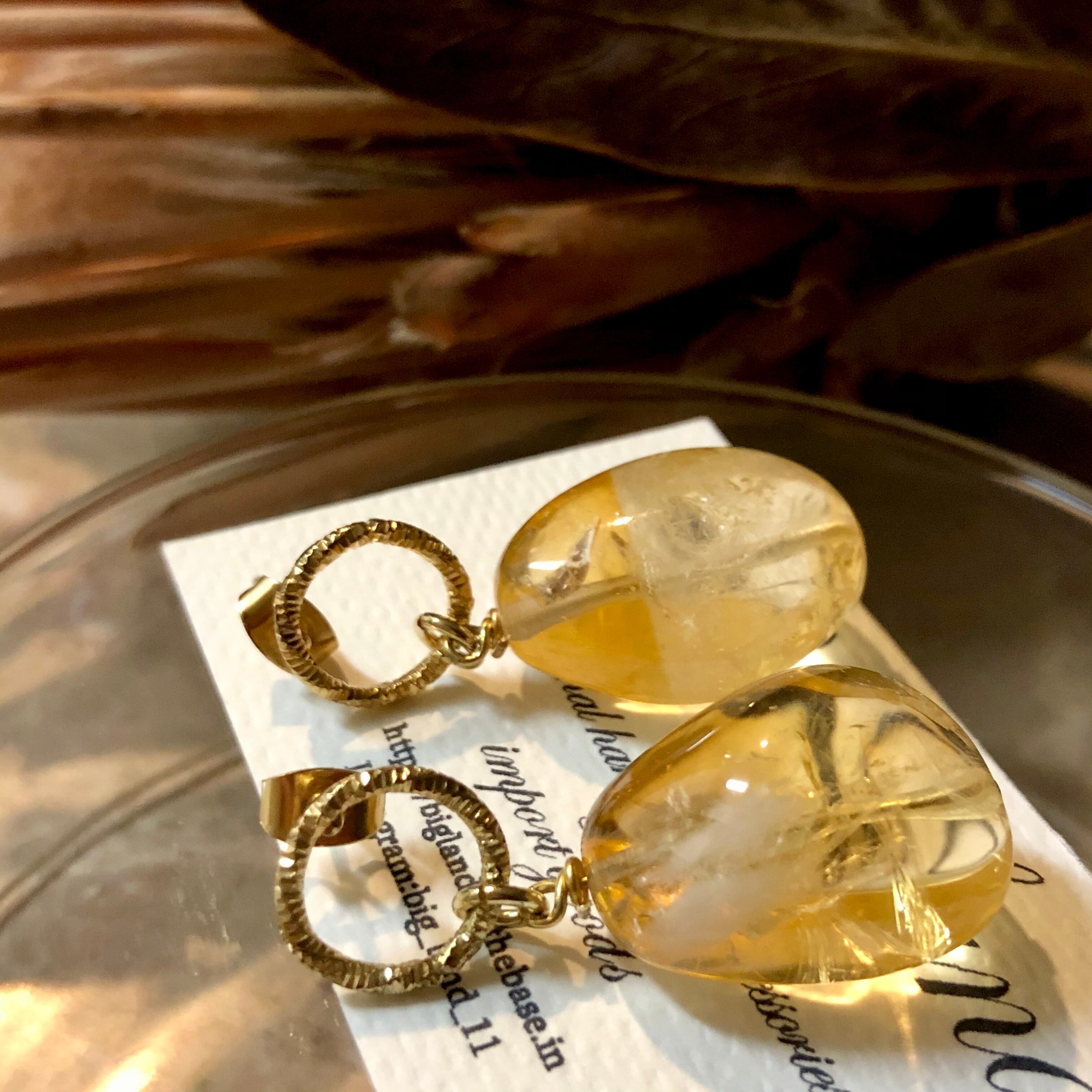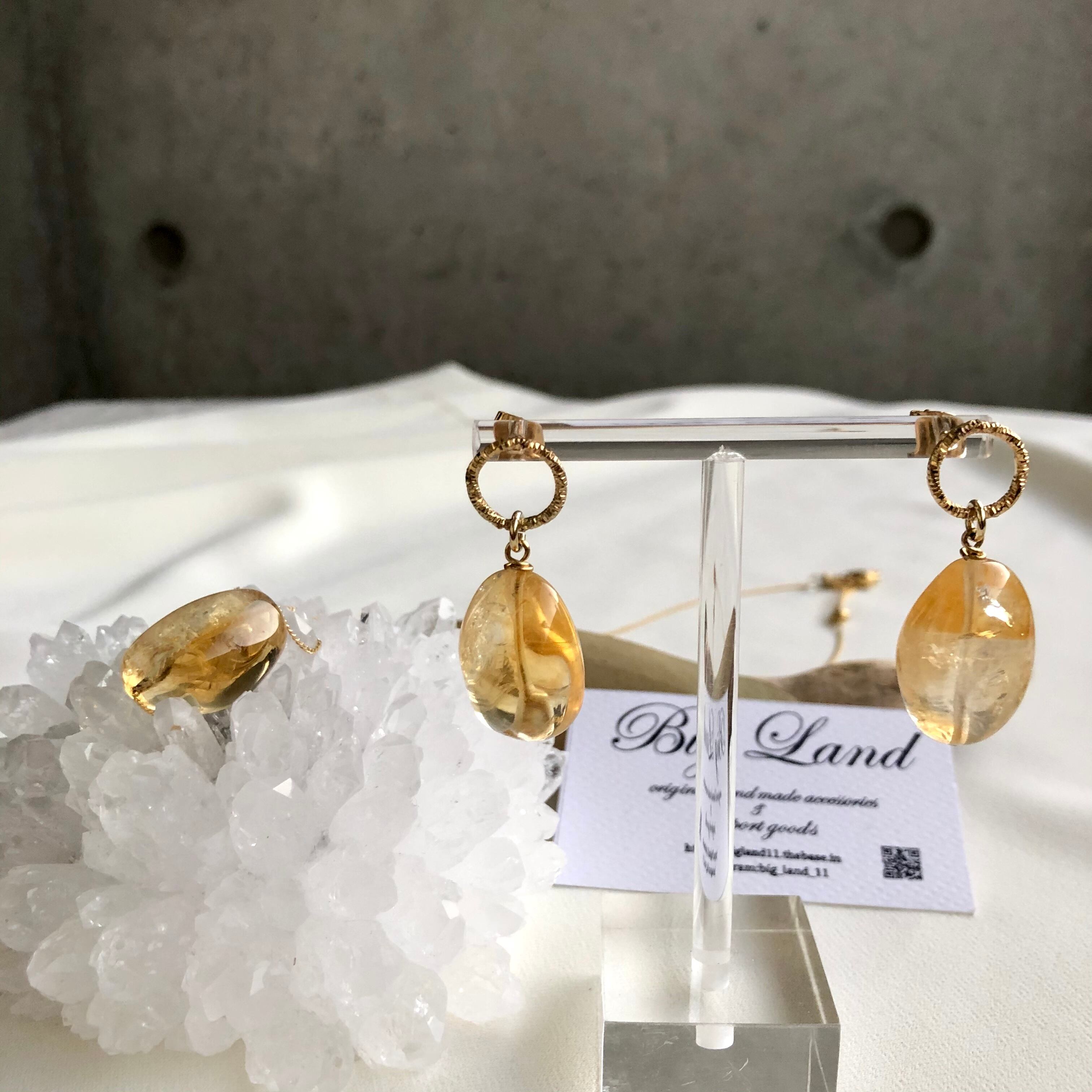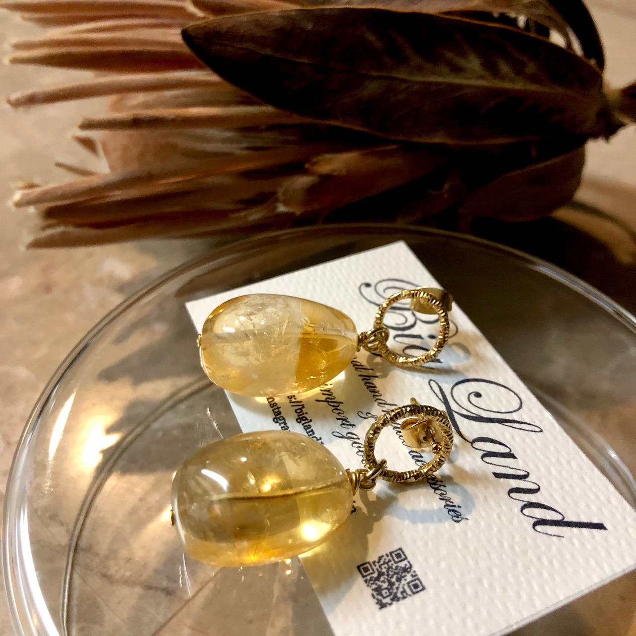 存在感あるタマゴ型のシトリン(黄色水晶)がまるで甘露飴のような色合いで濃淡グラデーションがなんとも美しくザ一点モノの天然石‼️大人っぽく高級感があり光が差すと神秘的さがピカイチ✨
