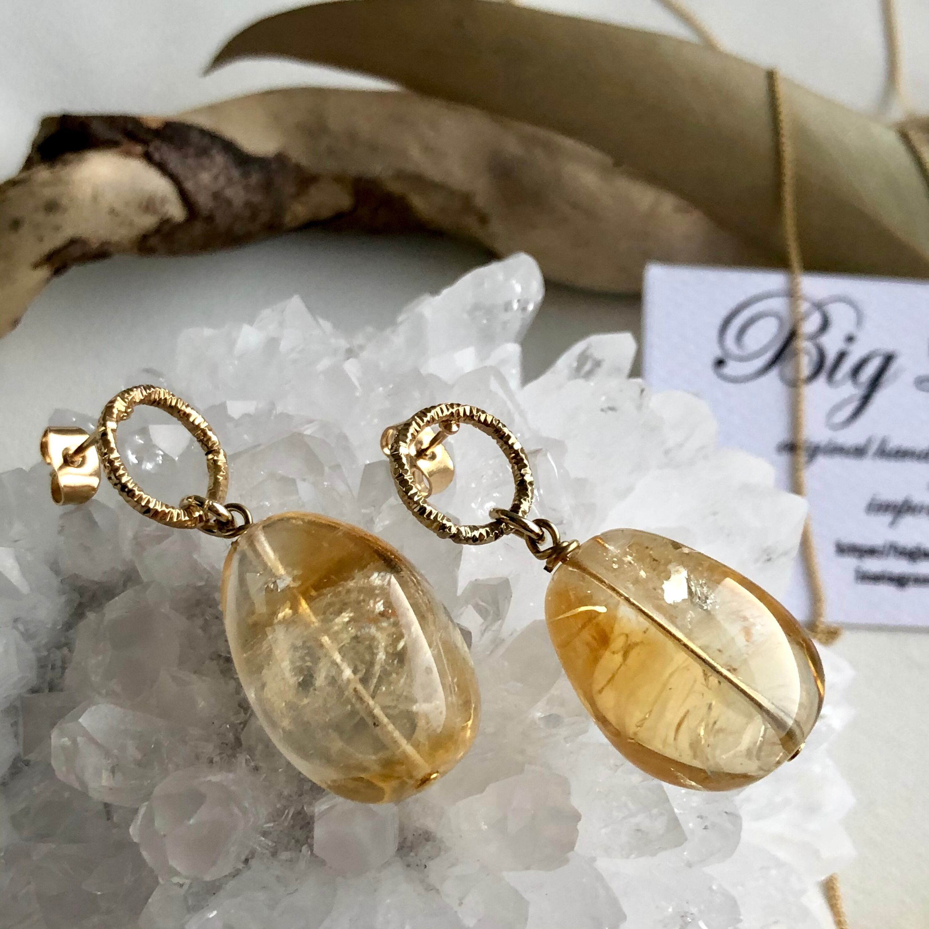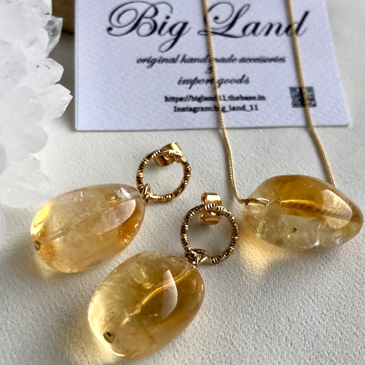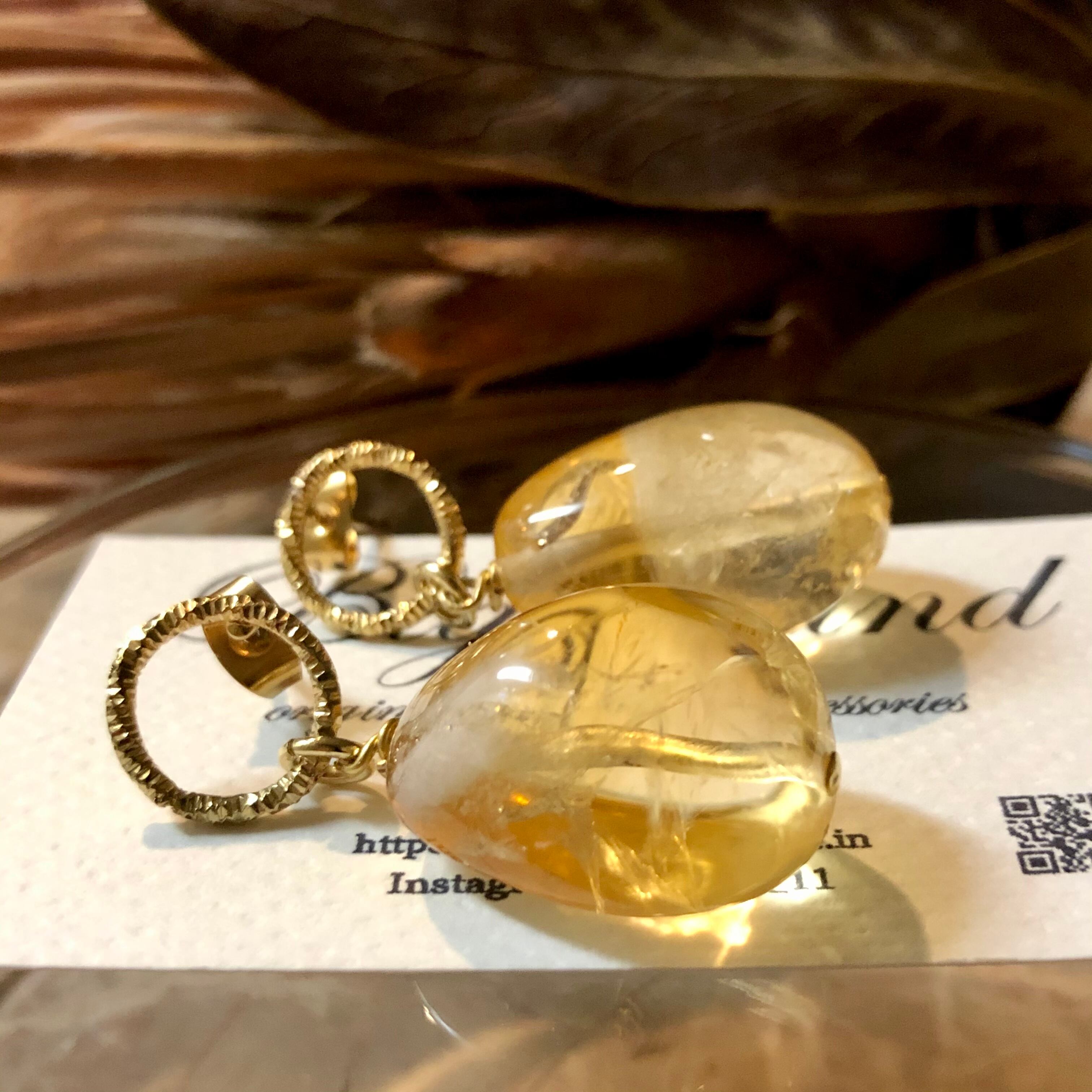 存在感あるタマゴ型のシトリン(黄色水晶)がまるで甘露飴のような色合いで濃淡グラデーションがなんとも美しくザ一点モノの天然石‼️大人っぽく高級感があり光が差すと神秘的さがピカイチ✨
