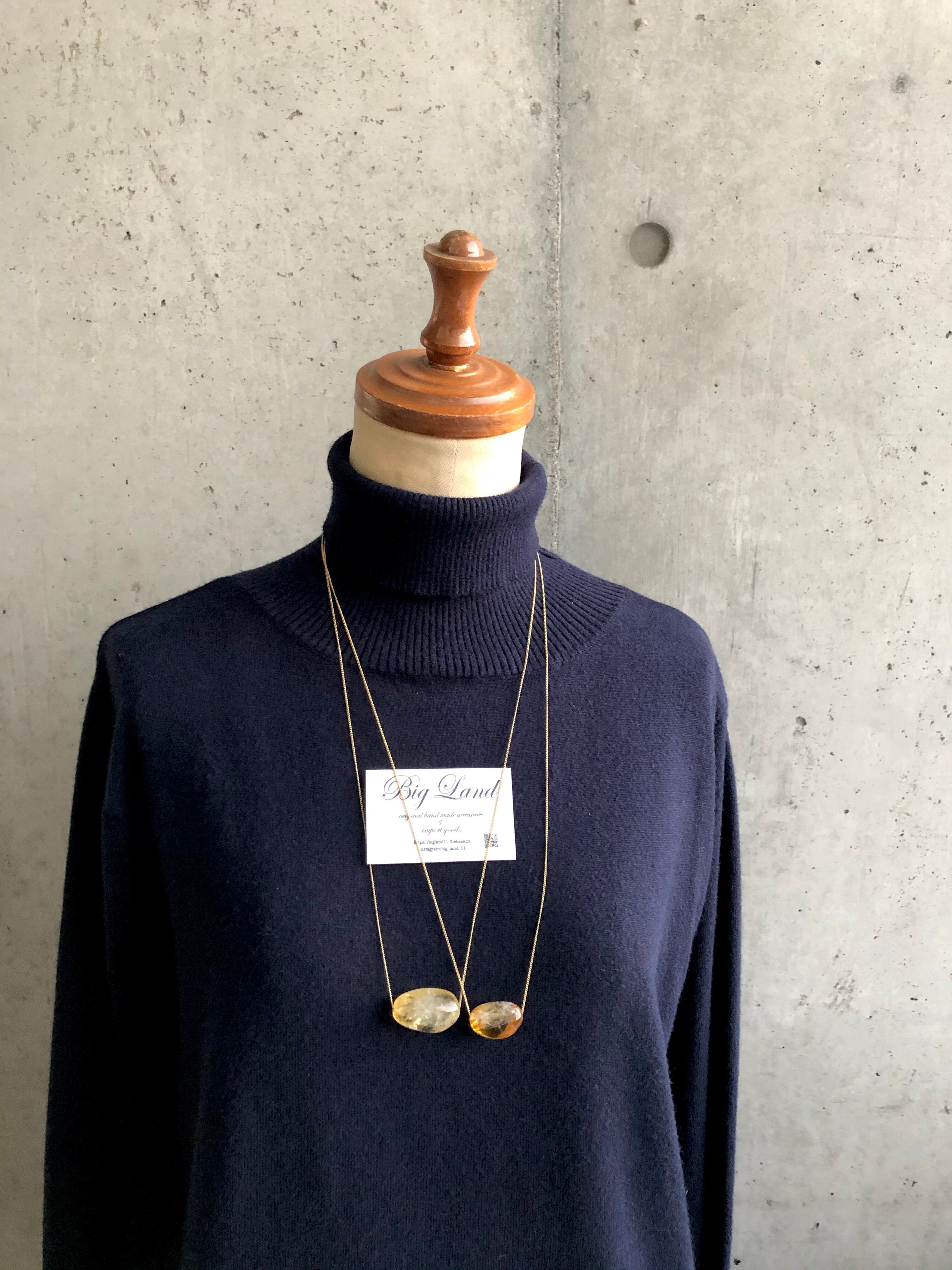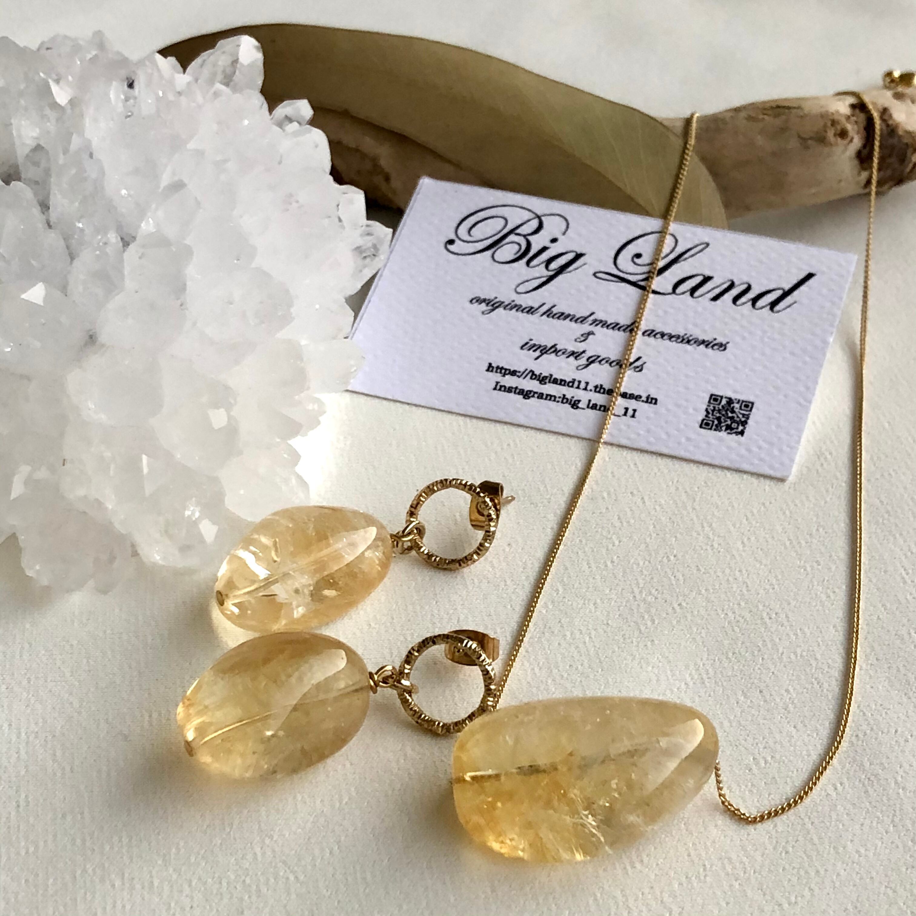 定番化している水晶ネックレスの黄色バージョンもこれまた個性的でセットコーデもgood