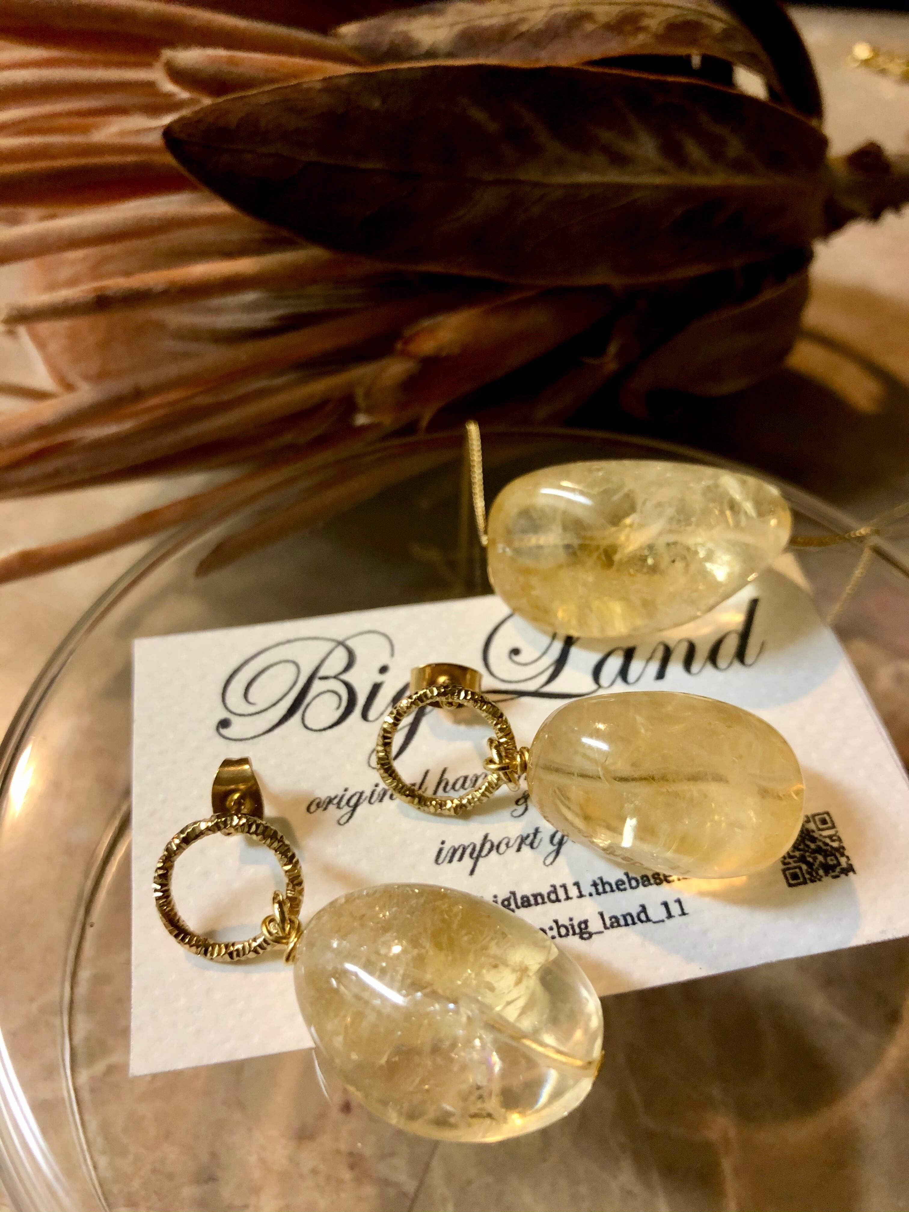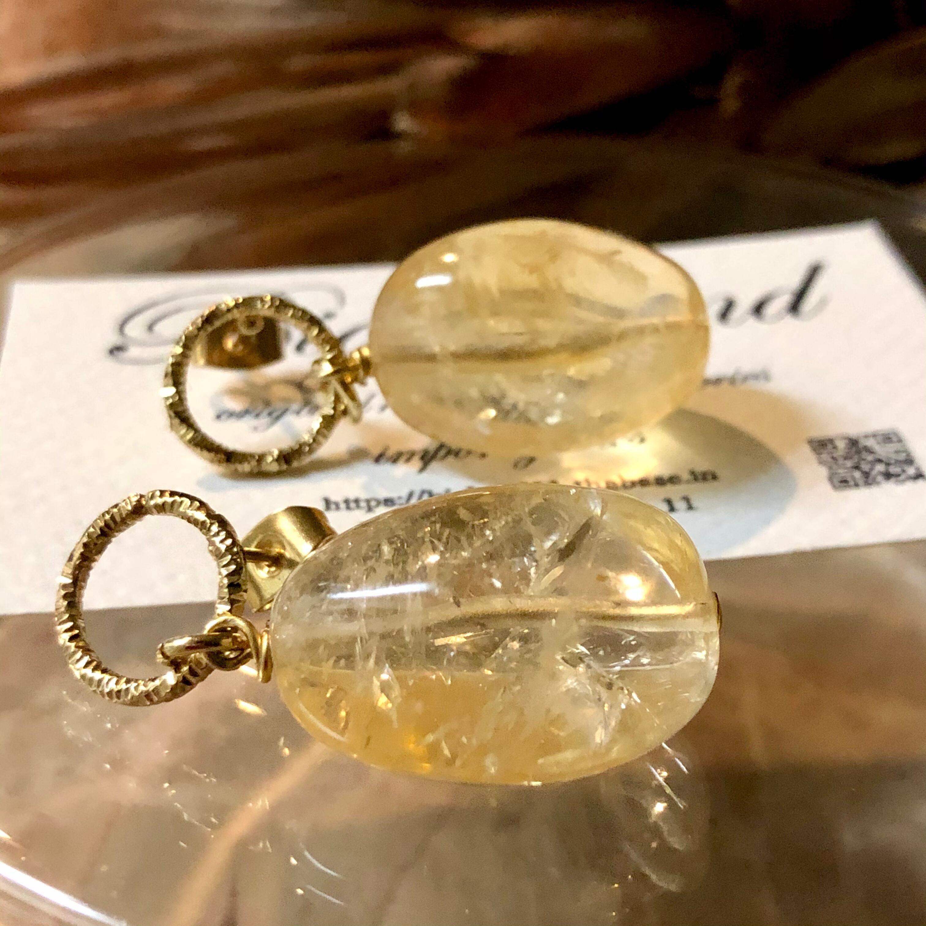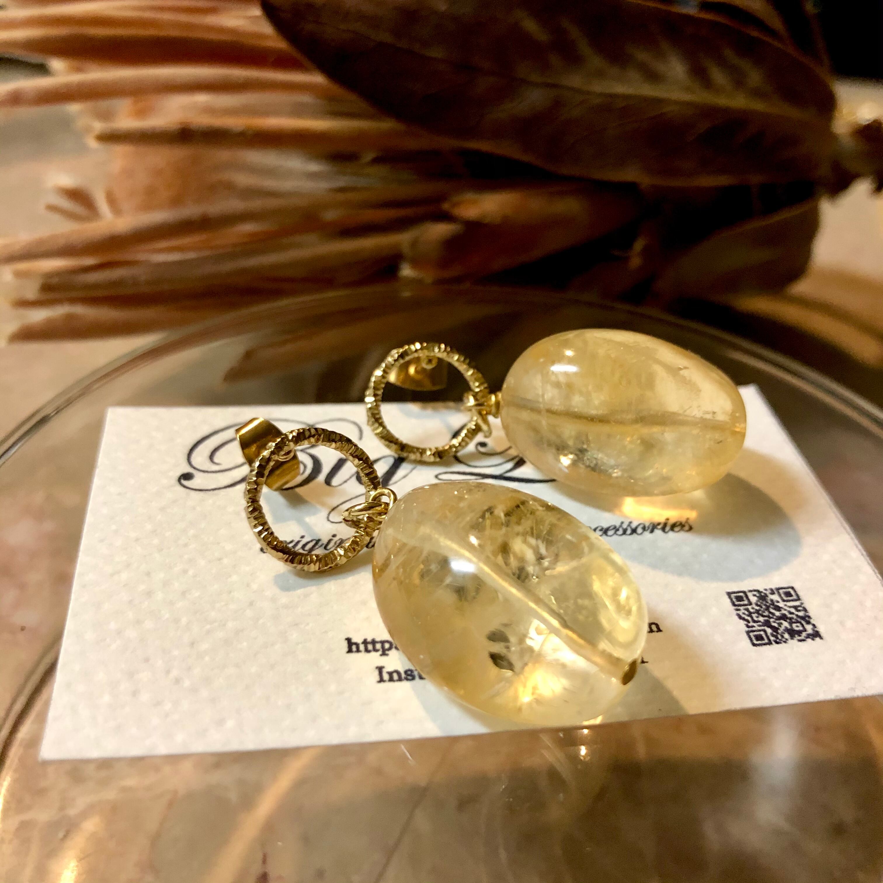 存在感あるタマゴ型のシトリン(黄色水晶)がまるでべっこう飴のような色合いとフォルムで(о´∀`о)思わず口に入れてしまいたくなる様な色んな意味で魅力的な天然石‼️大人っぽく高級感があり光が差すと神秘的さがピカイチ✨