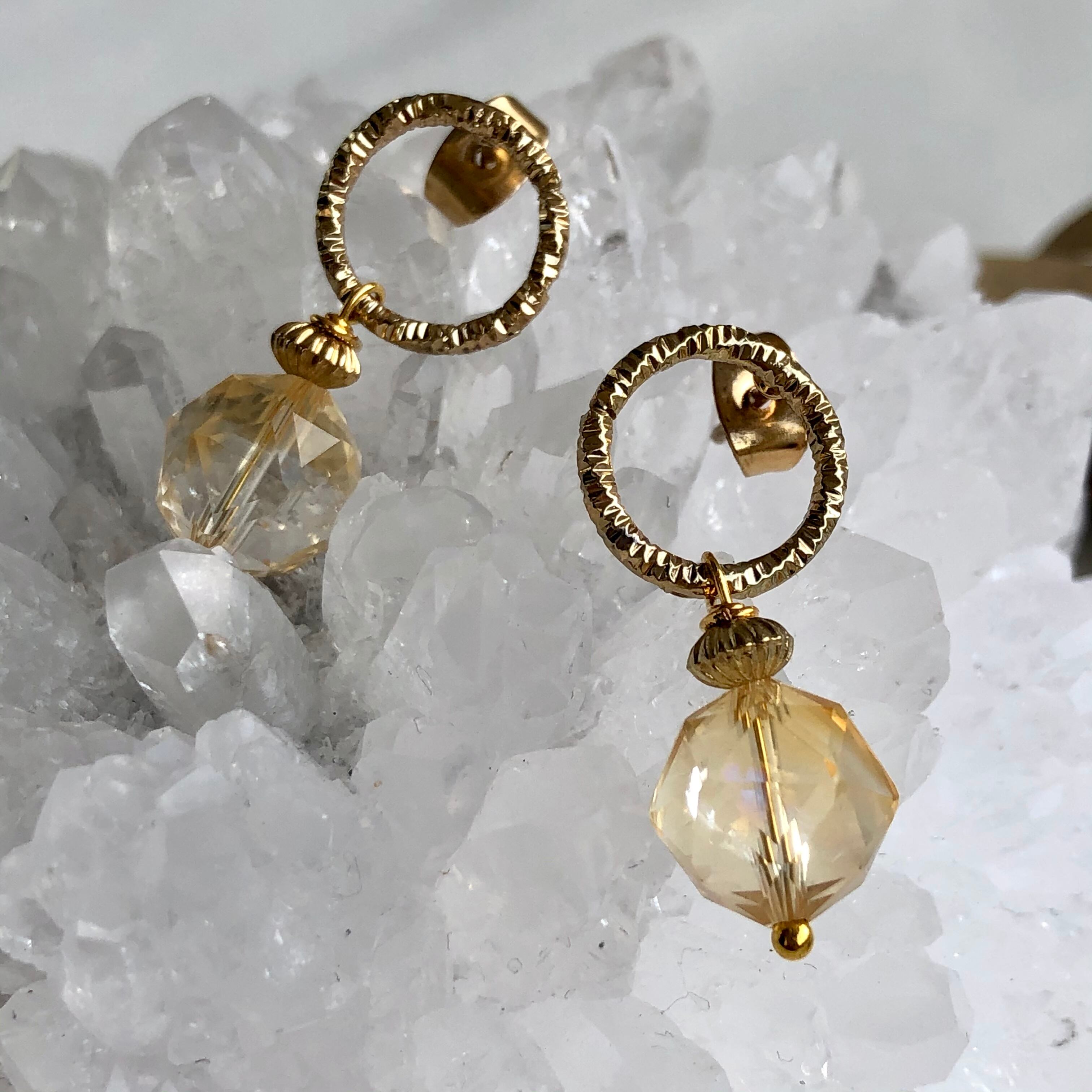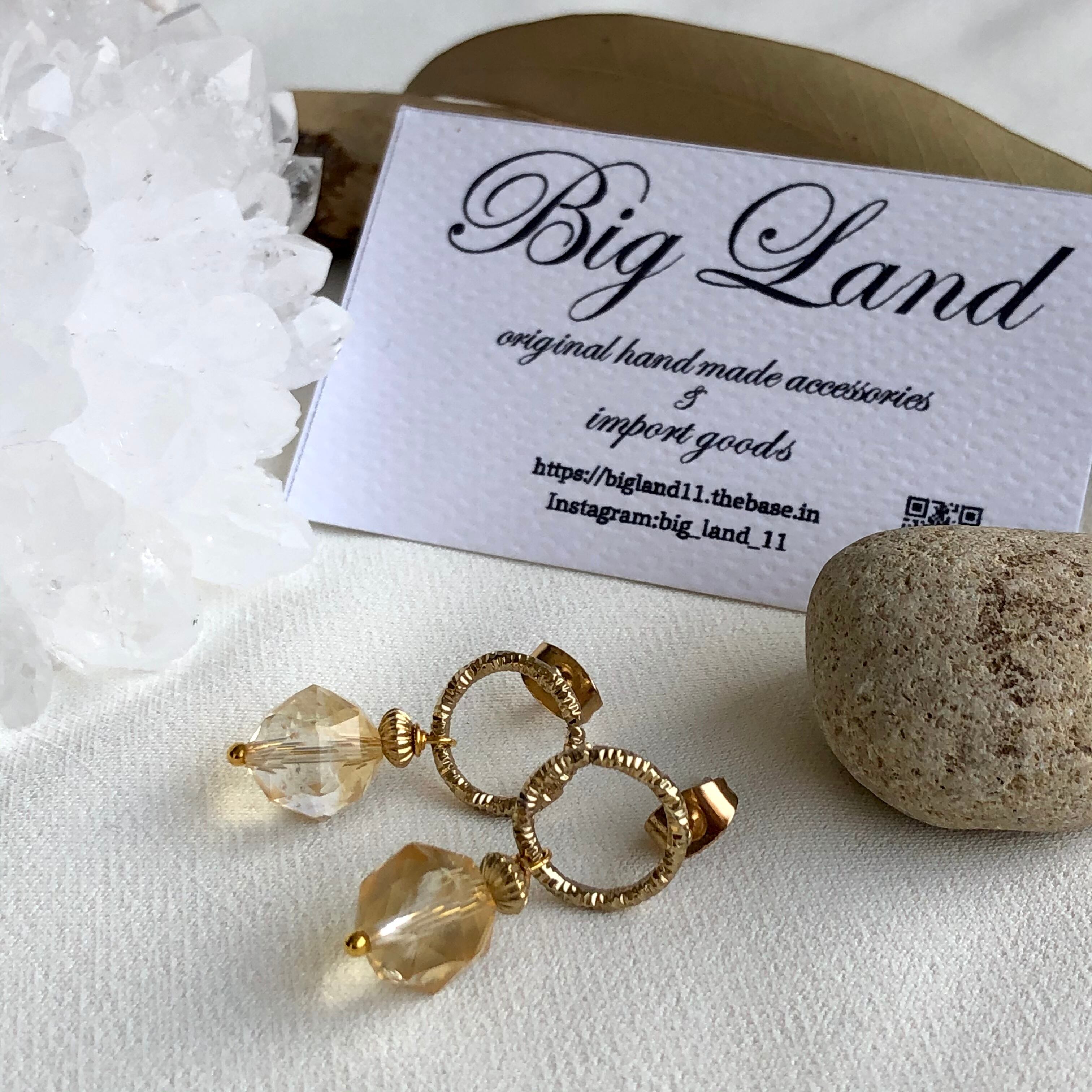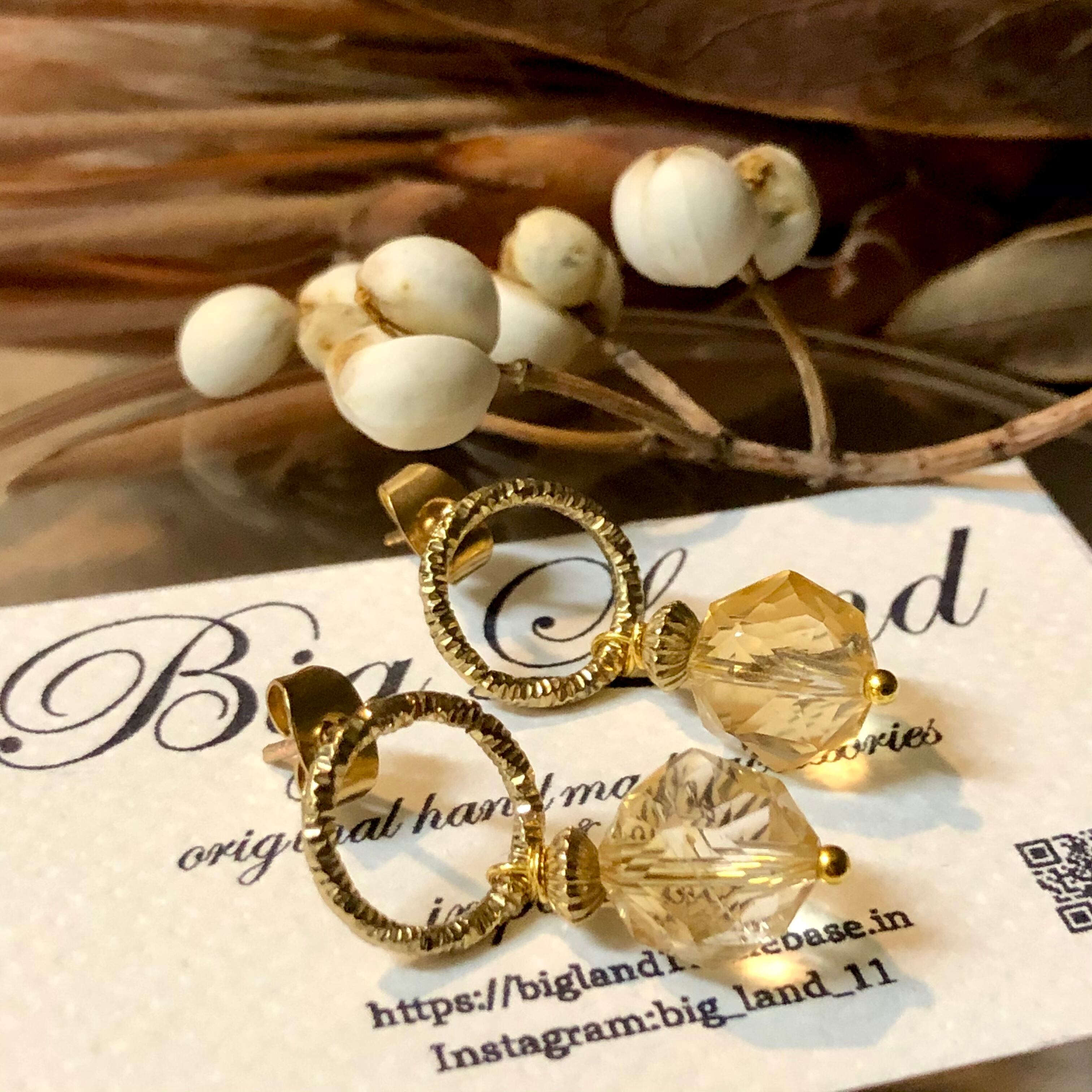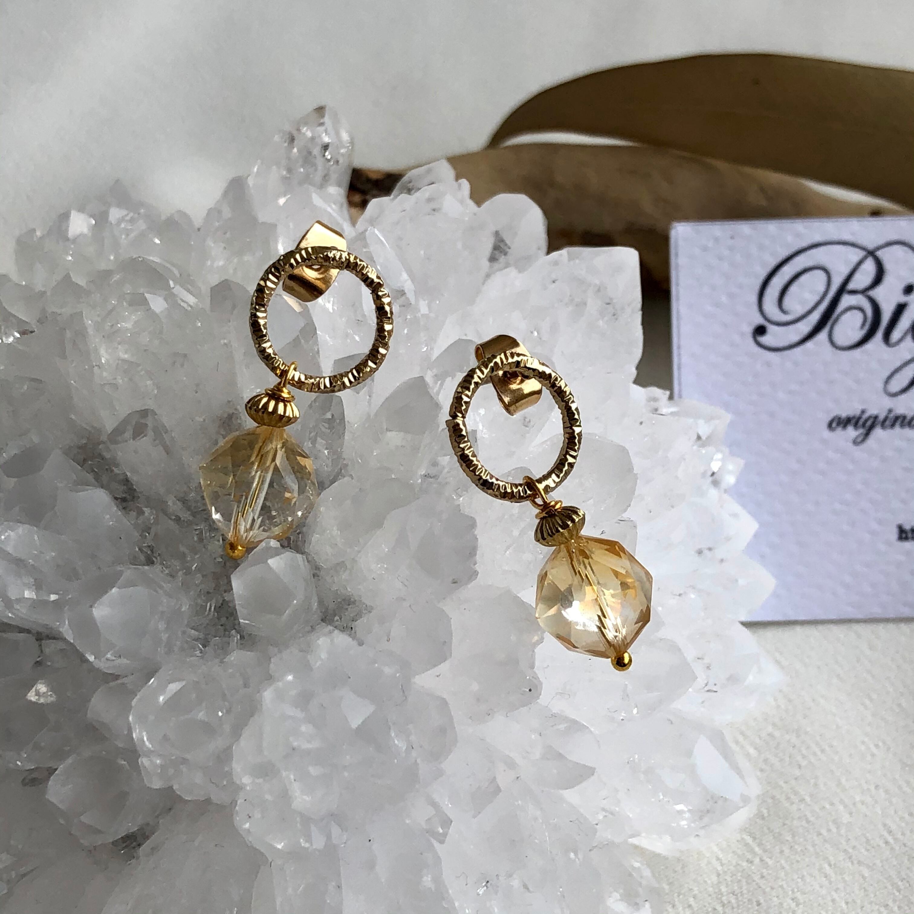 上質カットされた(シトリン)黄色水晶がキラキラ輝きギザギザのデザイン性あるピアスポストが洗練され天然石との相性が良くサイズ感も職場コーデにも使える上品さと華やかさがあります‼️