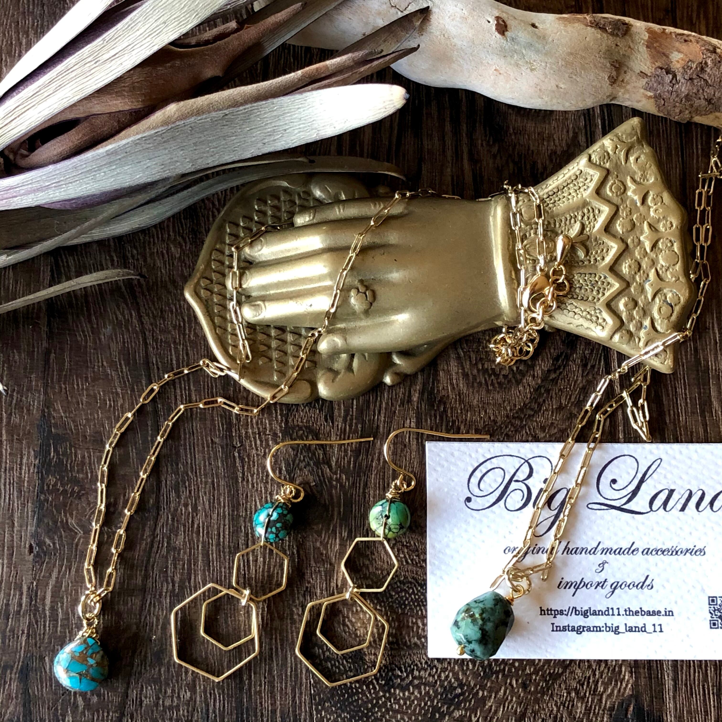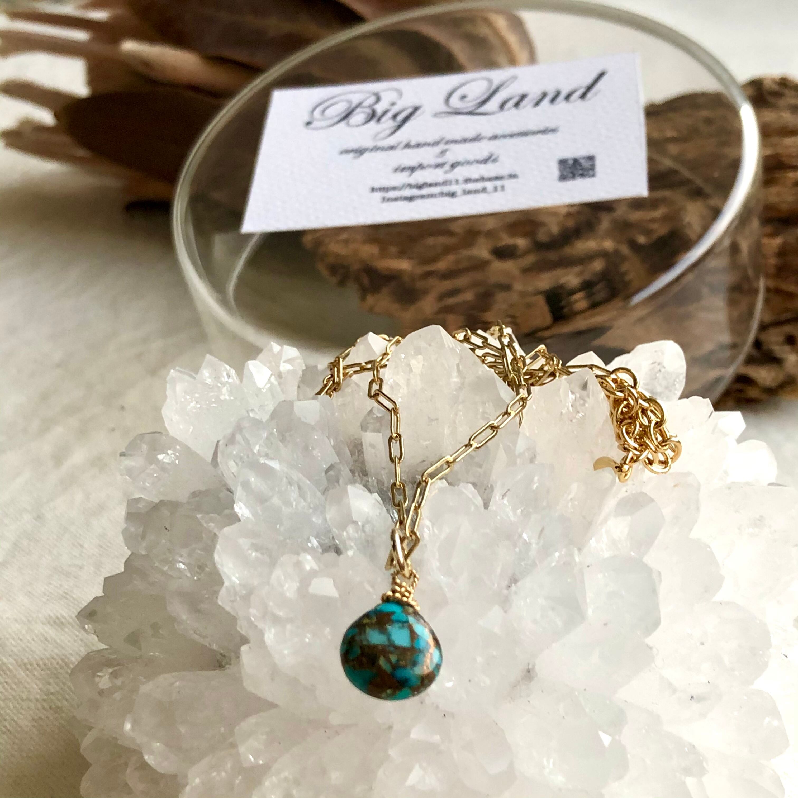 ターコイズは男女問わずファンが大変多く『旅人の石』としても知られているように、持ち主を危険から守ってくれると言われ神聖な石として扱われ、古代エジプト、アステカ、ペルシャ、メソポタミヤなどでは装飾品やお守りなどとして使われて鮮やかな色が青空を思わせることから自然崇拝に用いられ、特にネイティブアメリカンの間では聖なる石とされてきました。ターコイズの和名「トルコ石」はトルコ経由でヨーロッパに運ばれたことにもとづき石言葉は「繁栄、成功、強運、健康」