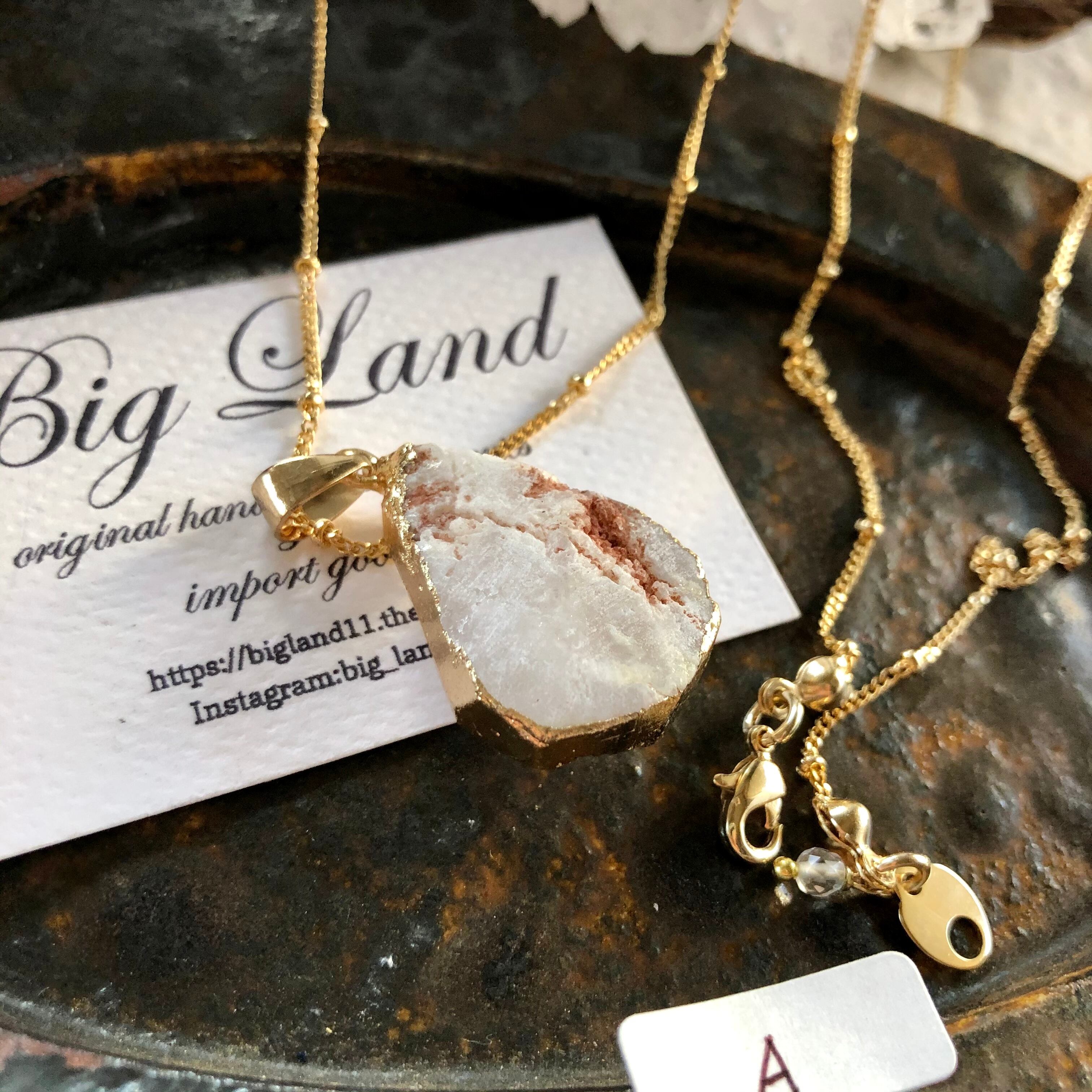 さりげないサイズ感とホワイトの天然石はどんなお洋服にも合わせやすく、オリエンタルな雰囲気のデザインチェーンは取り外し可能の為、シンプルにチェーンだけで使っても大変オシャレ❤️
