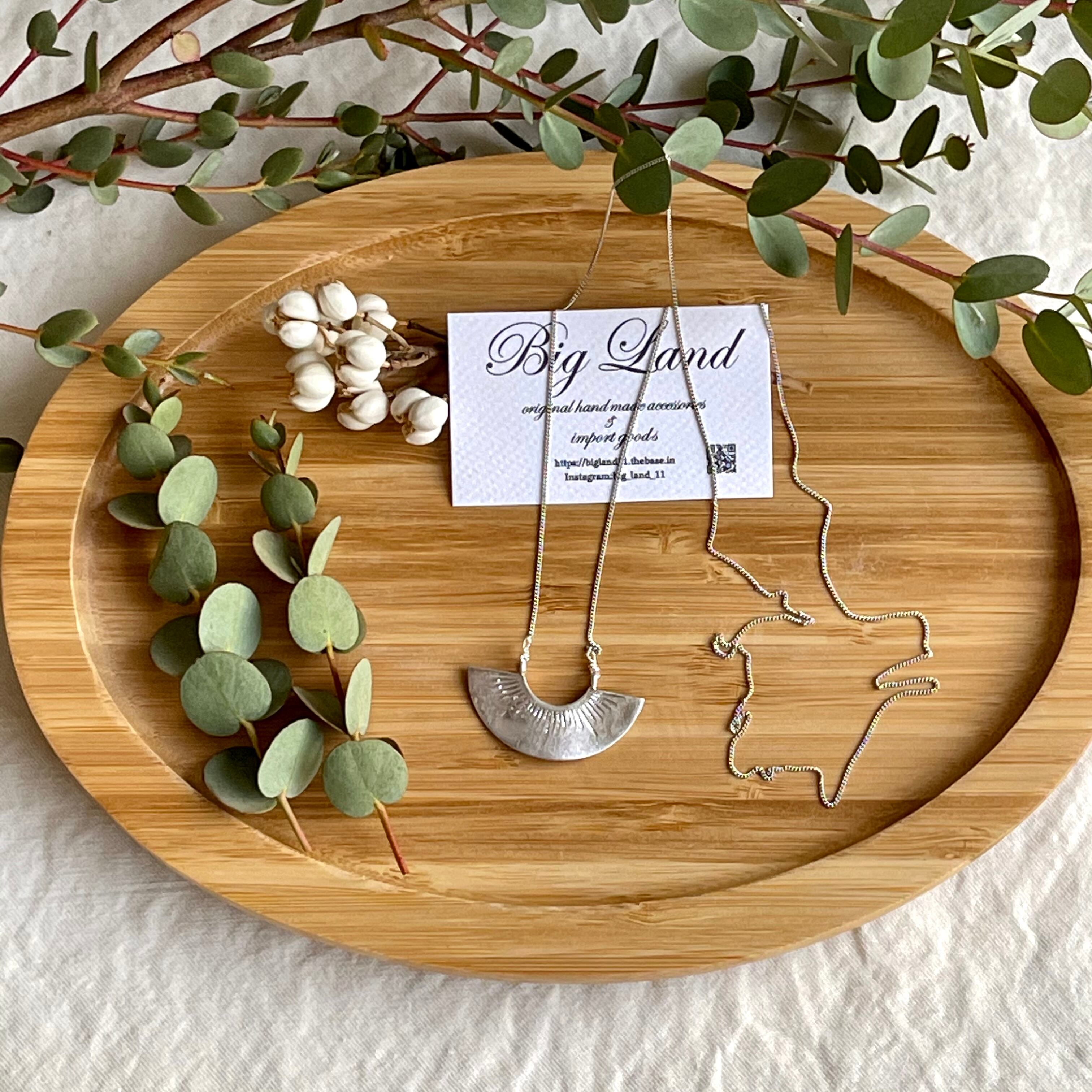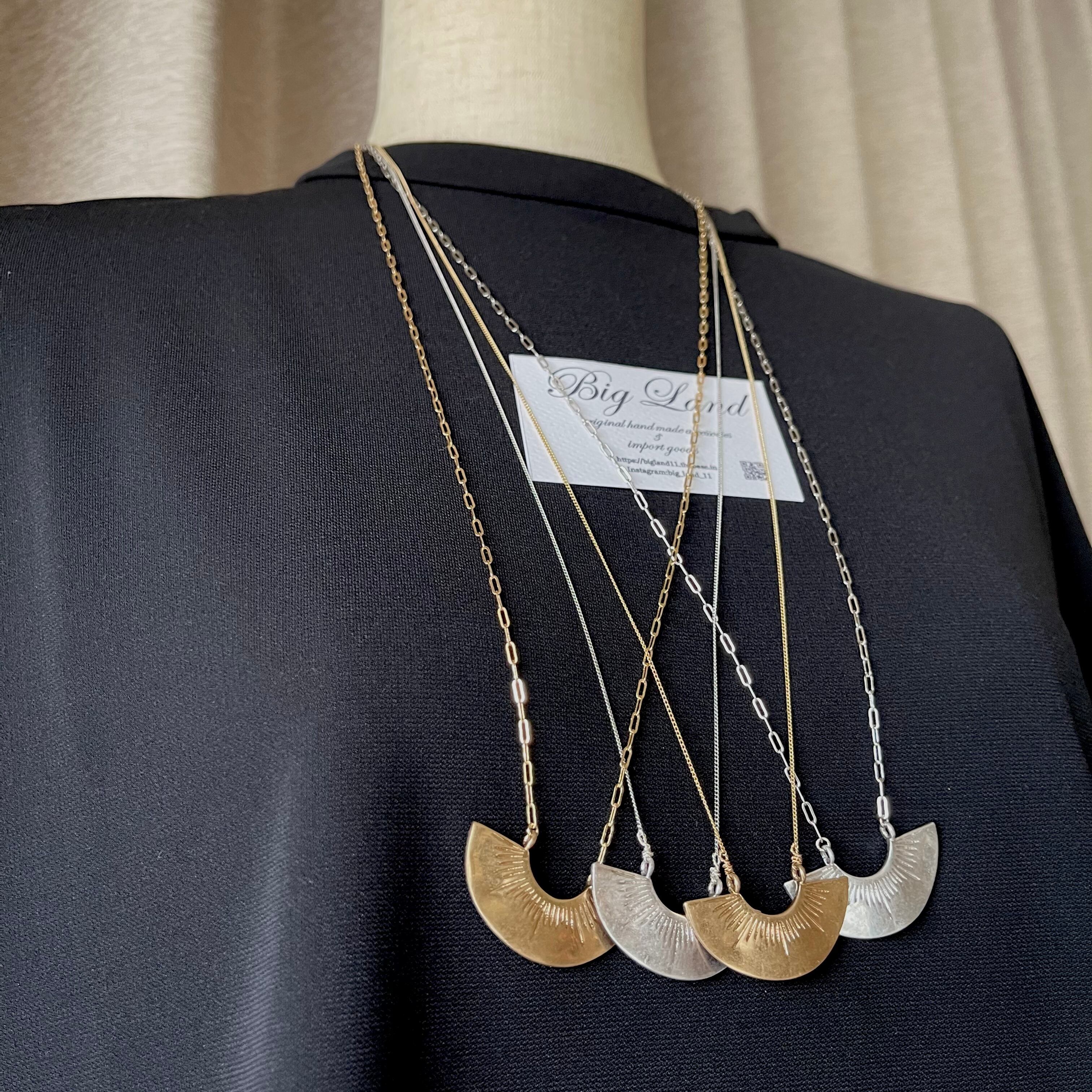 アンティーク風なマットシルバーを落ち感あるシンプルチェーンと組み合わせ表裏デザイン違いなので、その時のお洋服に合わせてコーデ可能でお得感あり笑