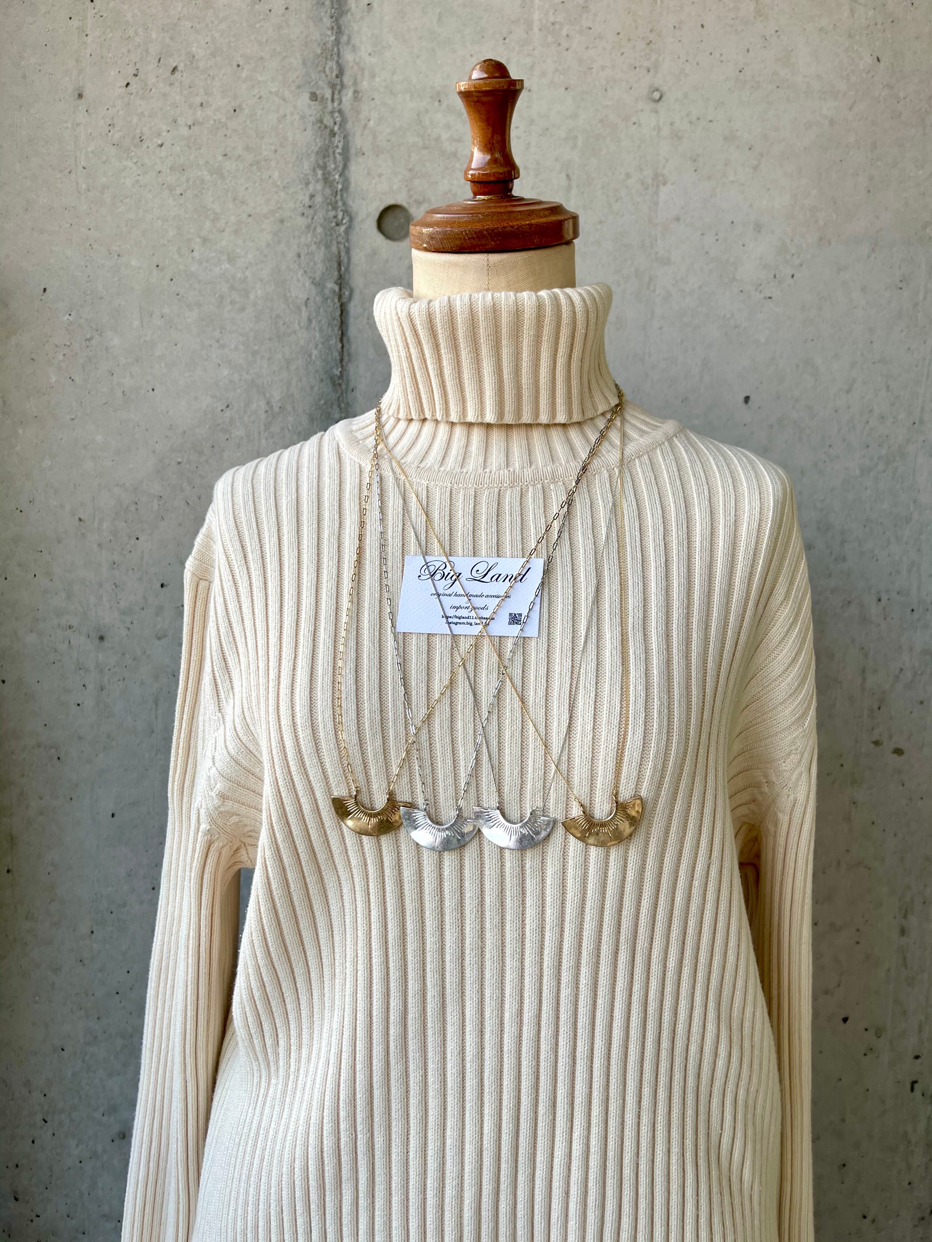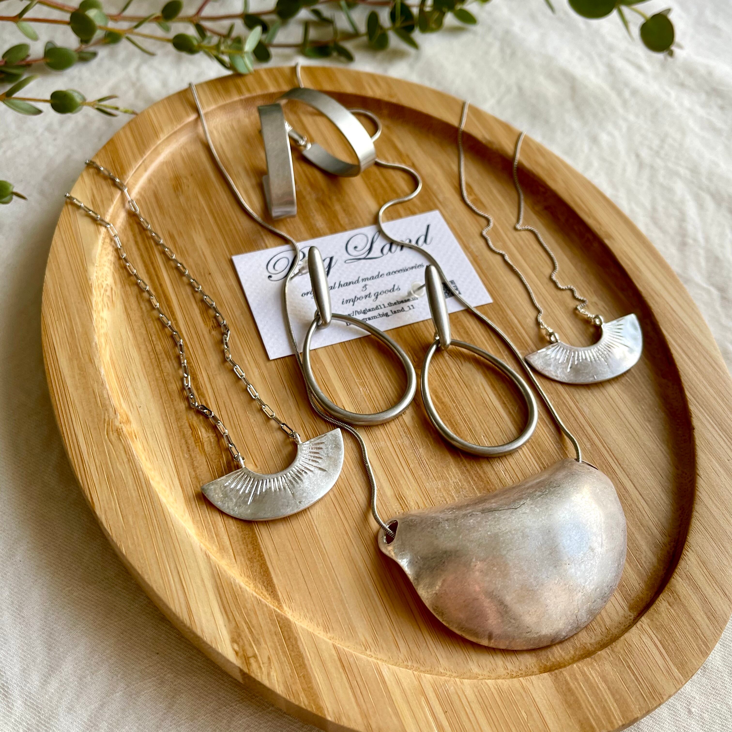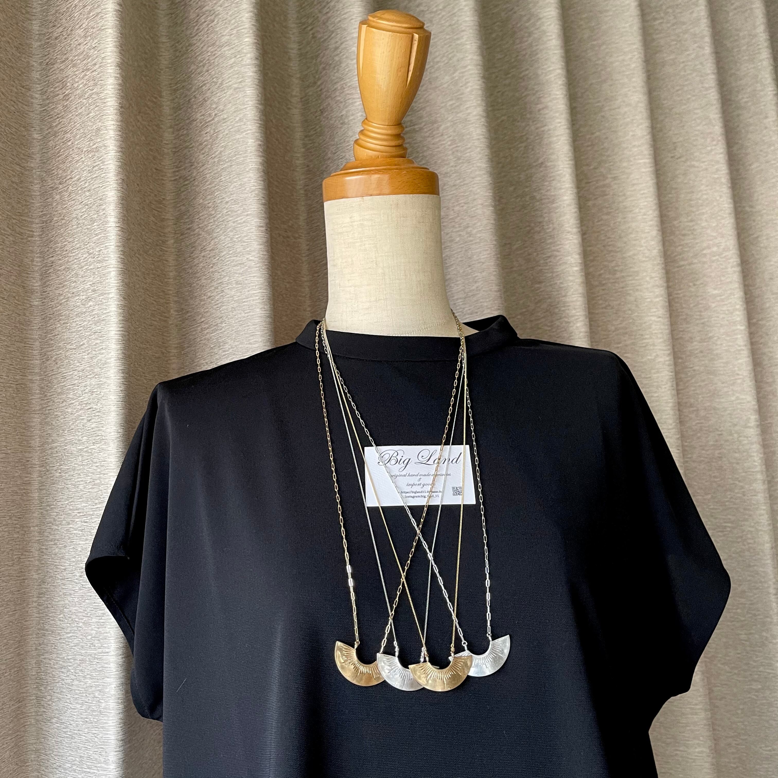 白ティーやリネン素材のお洋服に合わせたり冬はダークカラーにも大変映えます‼︎短いネックレスとの重ねづけもオススメです^_^