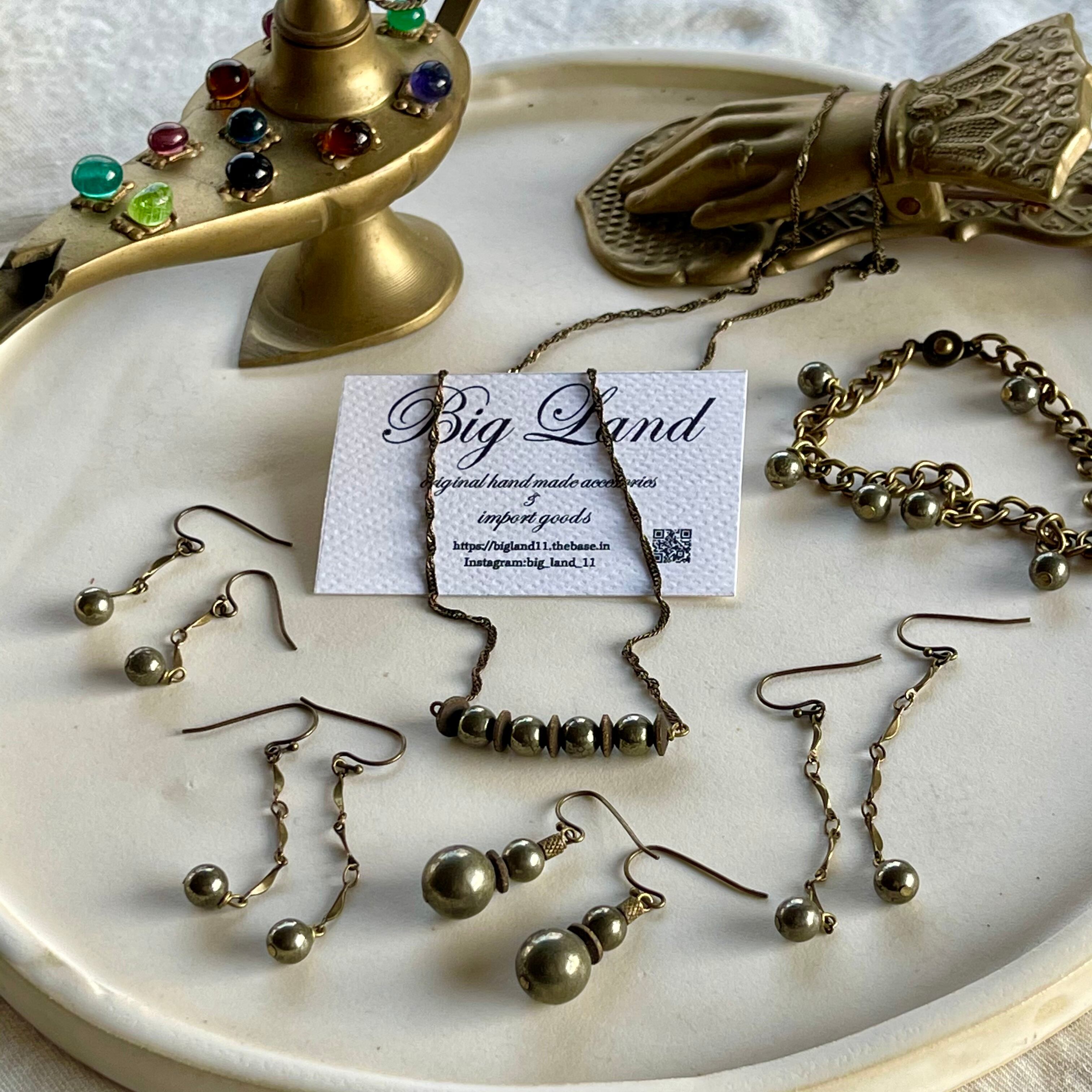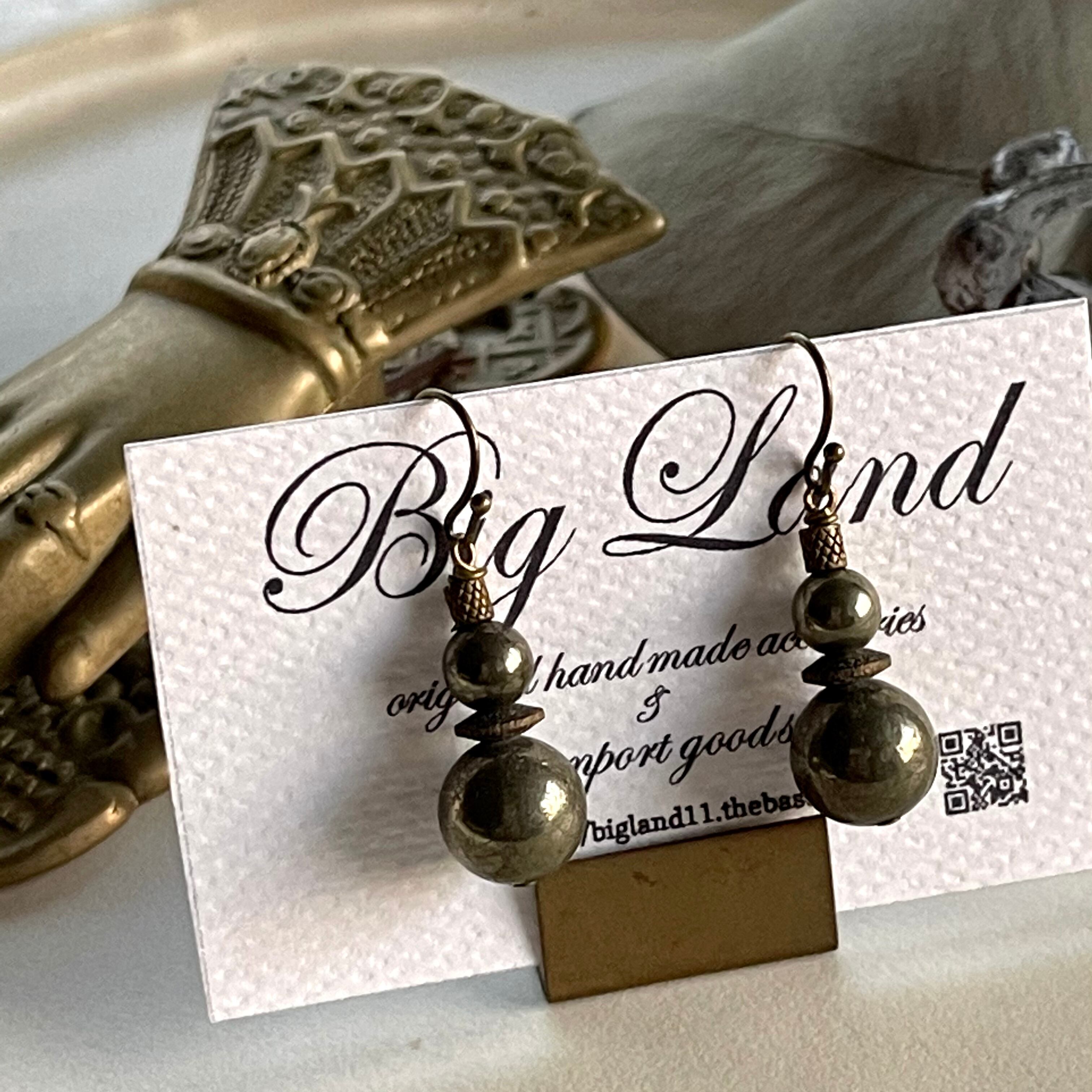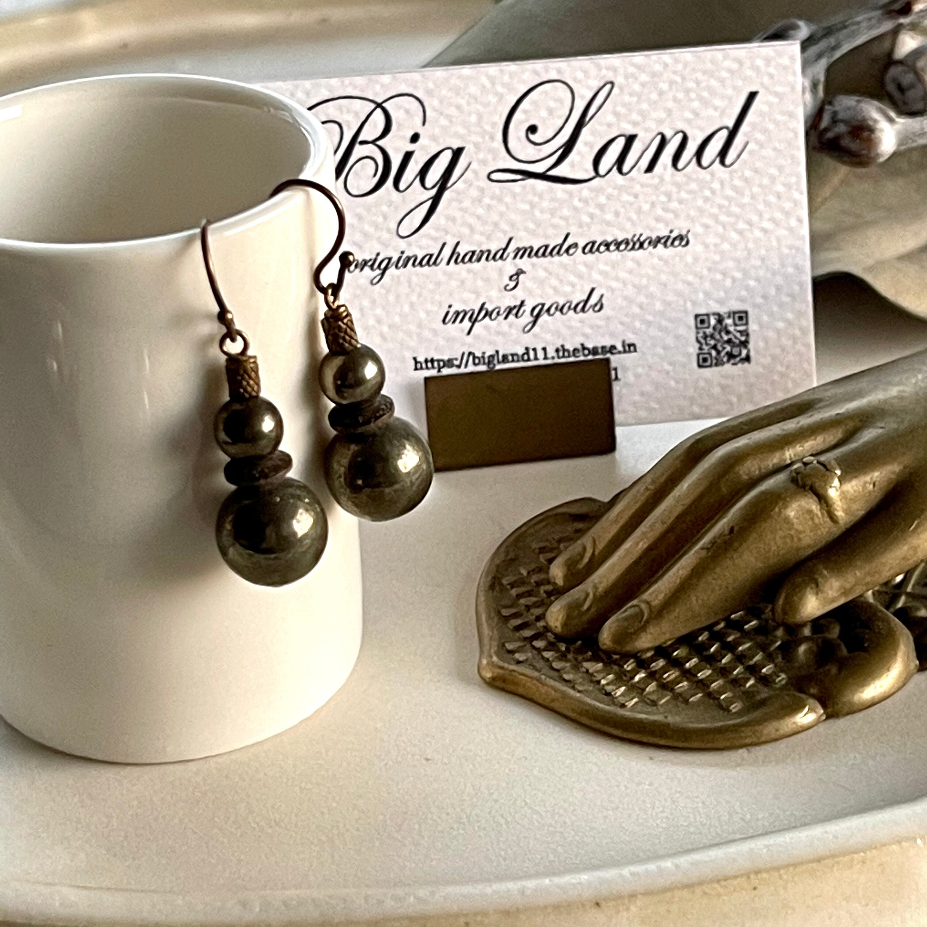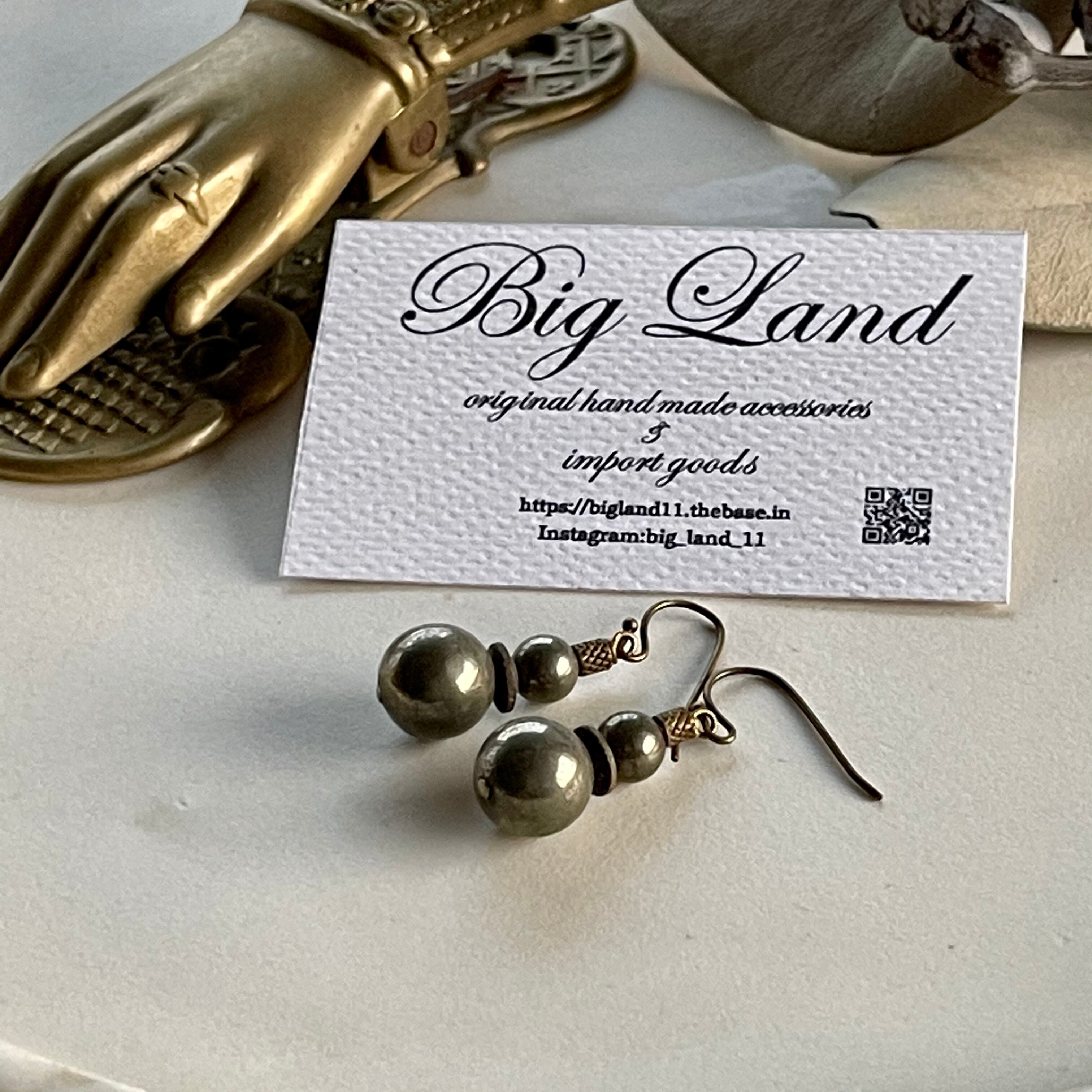 燻したような天然石パイライトを使いアンティーク風で個性的なデザインに仕上げました✨