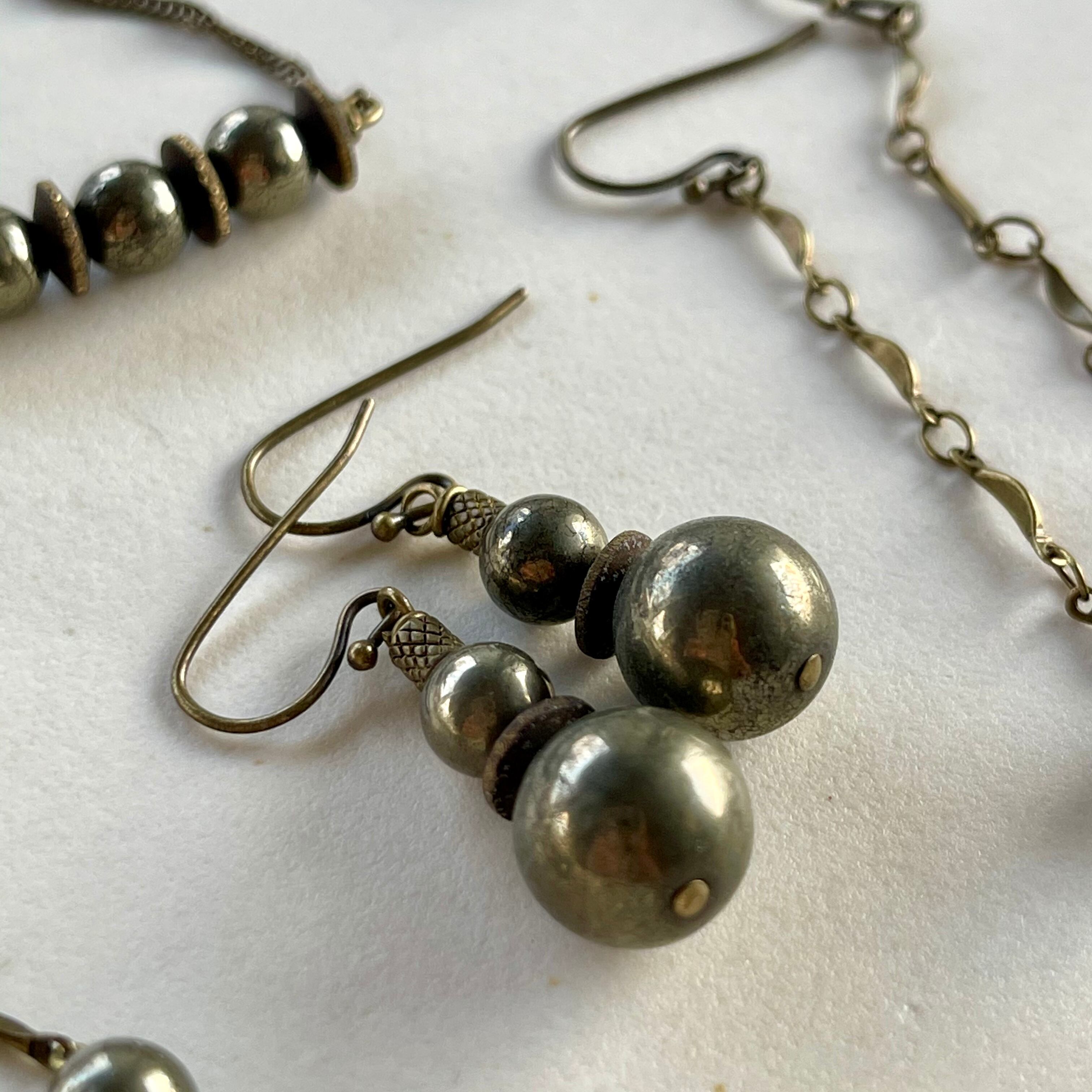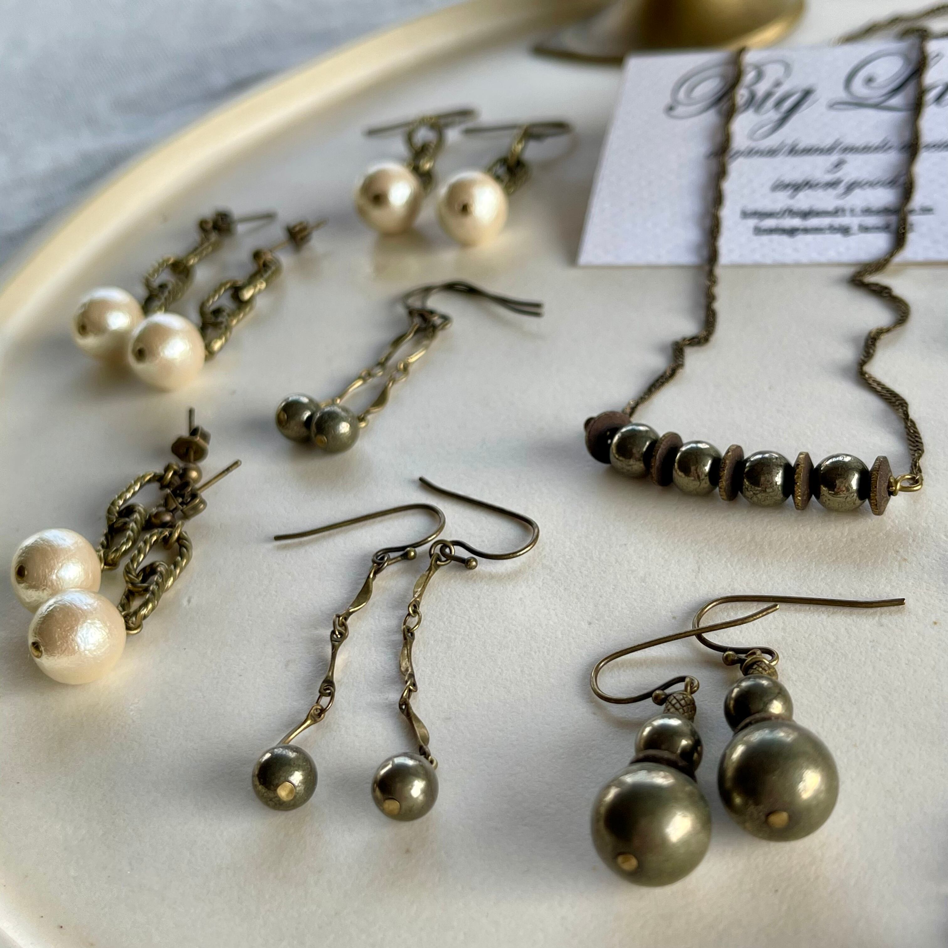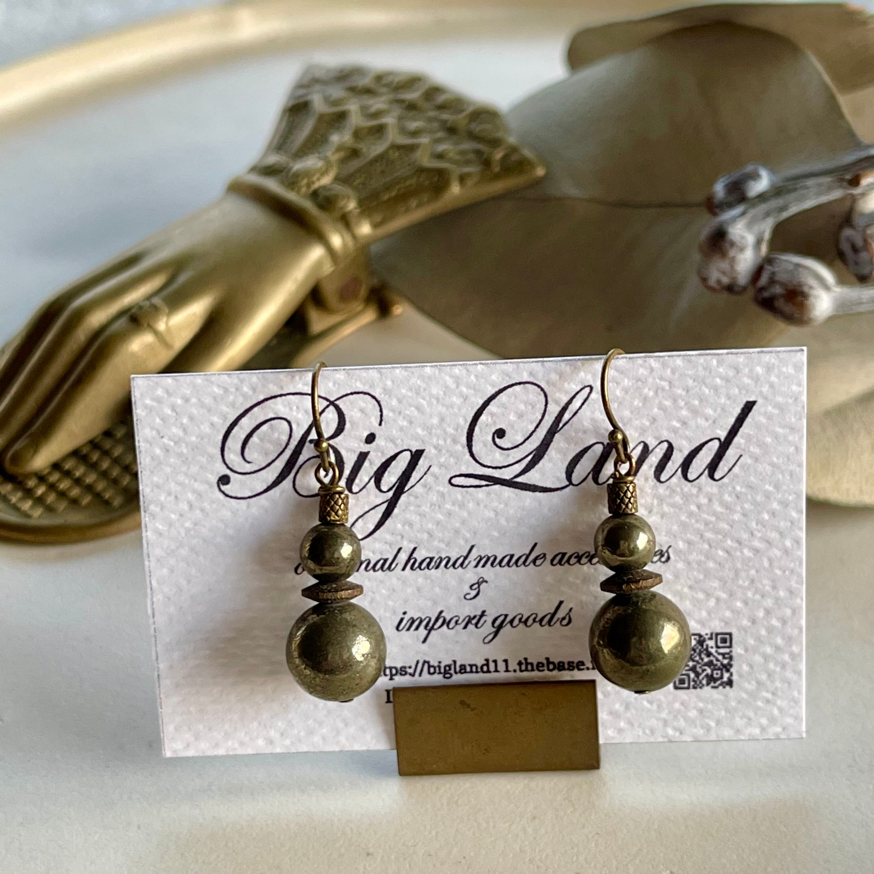 燻したような天然石パイライトを使いアンティーク風で個性的なデザインに仕上げました✨