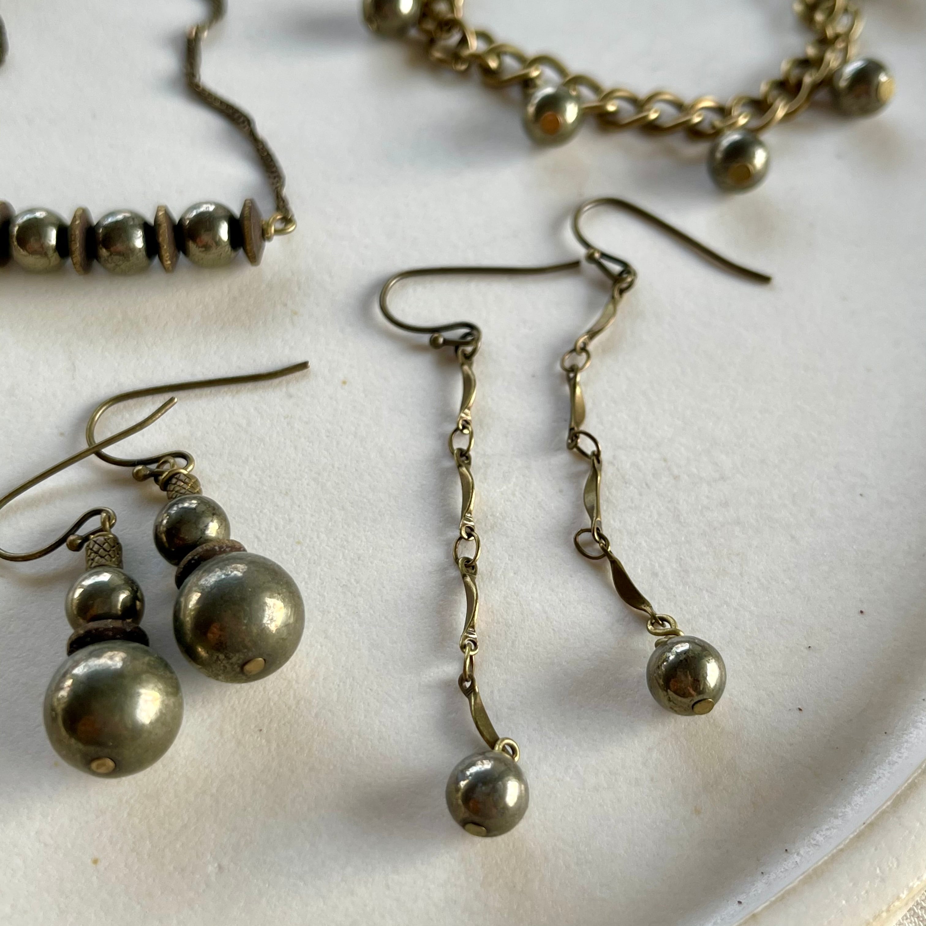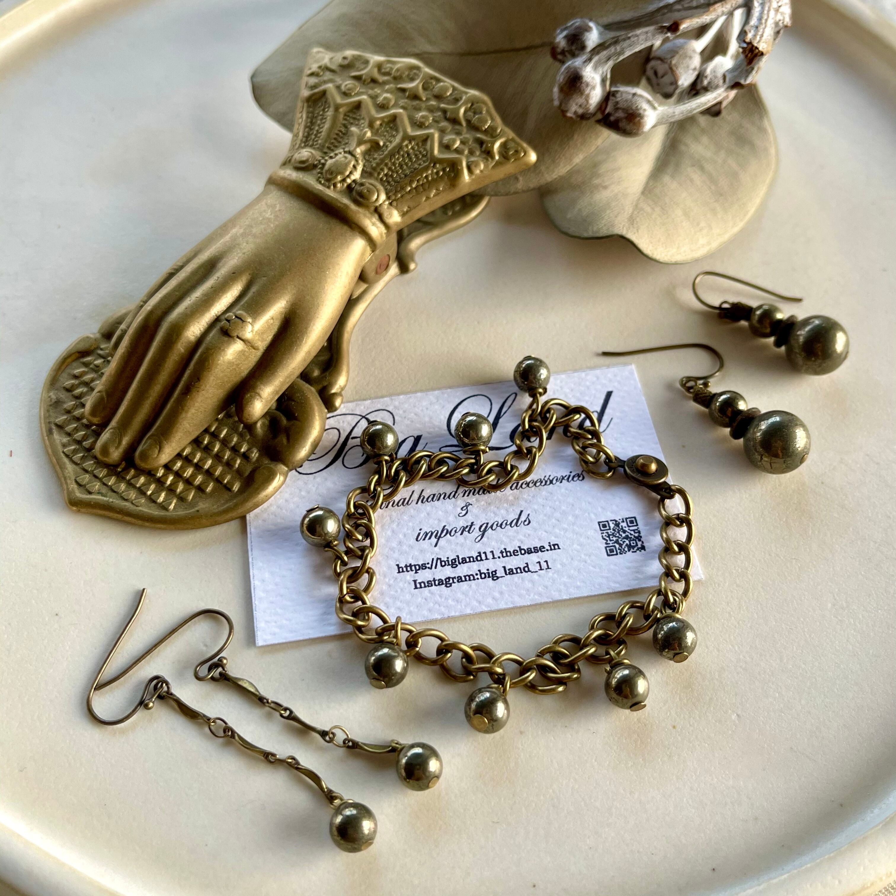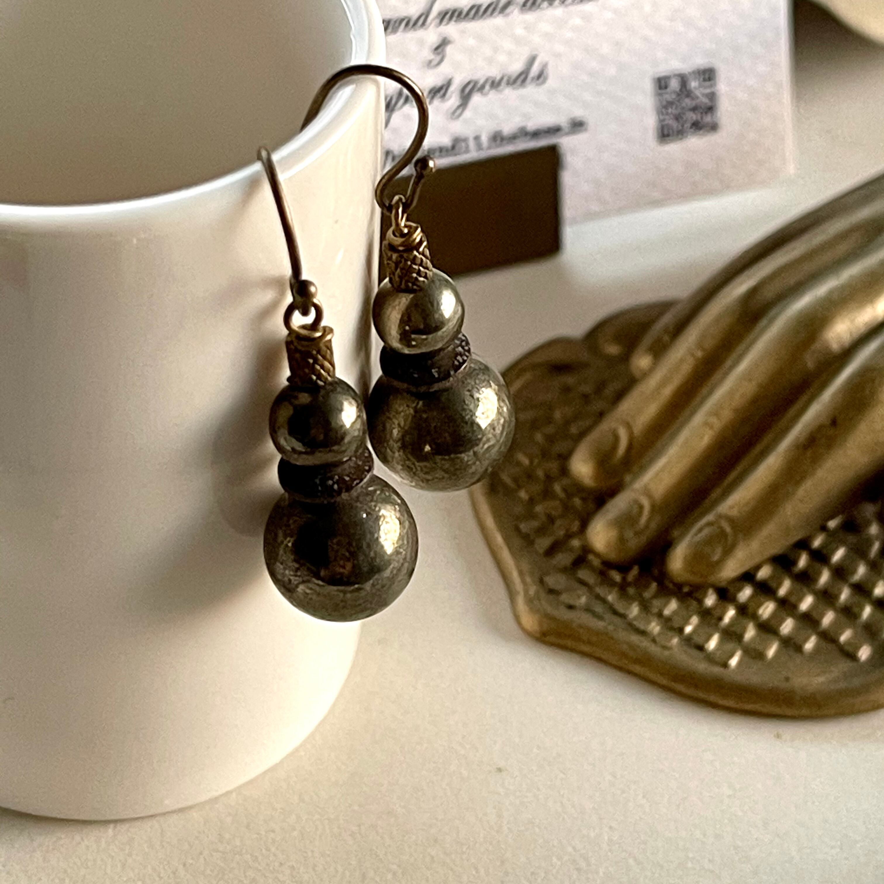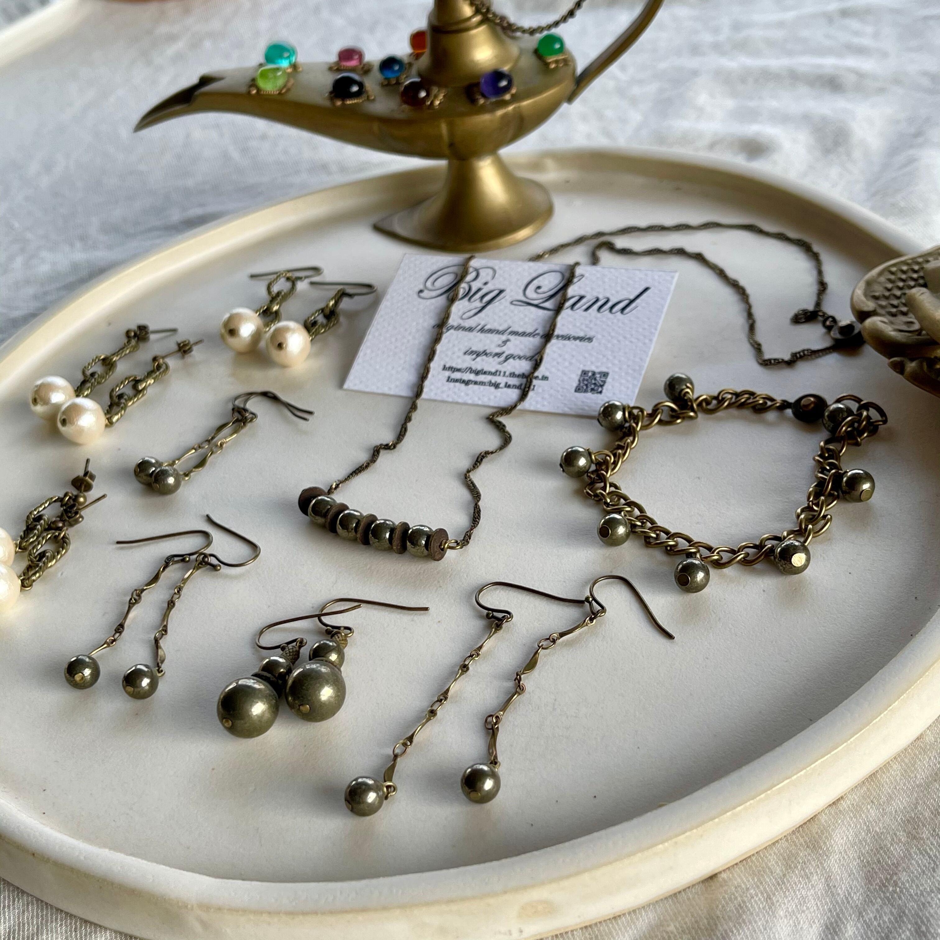 燻したような天然石パイライトを使いアンティーク風で個性的なデザインに仕上げました✨