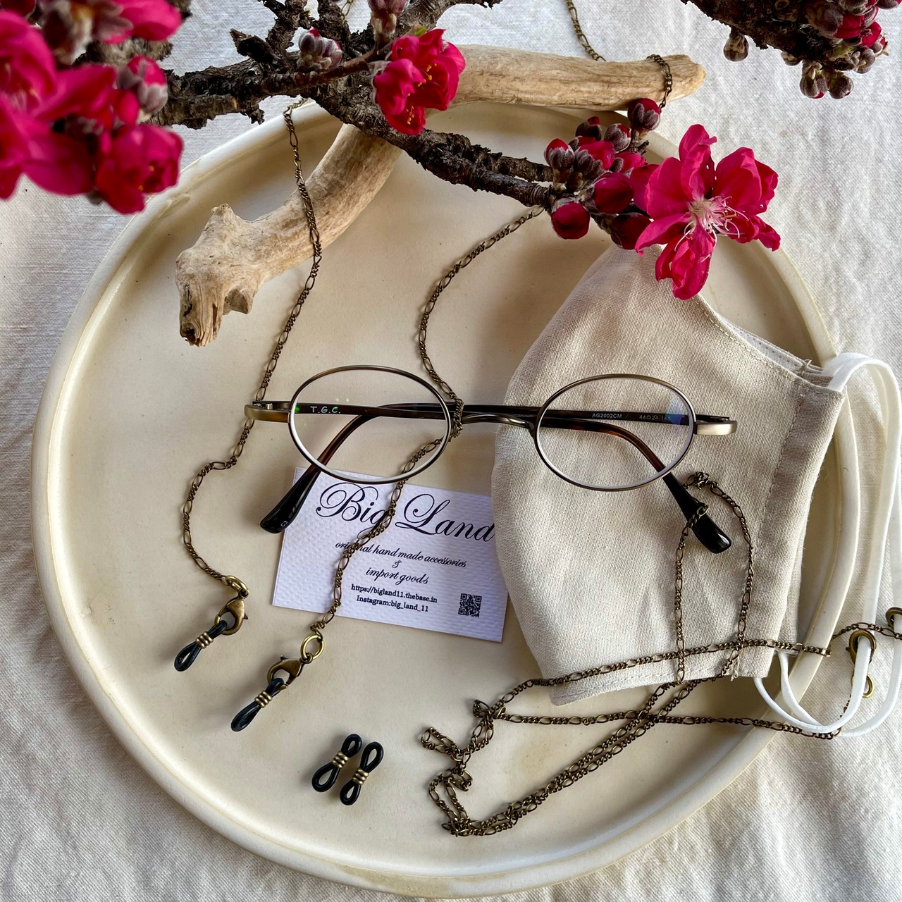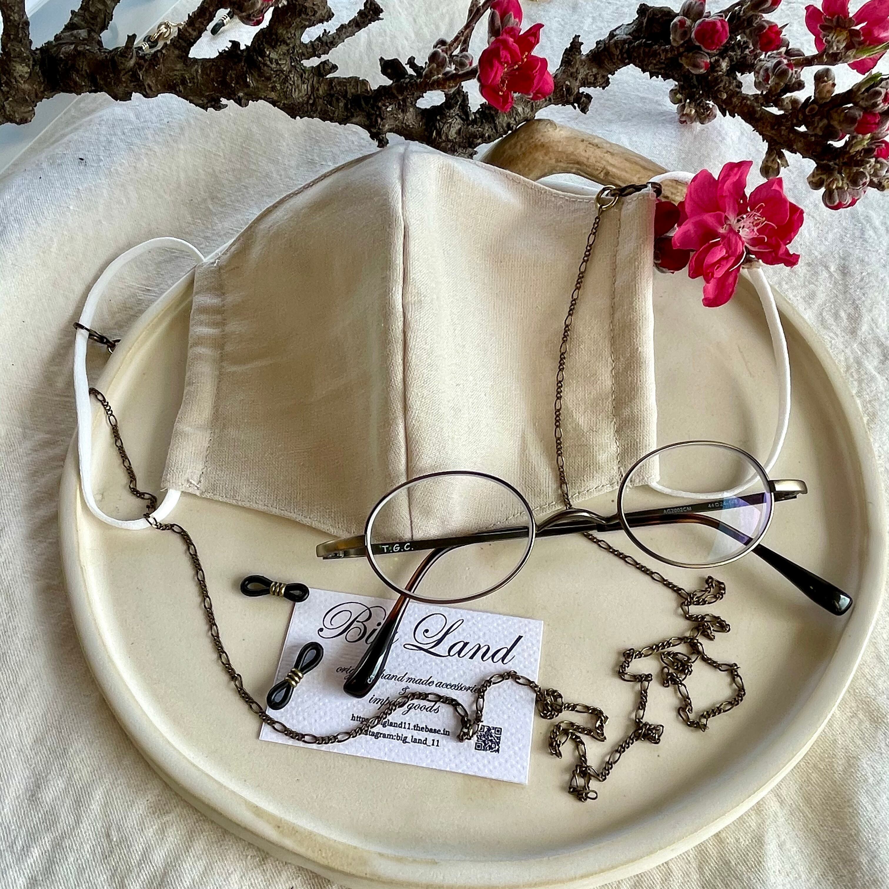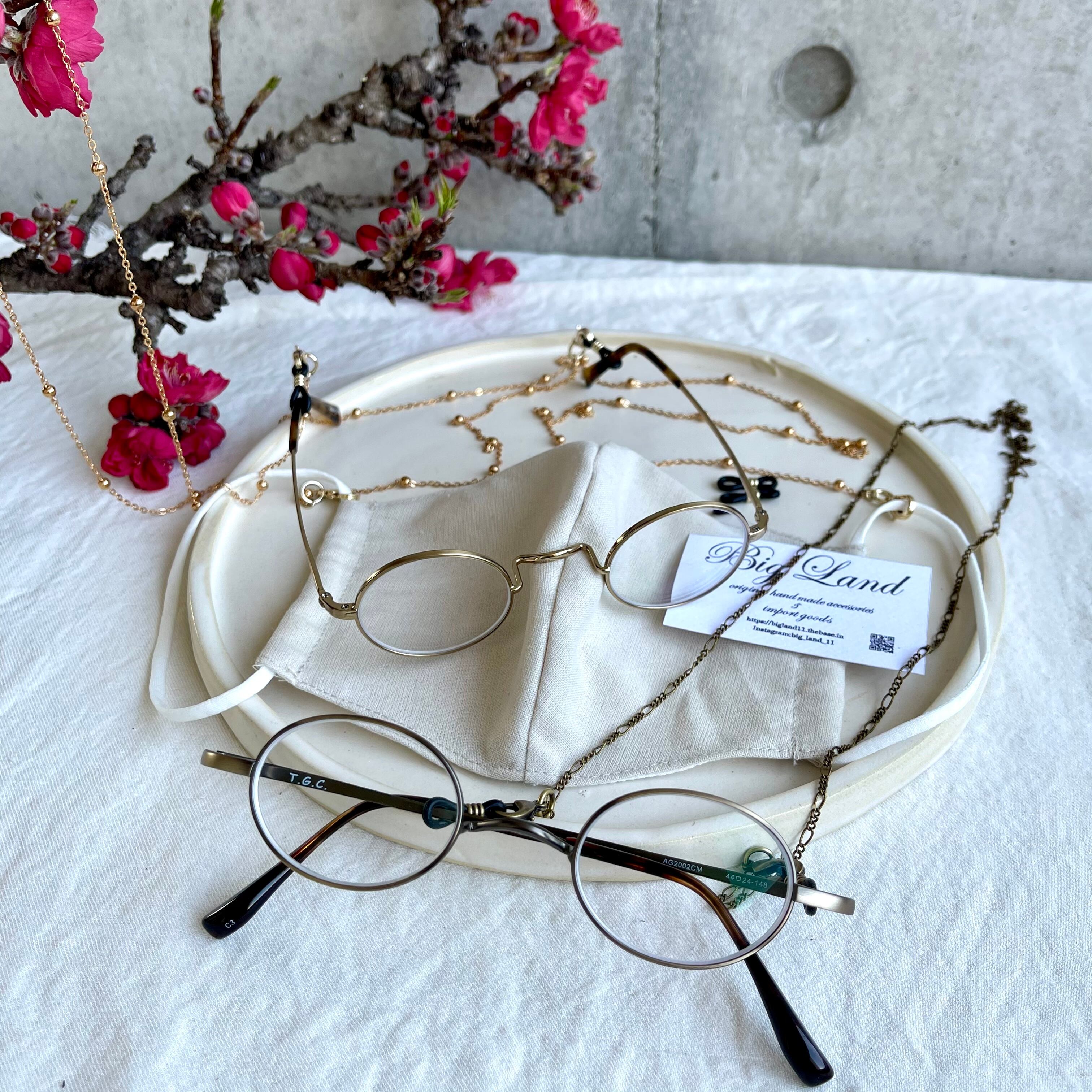 華奢な眼鏡と相性の良いチェーンで、眼鏡やマスク、カニカン同士を留めるとネックレスにと✨1つで3パターンも使える大変便利なお得感ある商品に仕上げました☺️