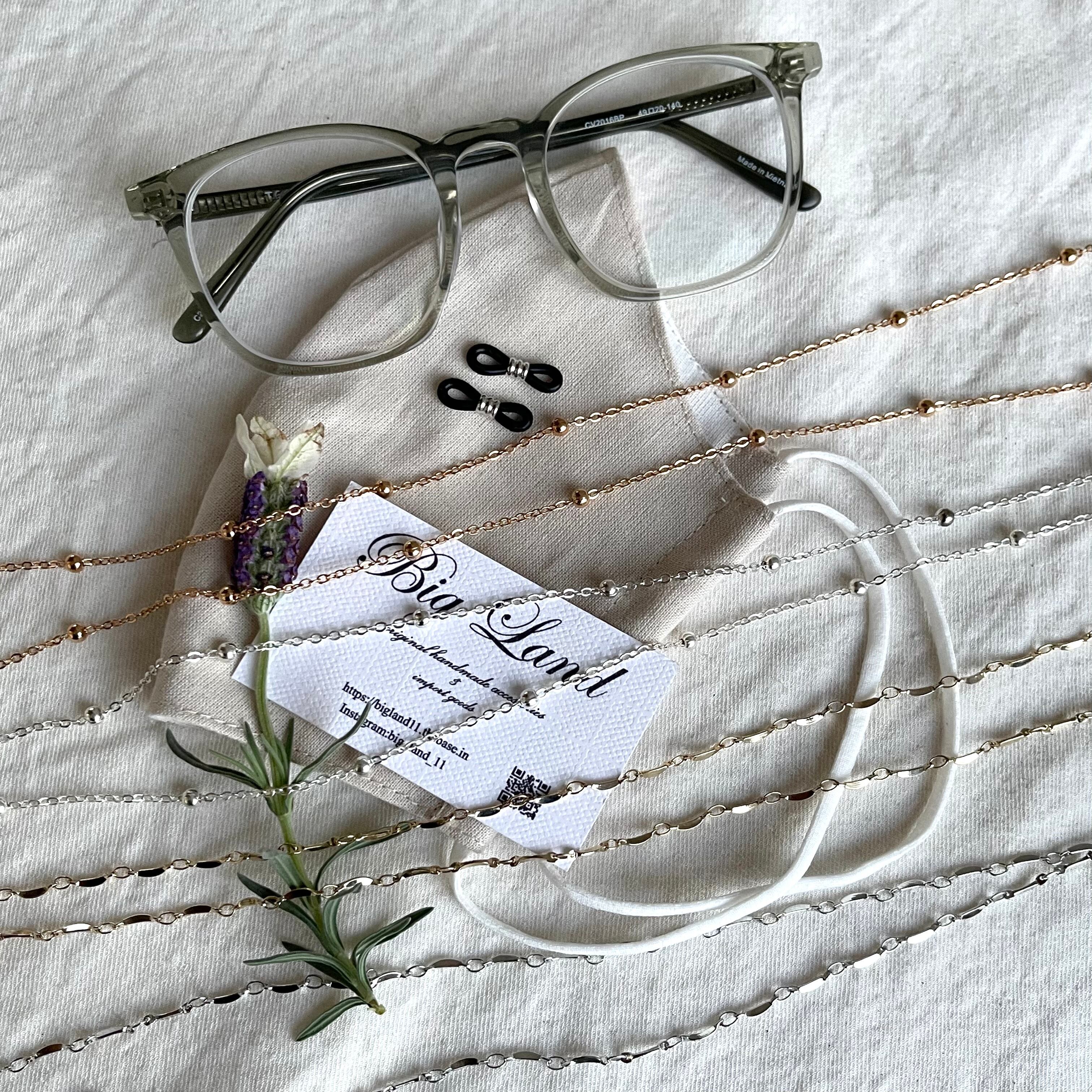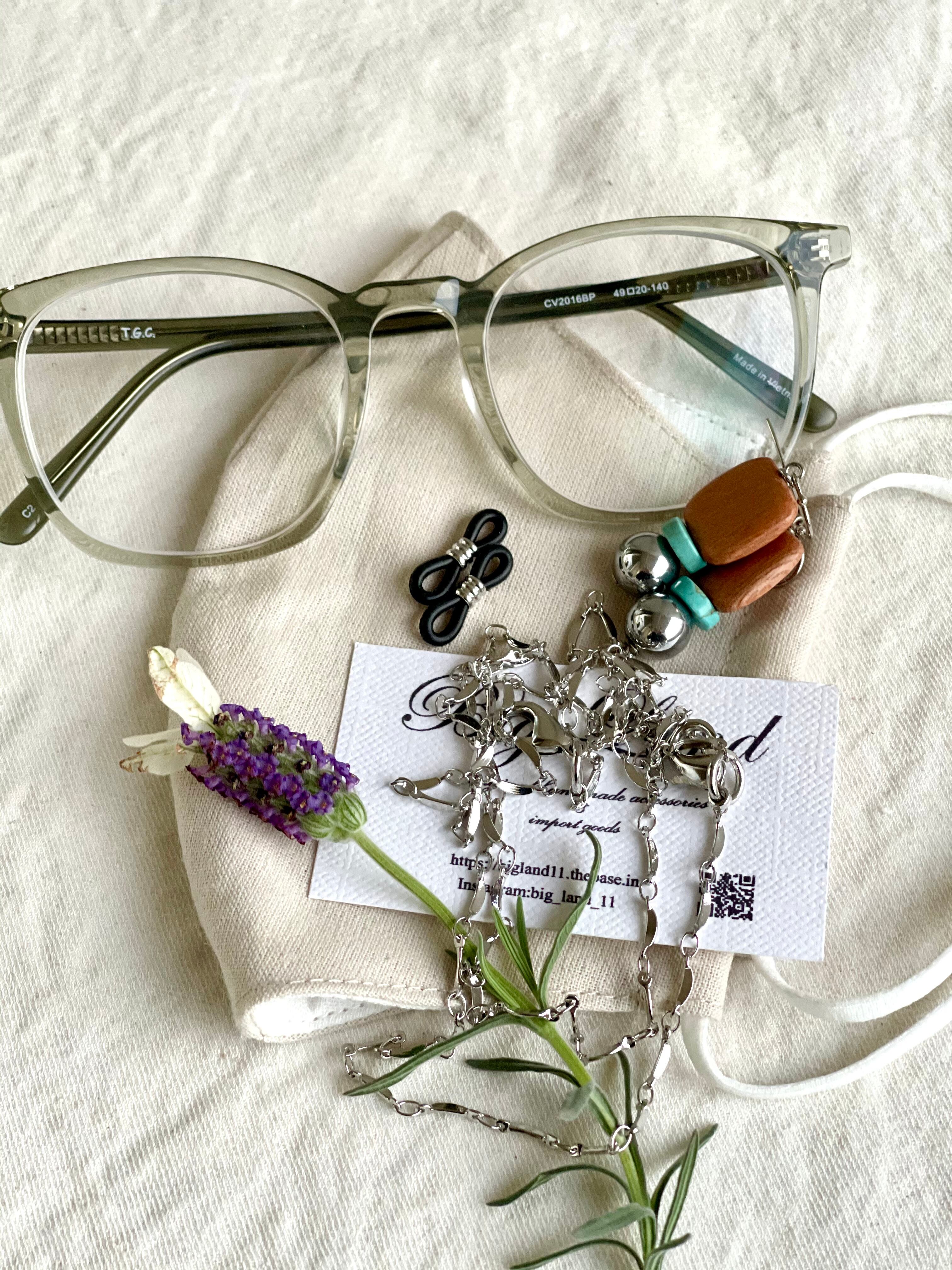 華奢な眼鏡と相性の良いチェーンで、眼鏡やマスク、カニカン同士を留めるとネックレスにと✨1つで3パターンも使える大変便利なお得感ある商品に仕上げました☺️