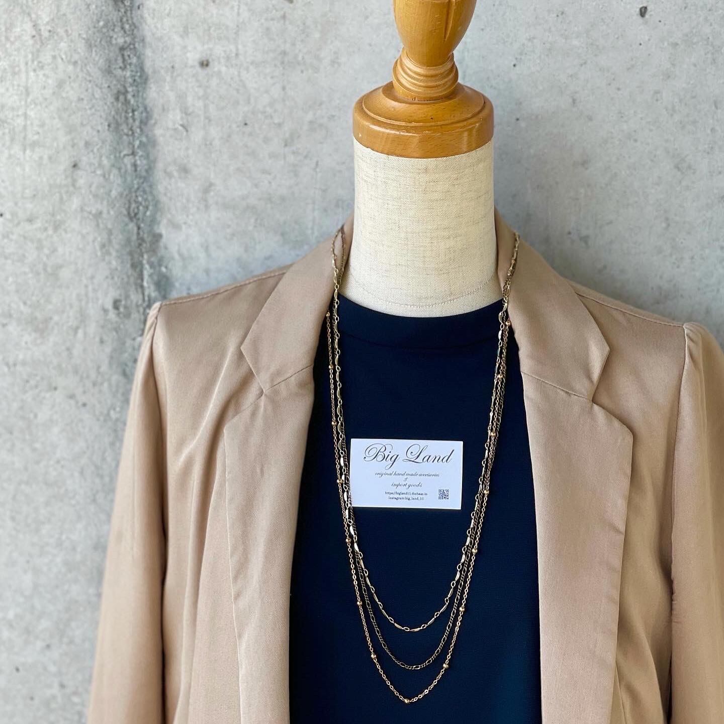 粒々のチェーンがなんとも可愛らしく、シンプルにネックレスだけとしても十分に大活躍!!