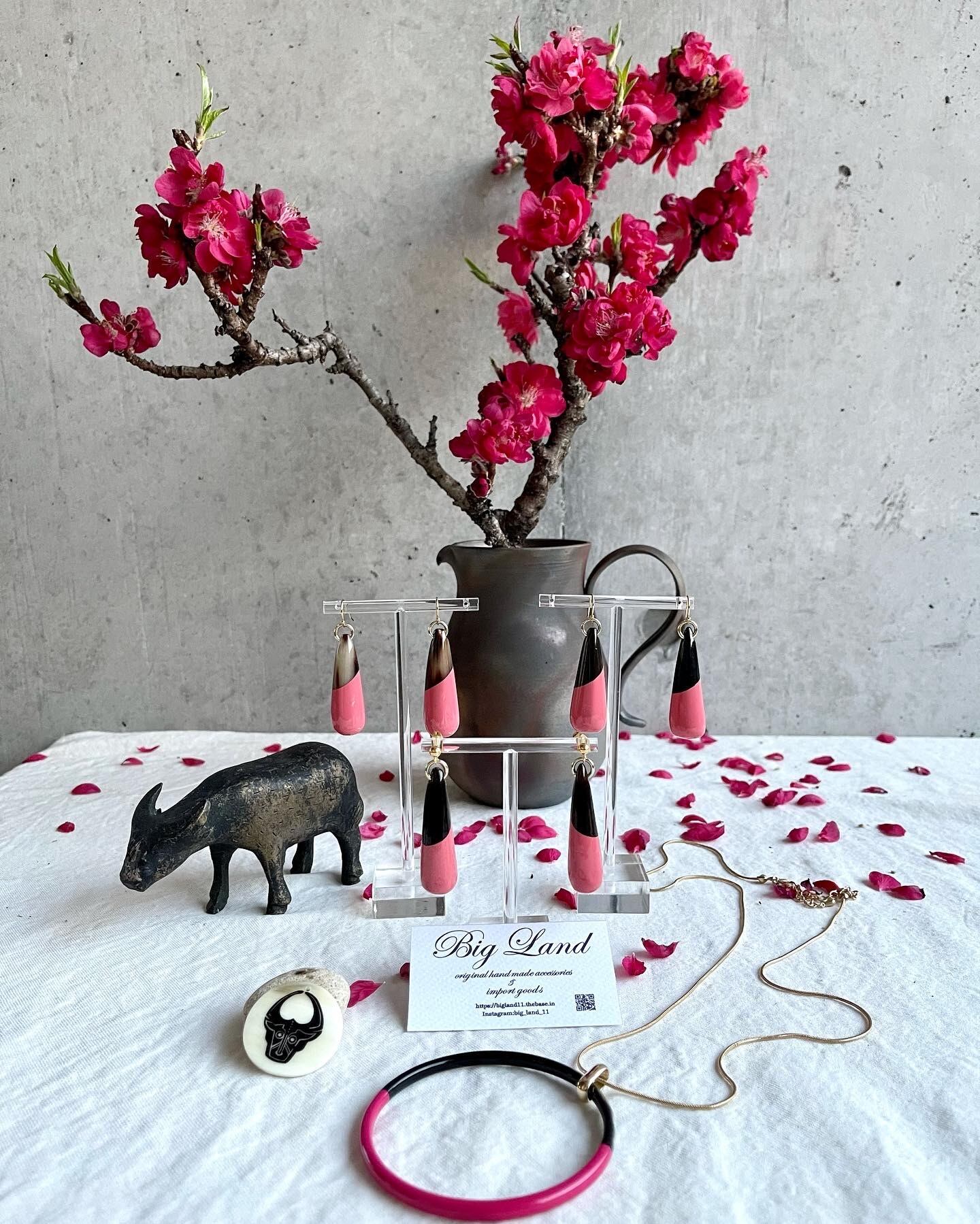 天然水牛に春らしいピンク漆がお顔周りをパッと明るくし気分の高揚とモテ色ピンクで女子力アップ❣️
