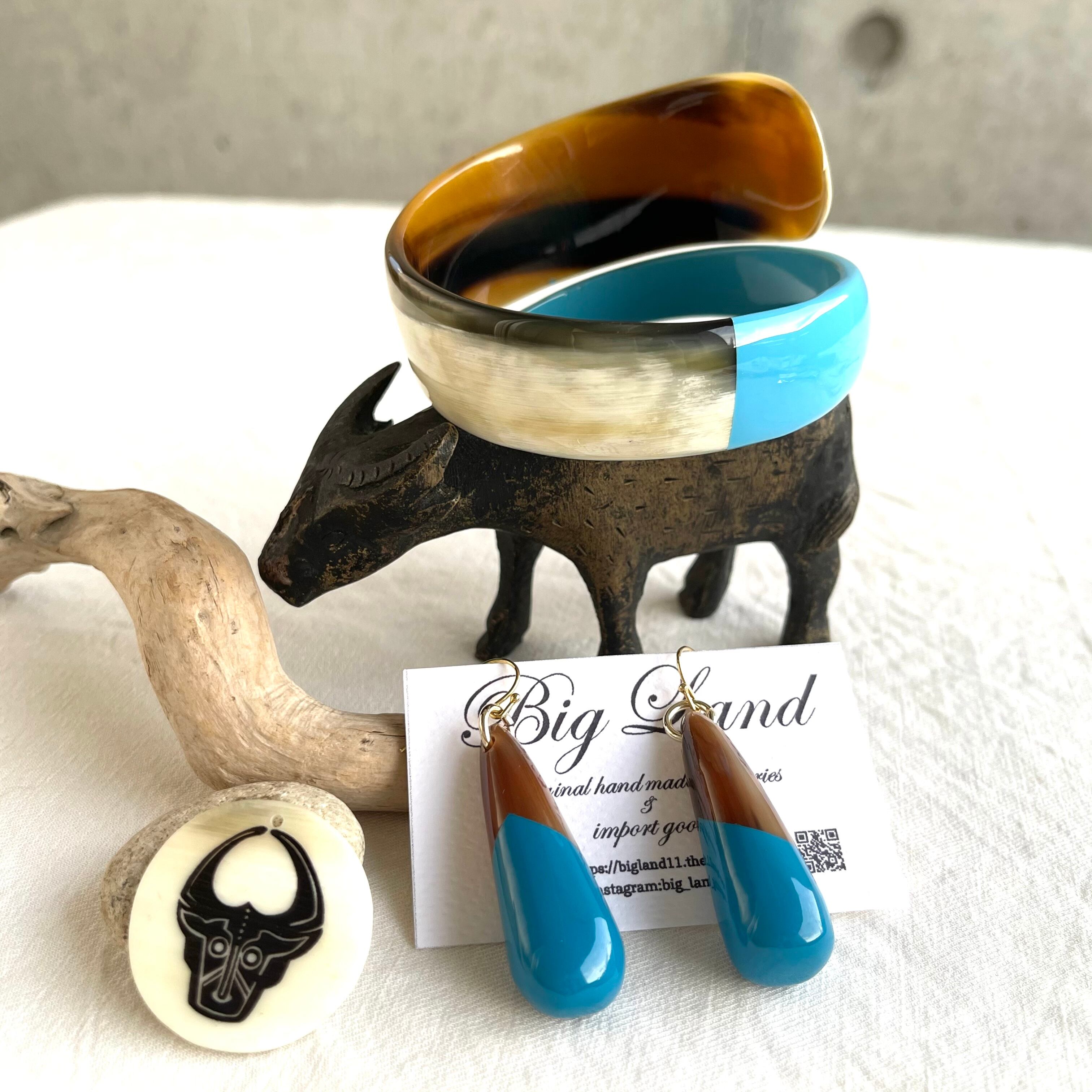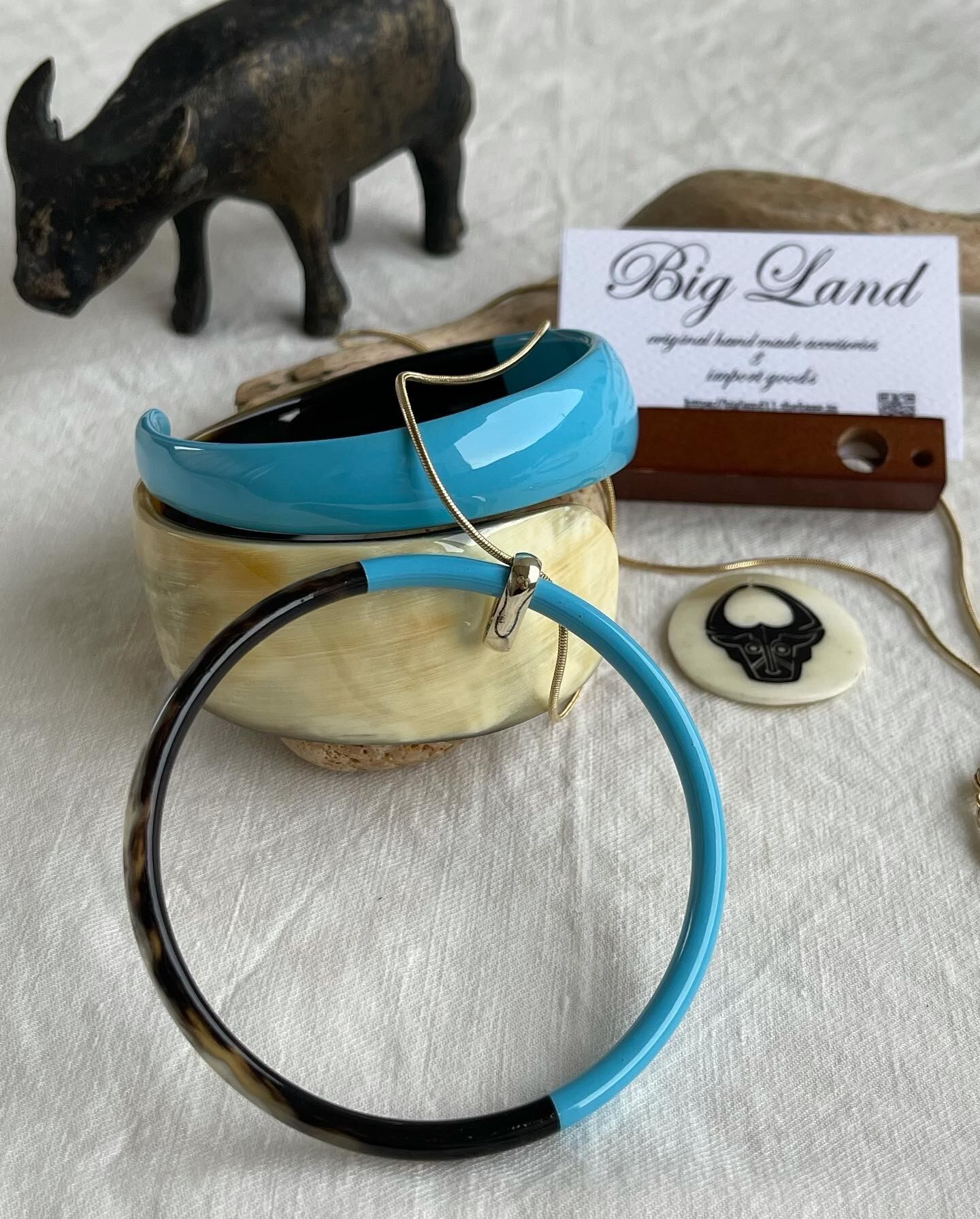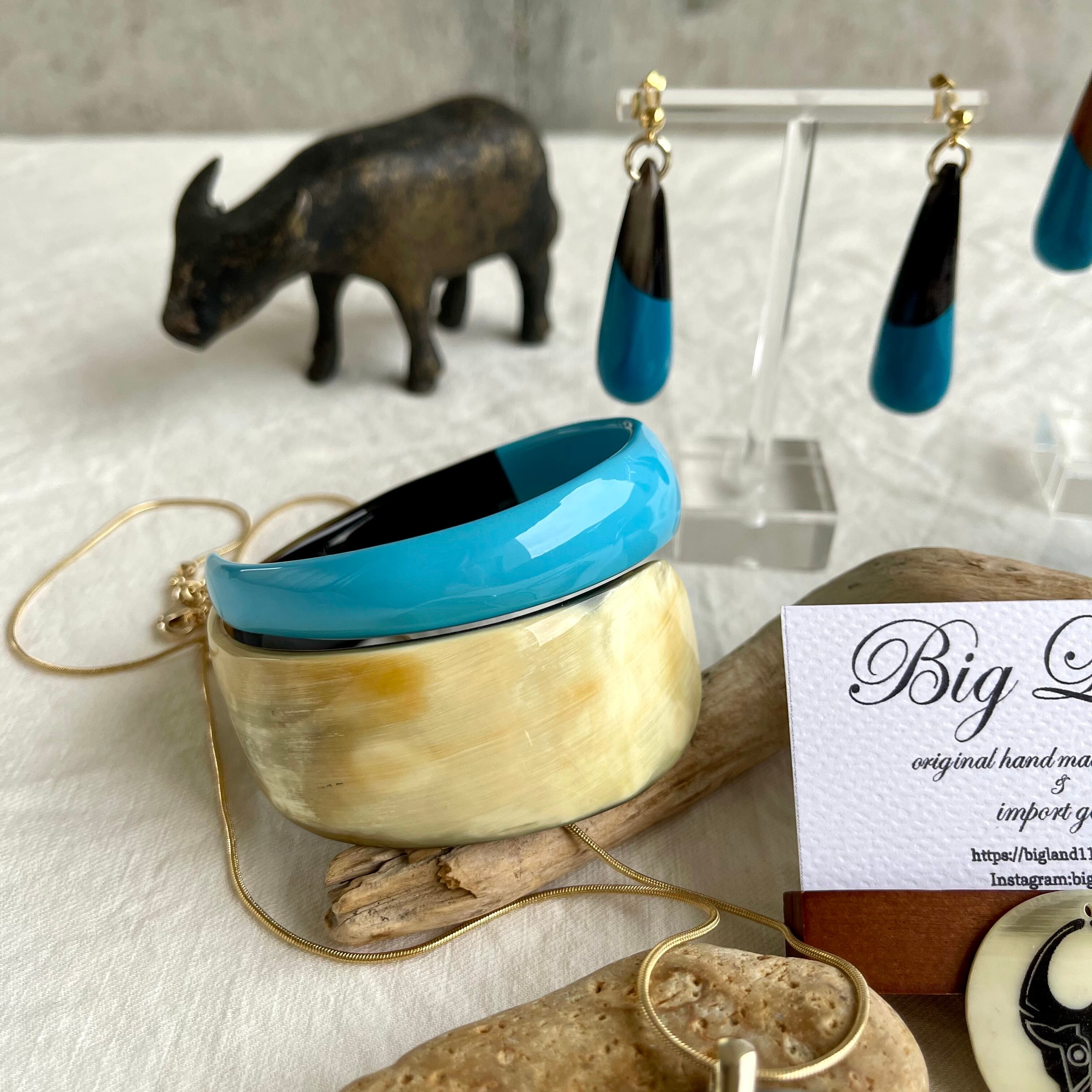 天然の水牛に水色の漆を塗り水牛のグラデーション柄が大変上品で手元に爽やかさが弾ける逸品‼️