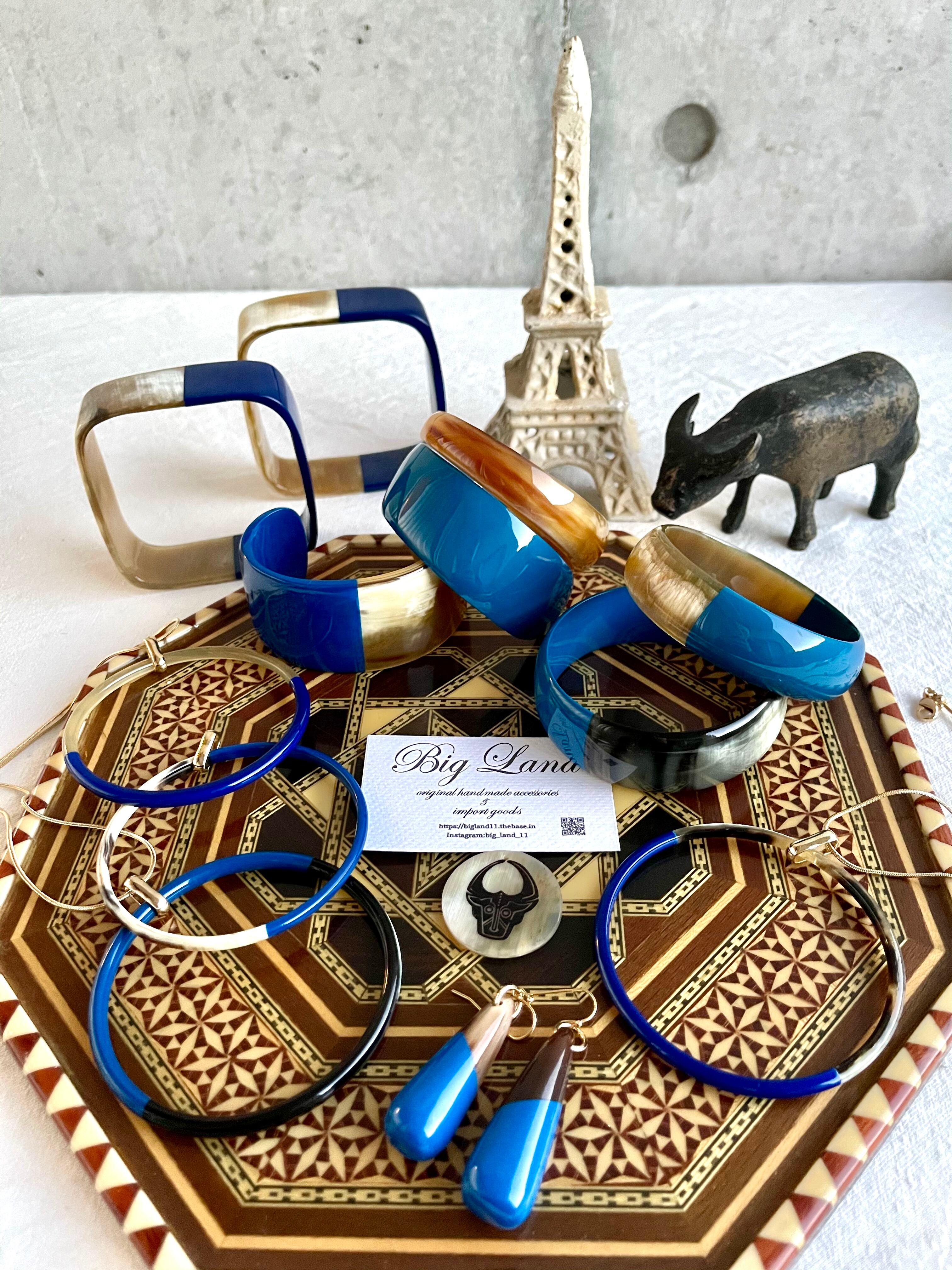 天然の水牛にブルーの漆塗りが大変上品で手元に爽やかさが弾ける逸品‼️