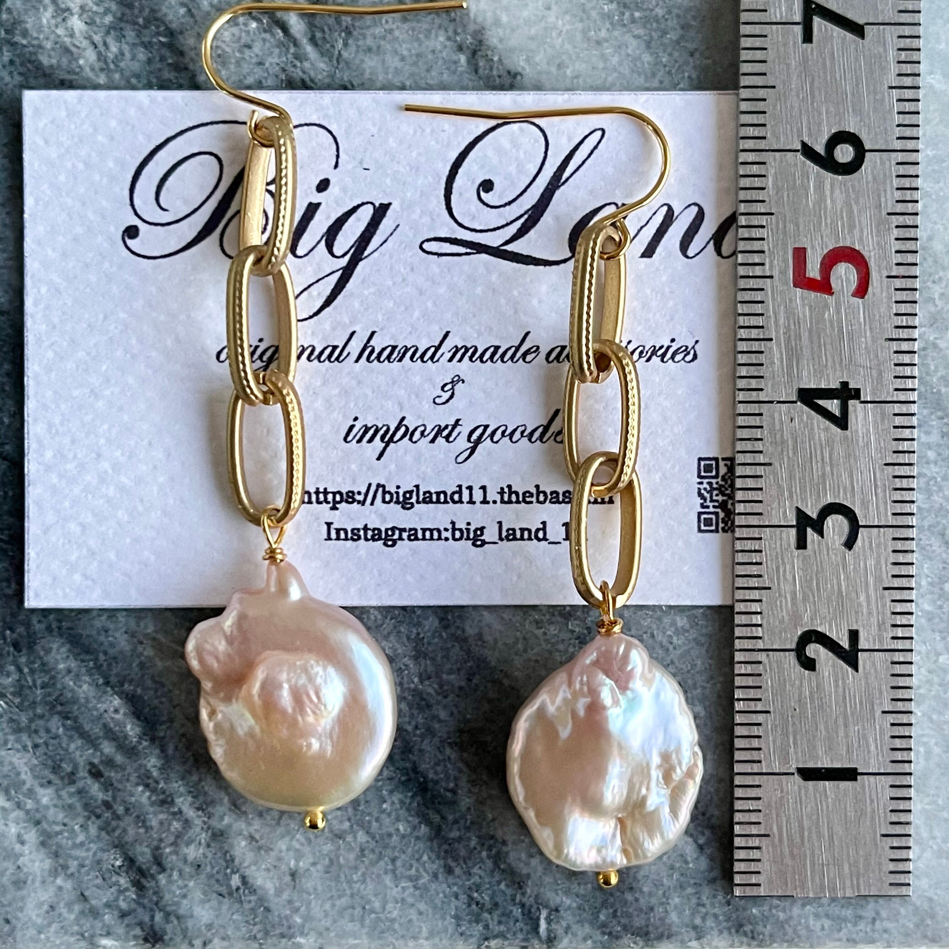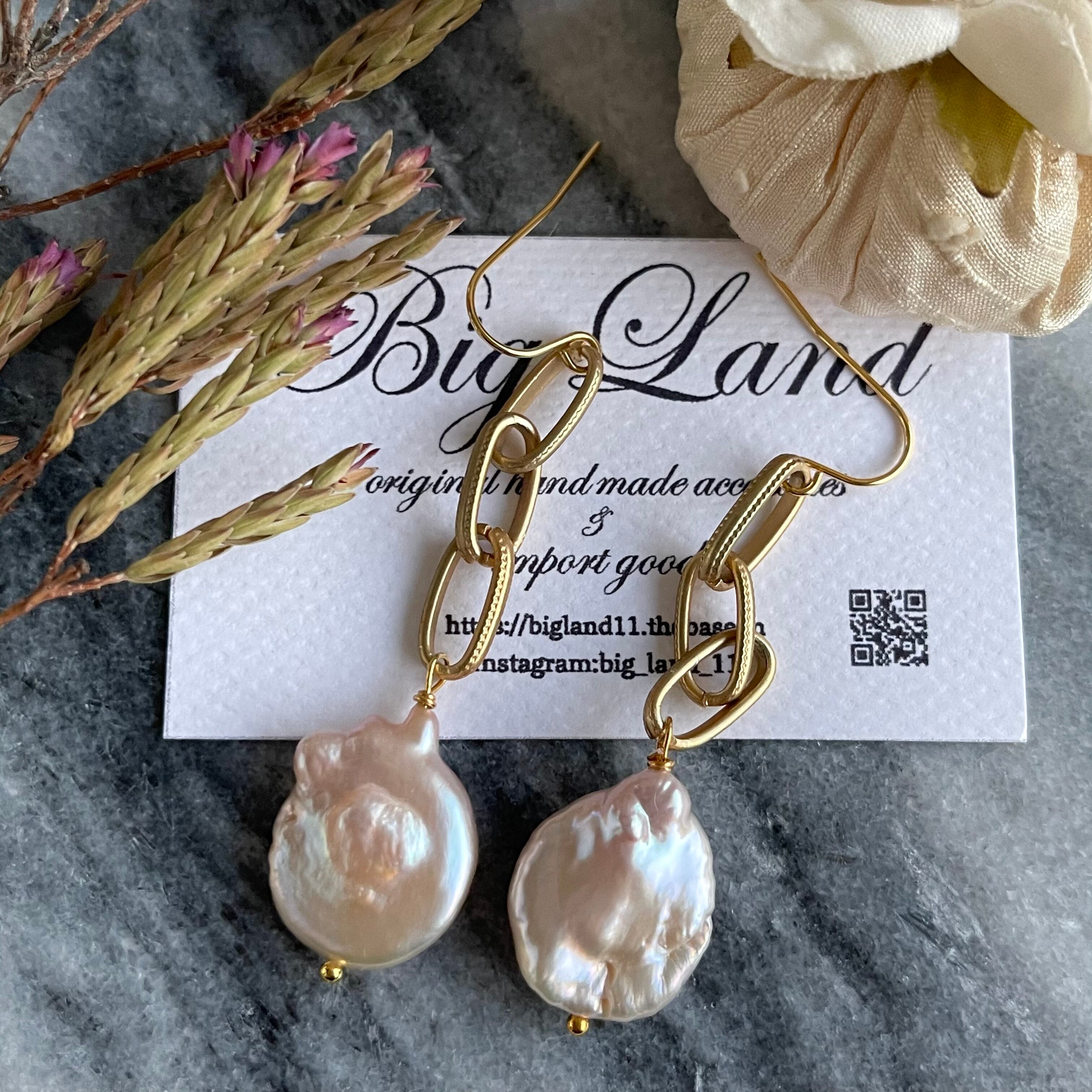 照り艶が大変美しい一点もの天然バロックパールピアス✨