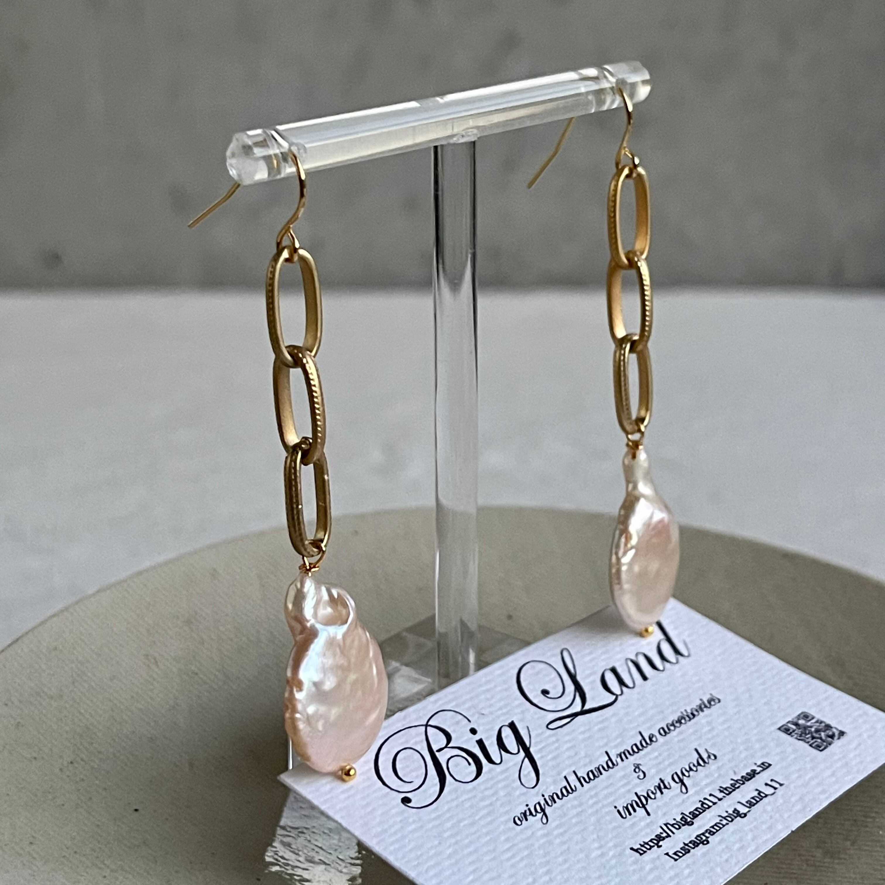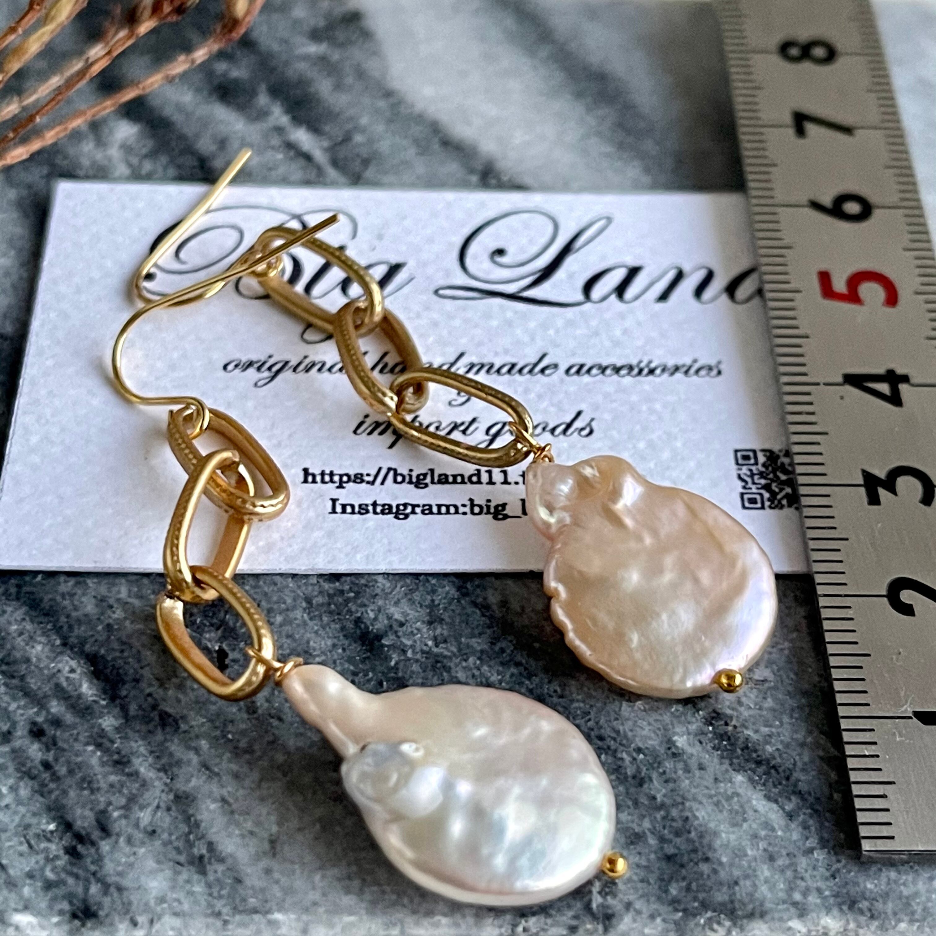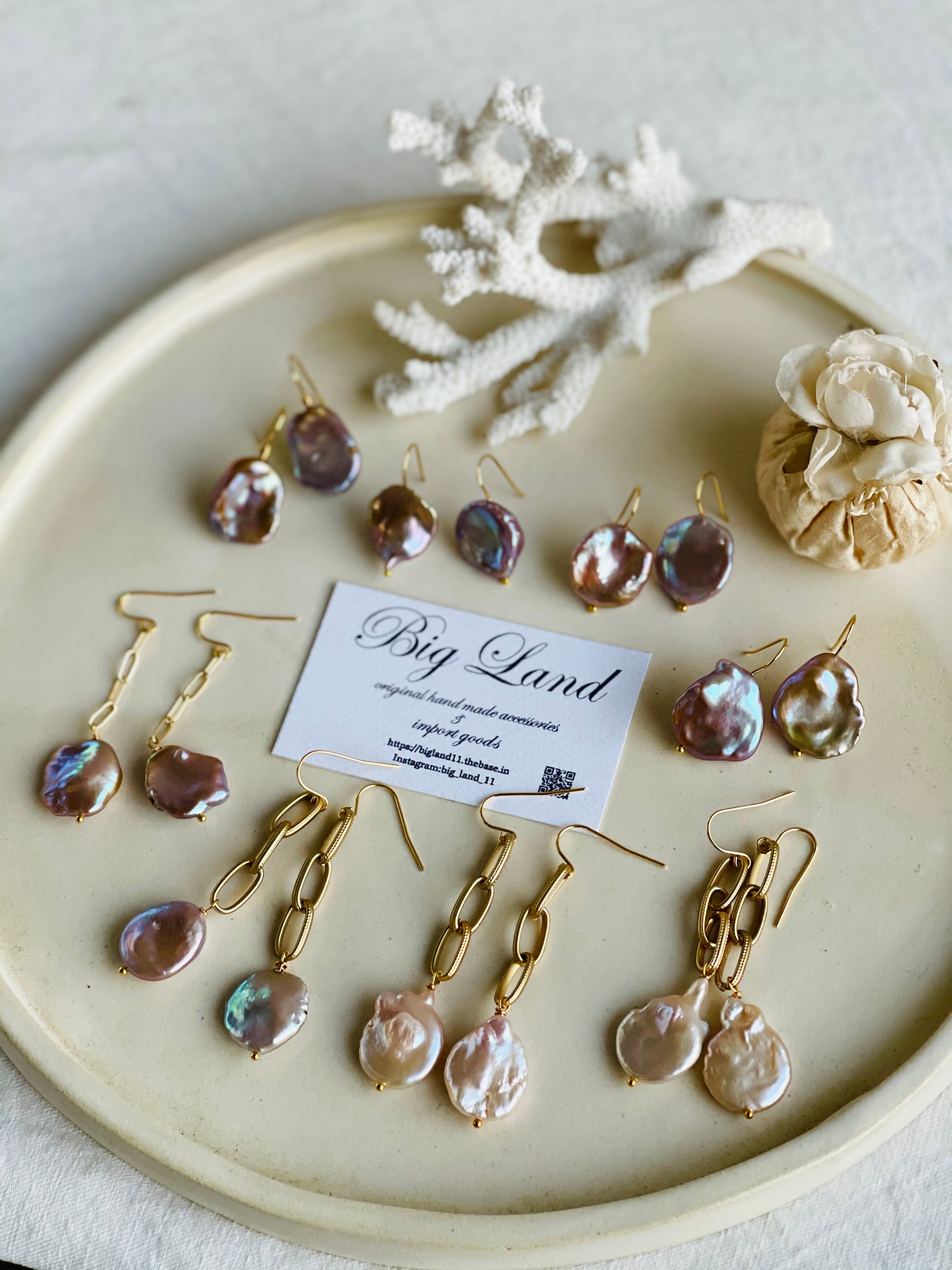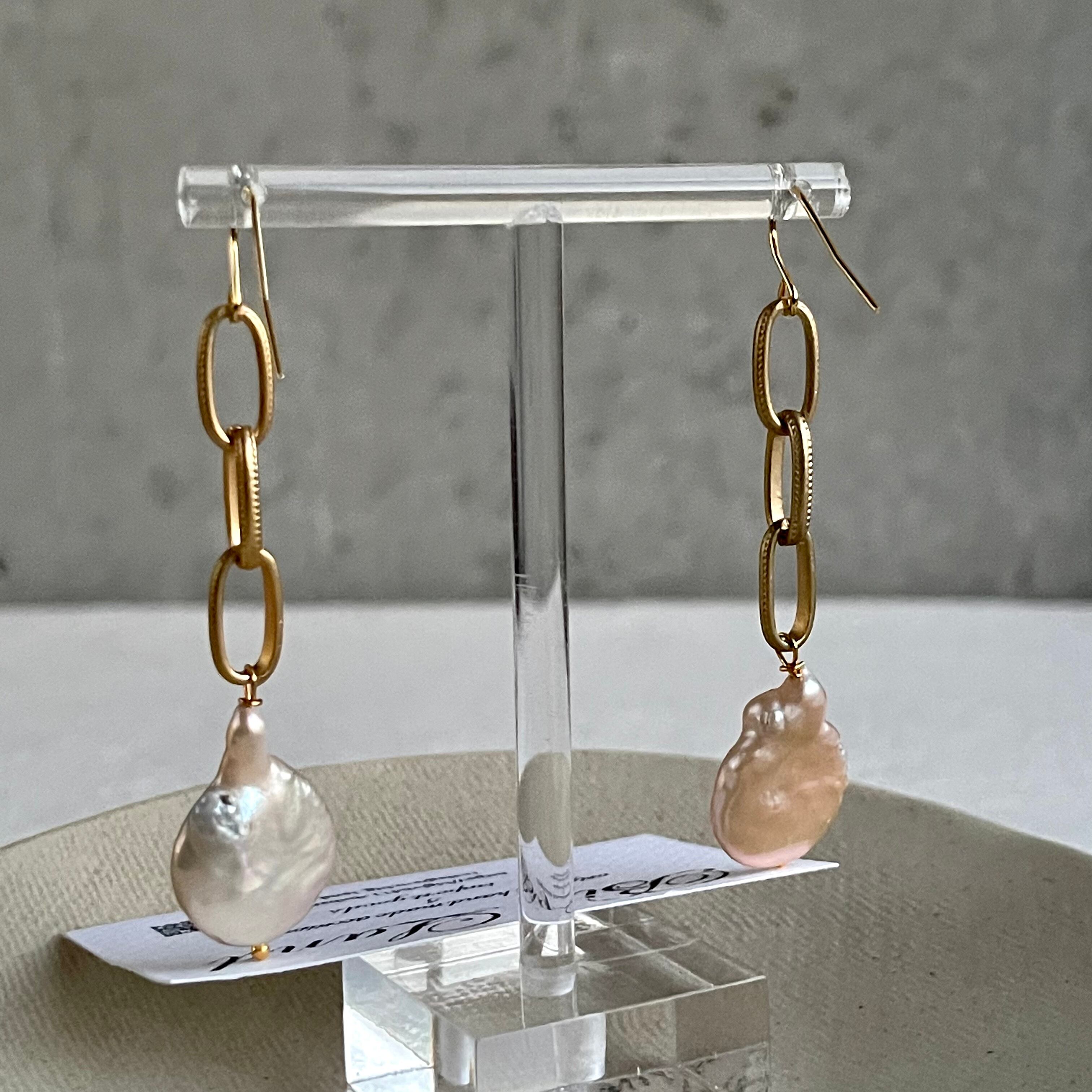 照り艶が大変美しい一点もの天然バロックパールピアス✨
