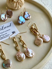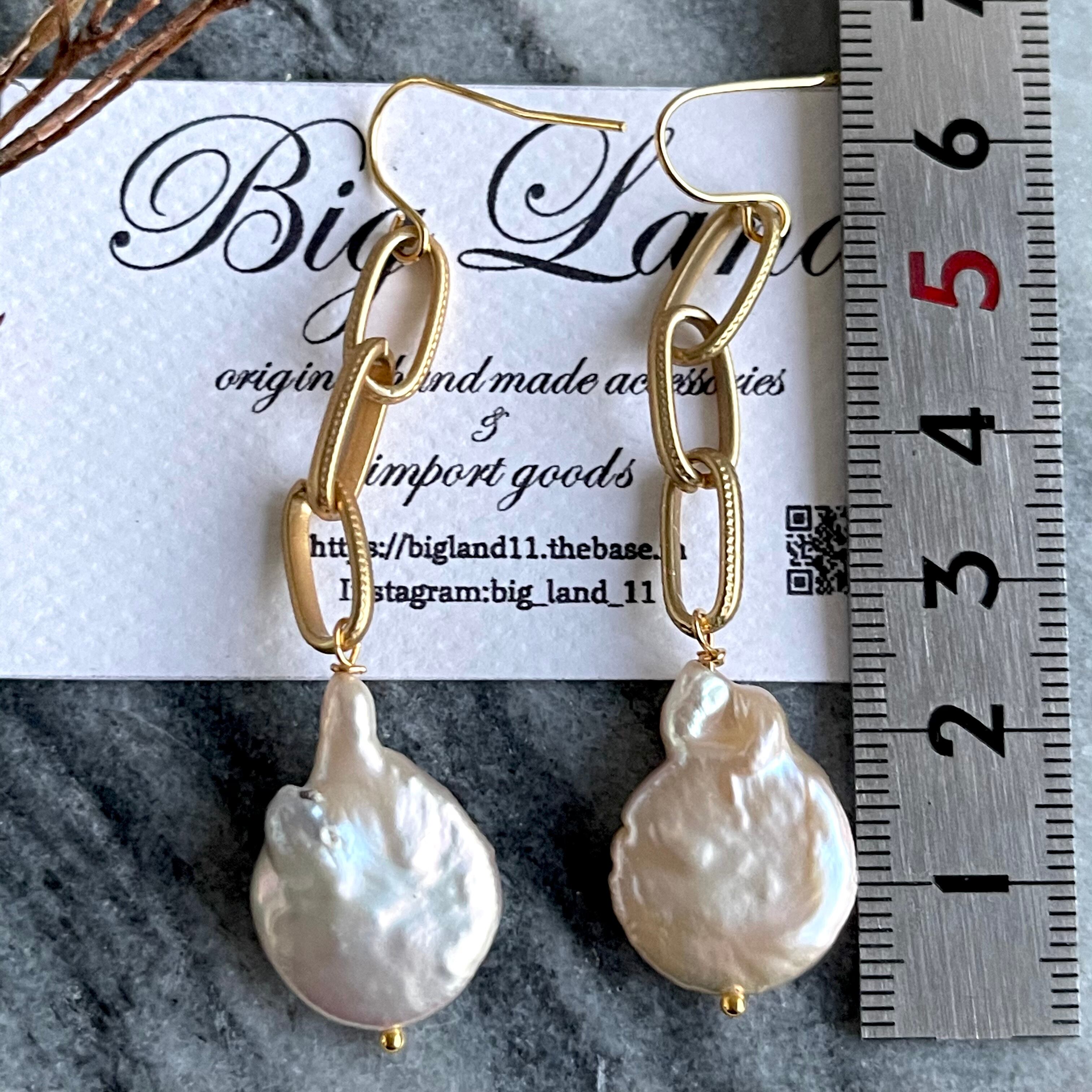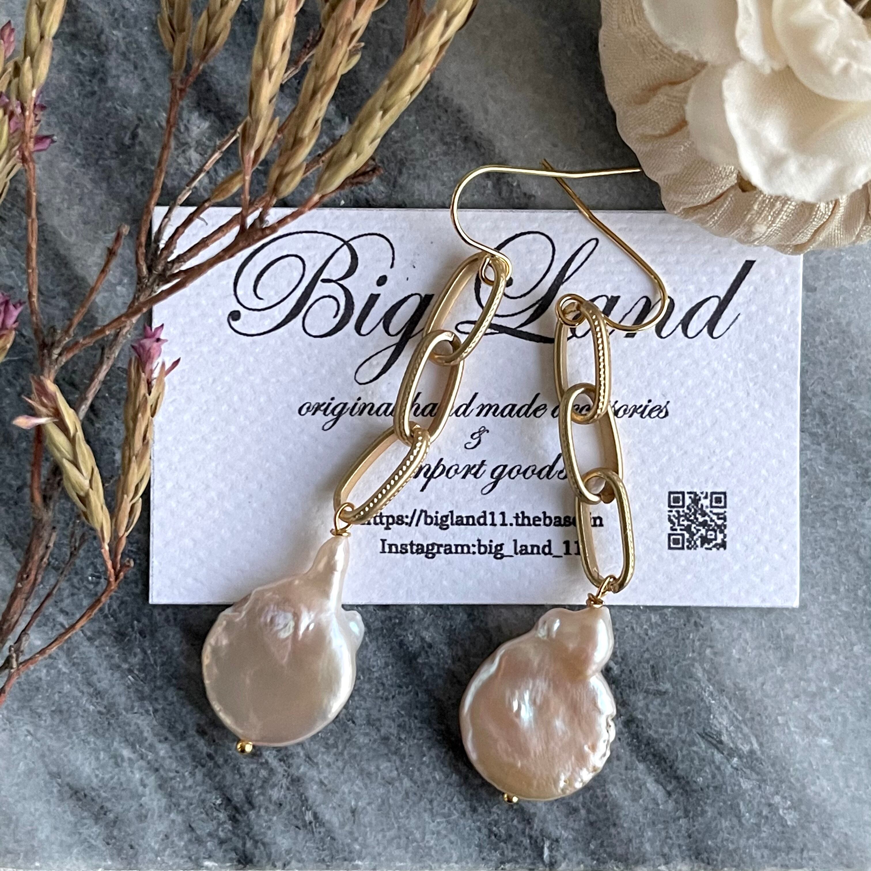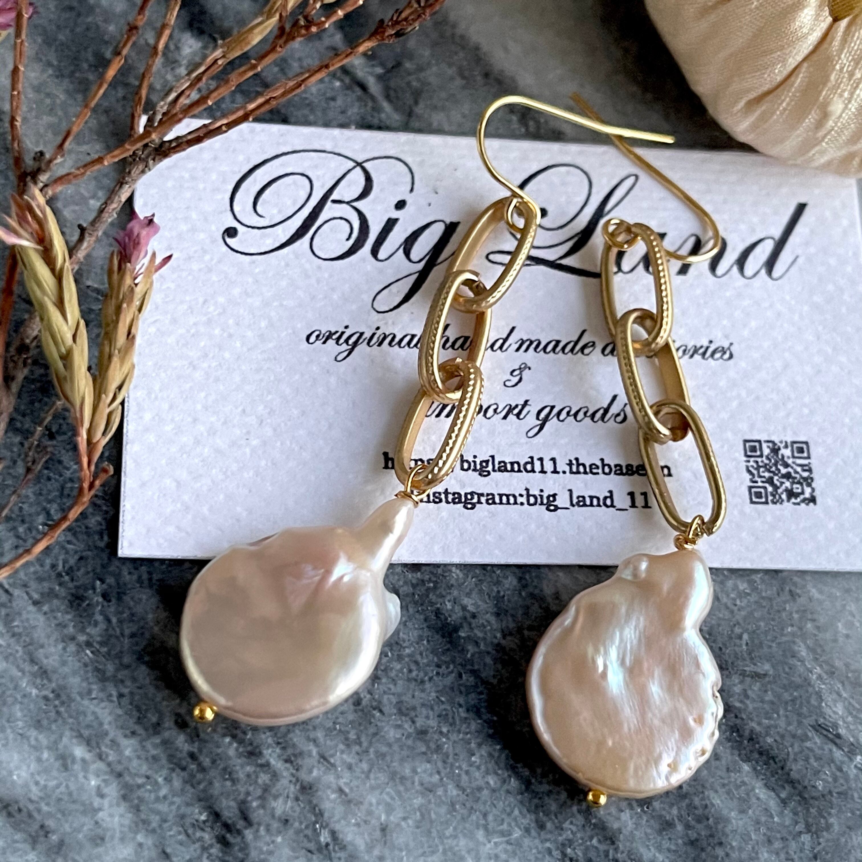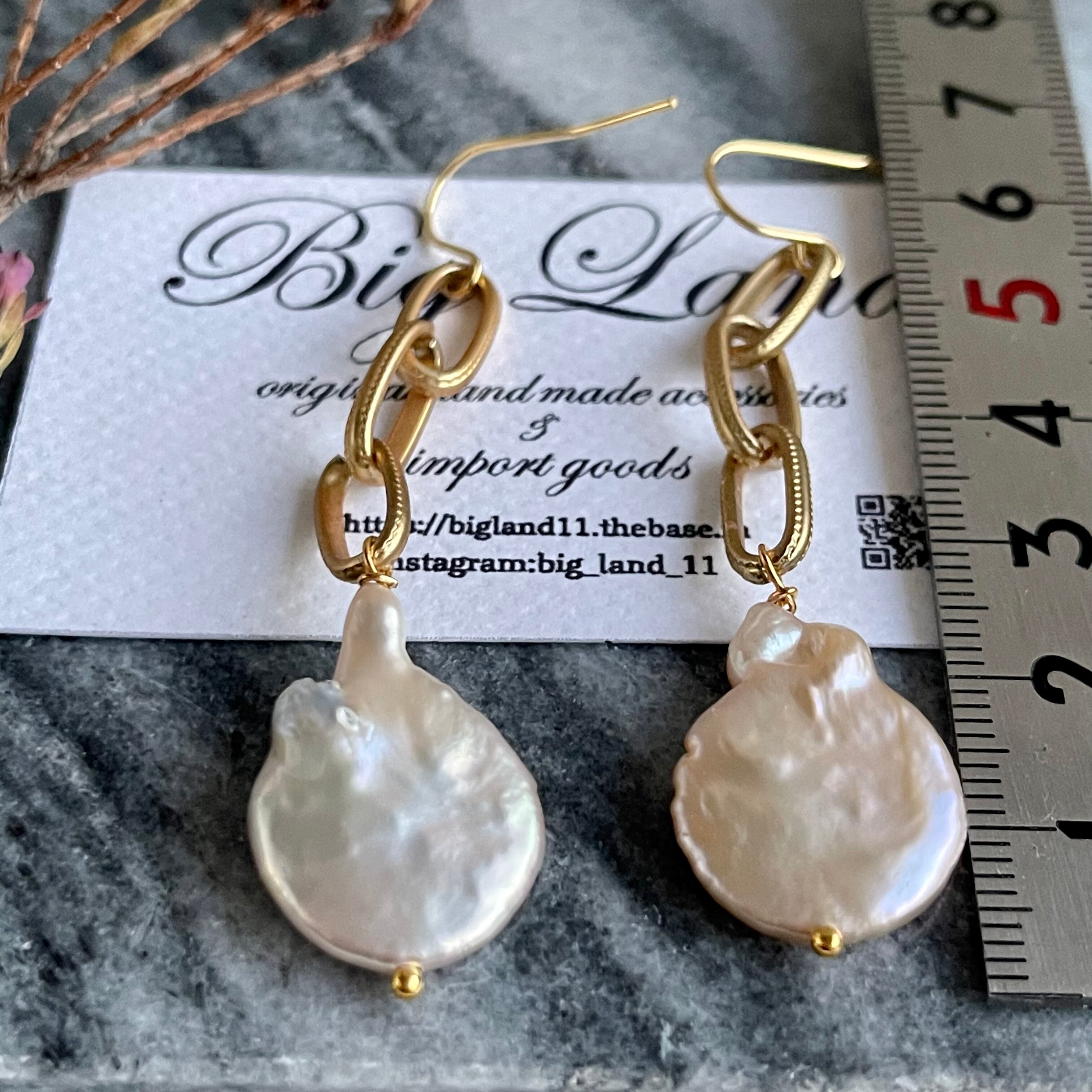 照り艶が大変美しい一点もの天然バロックパールピアス✨