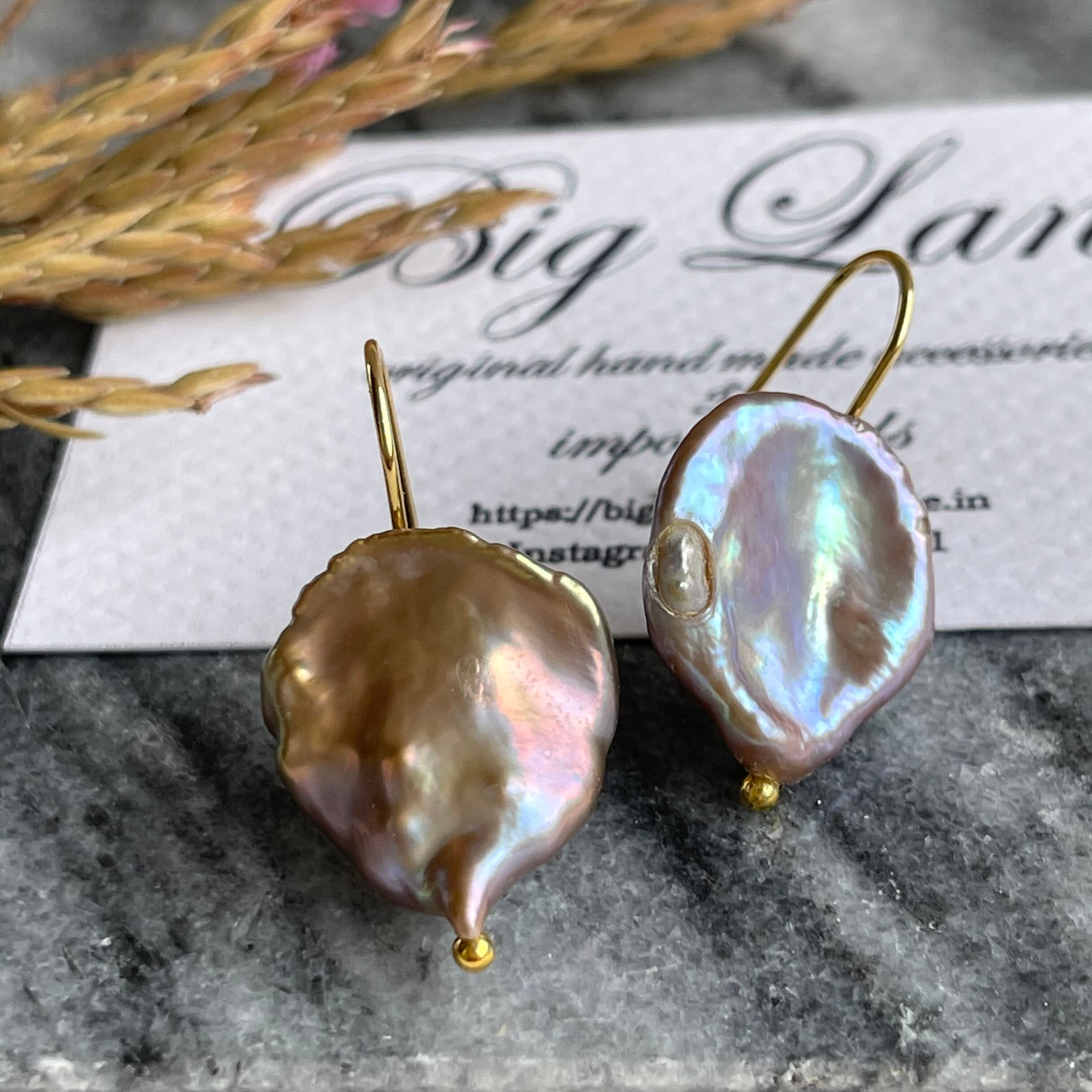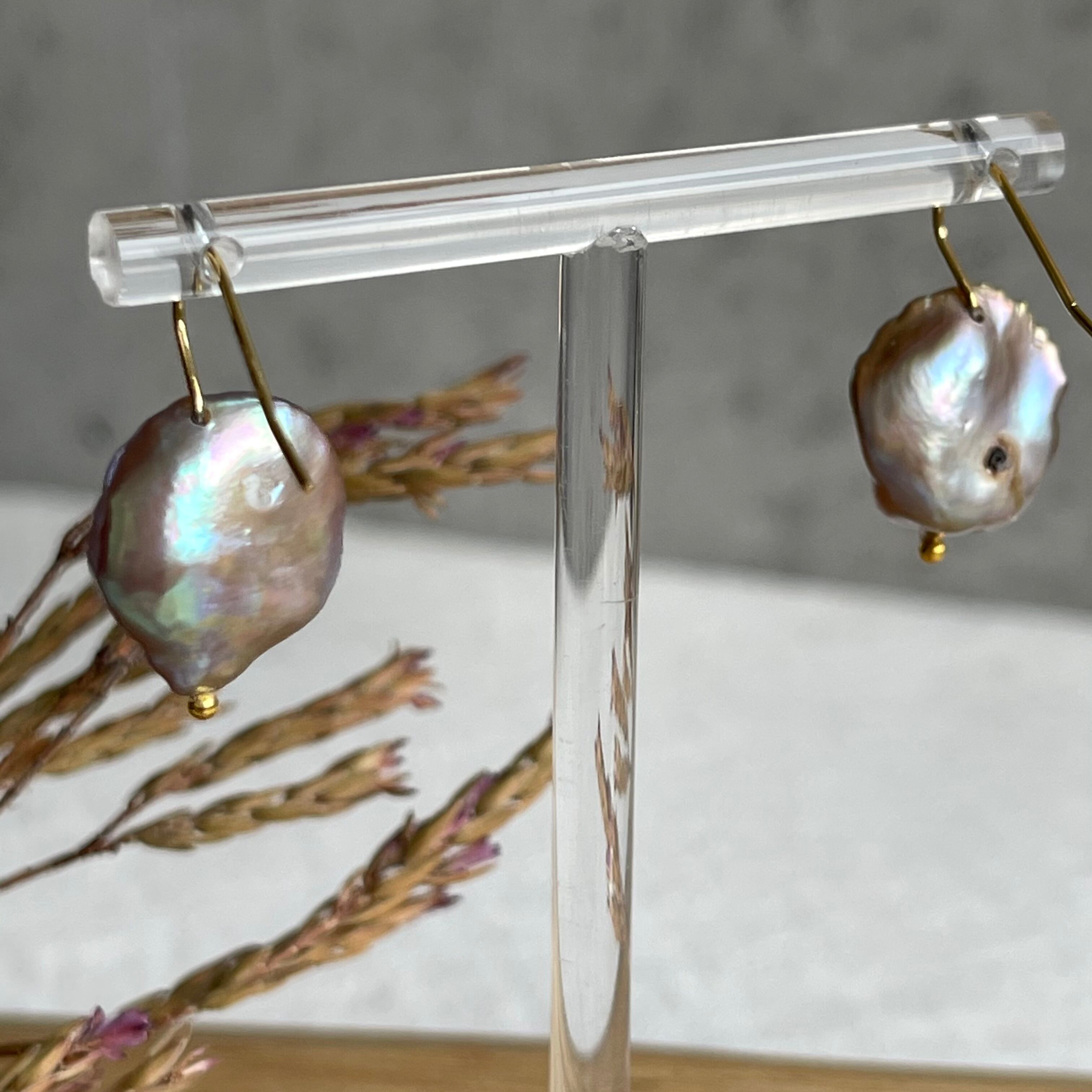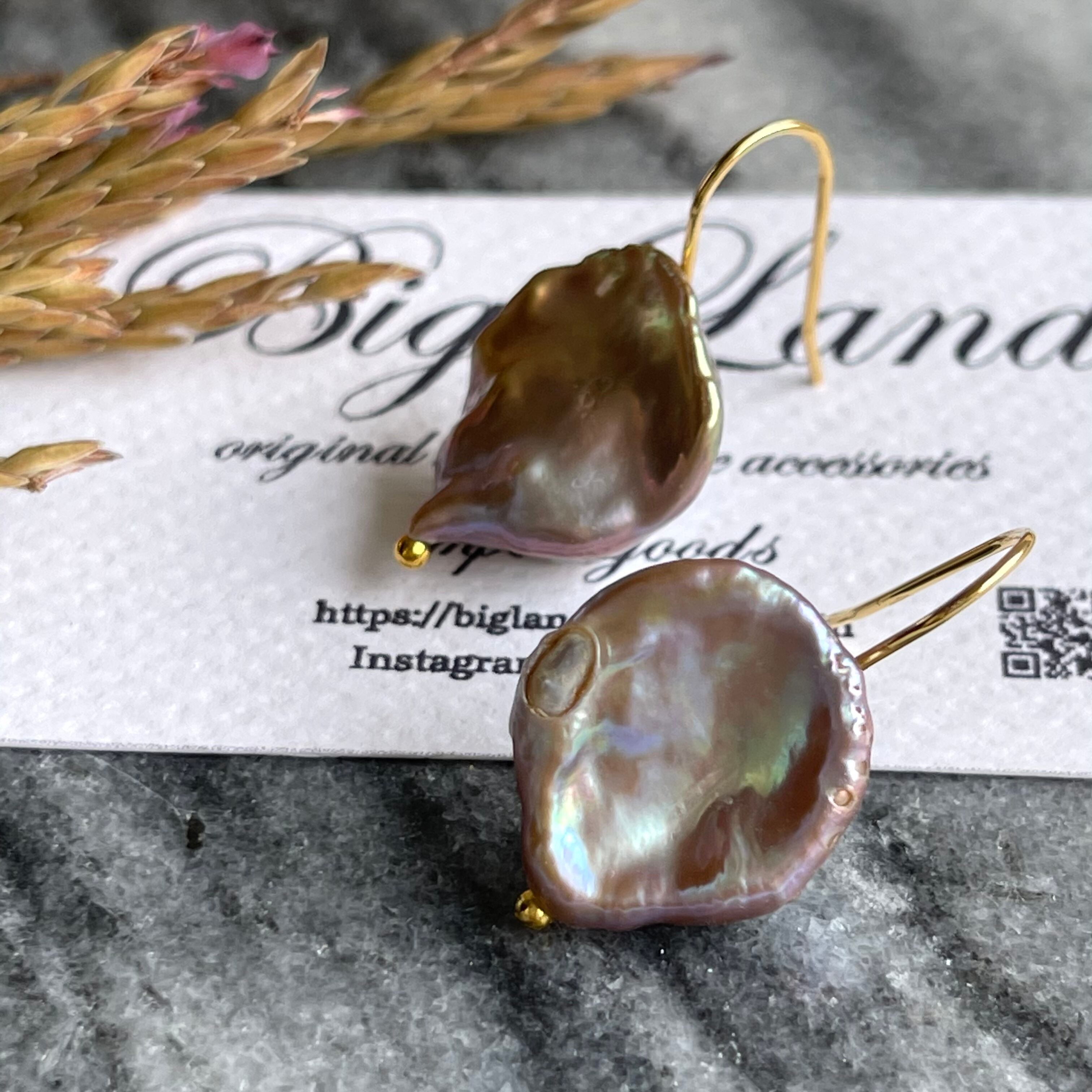 照り艶が大変美しい一点もの天然バロックパールピアス✨