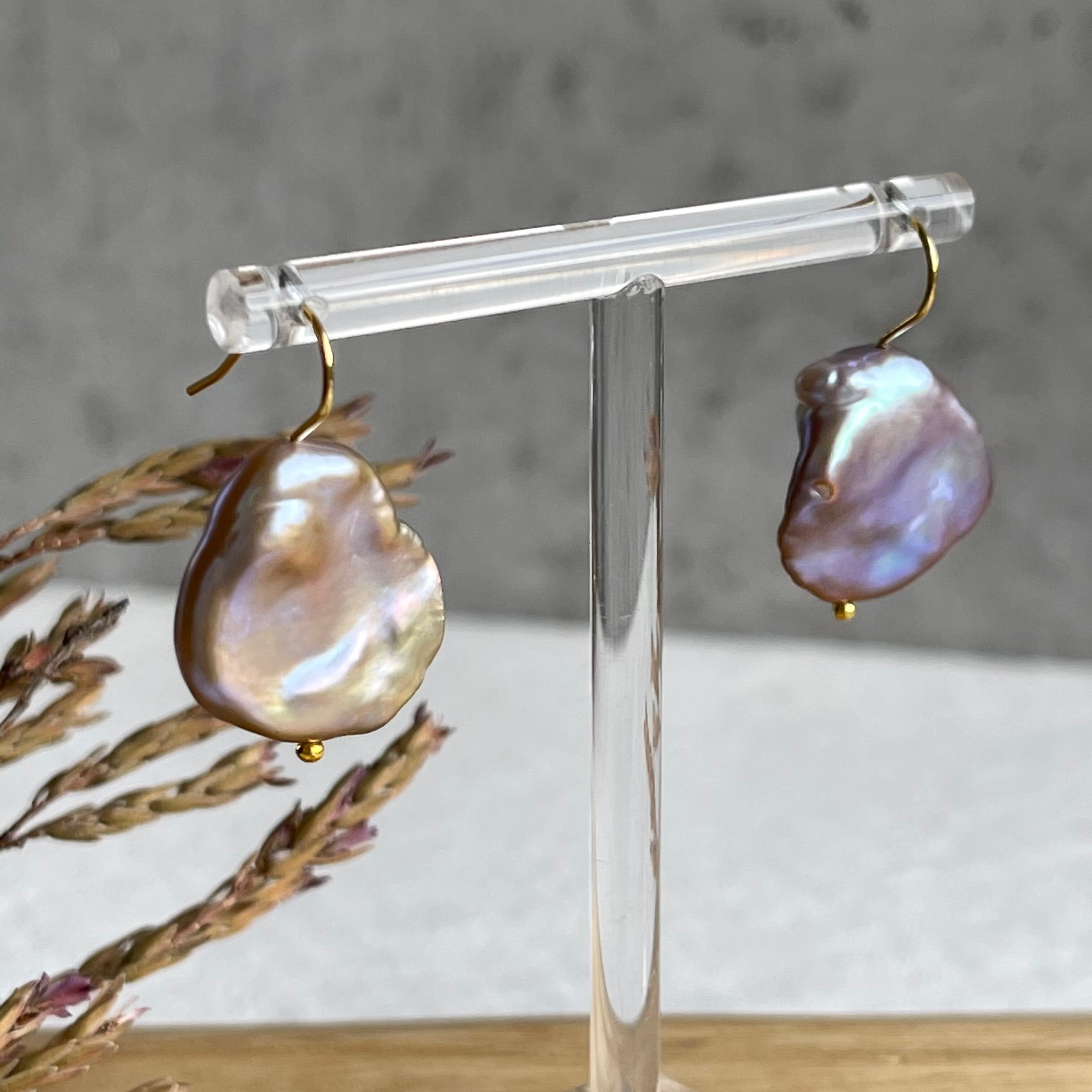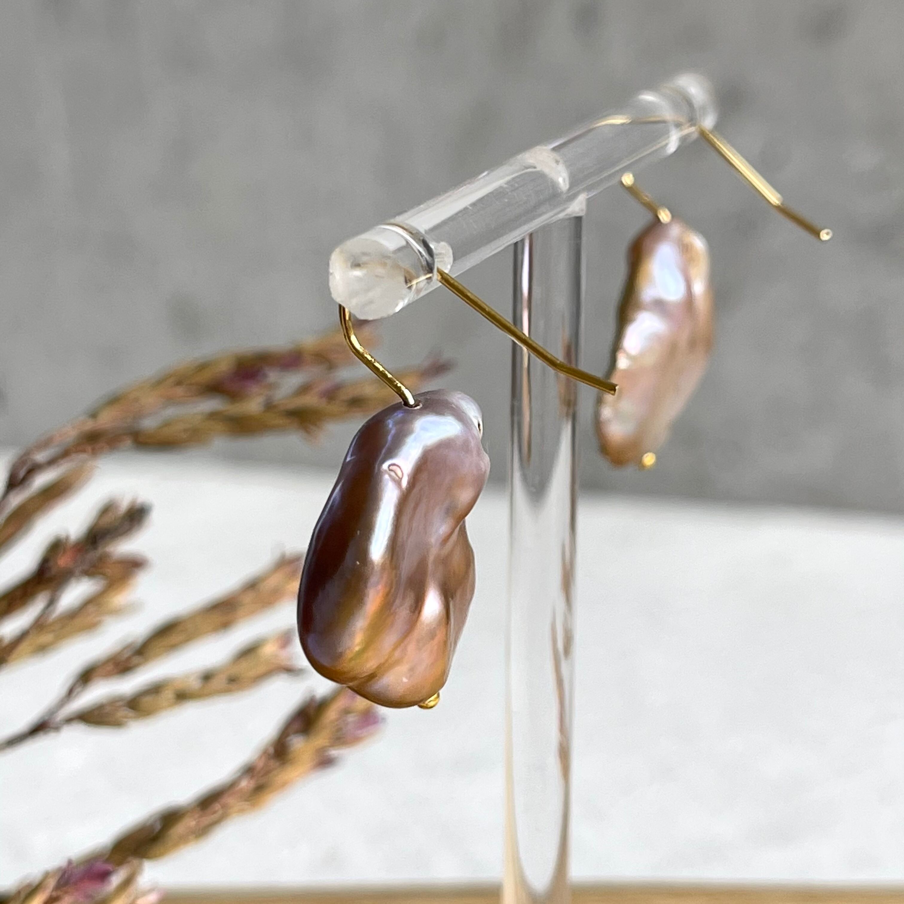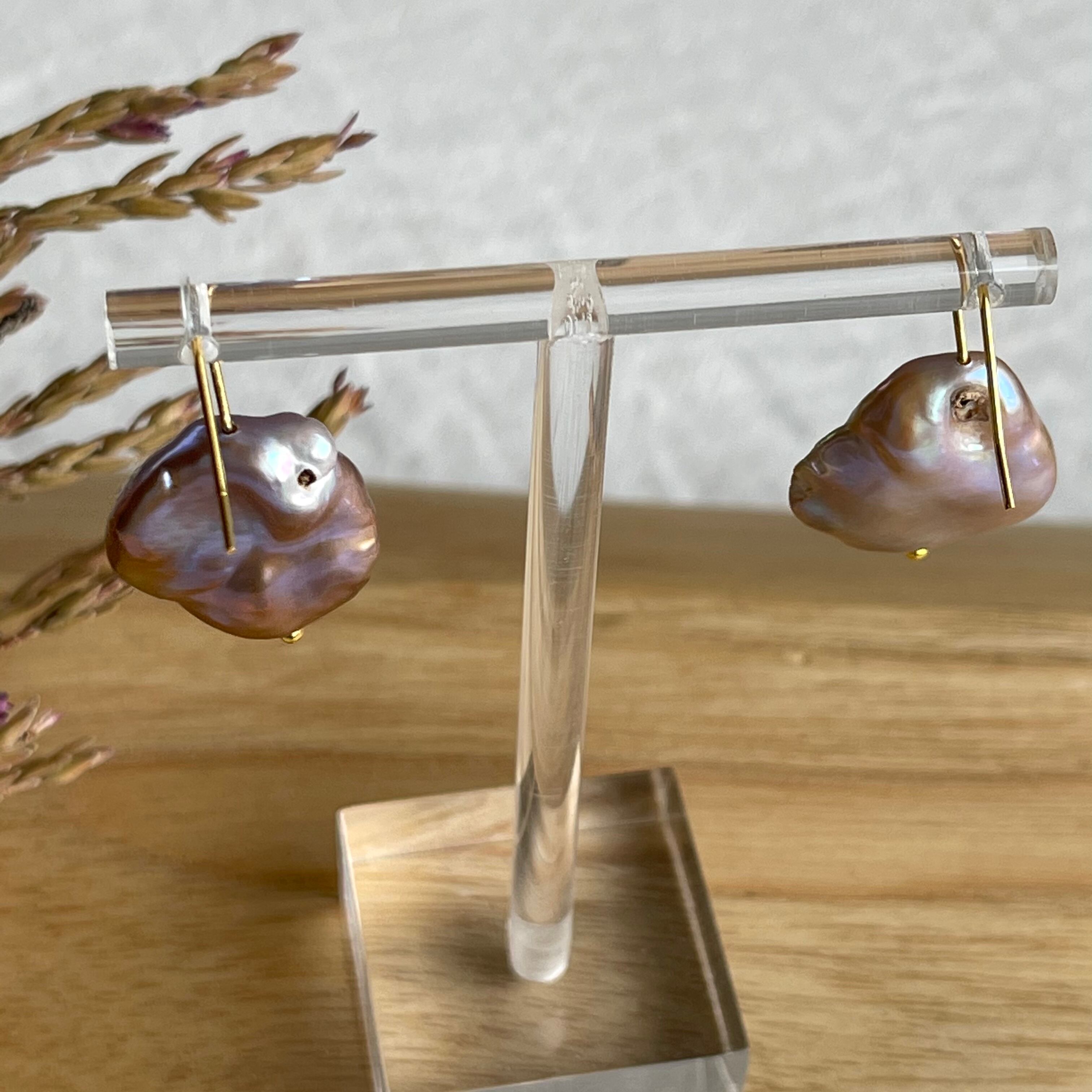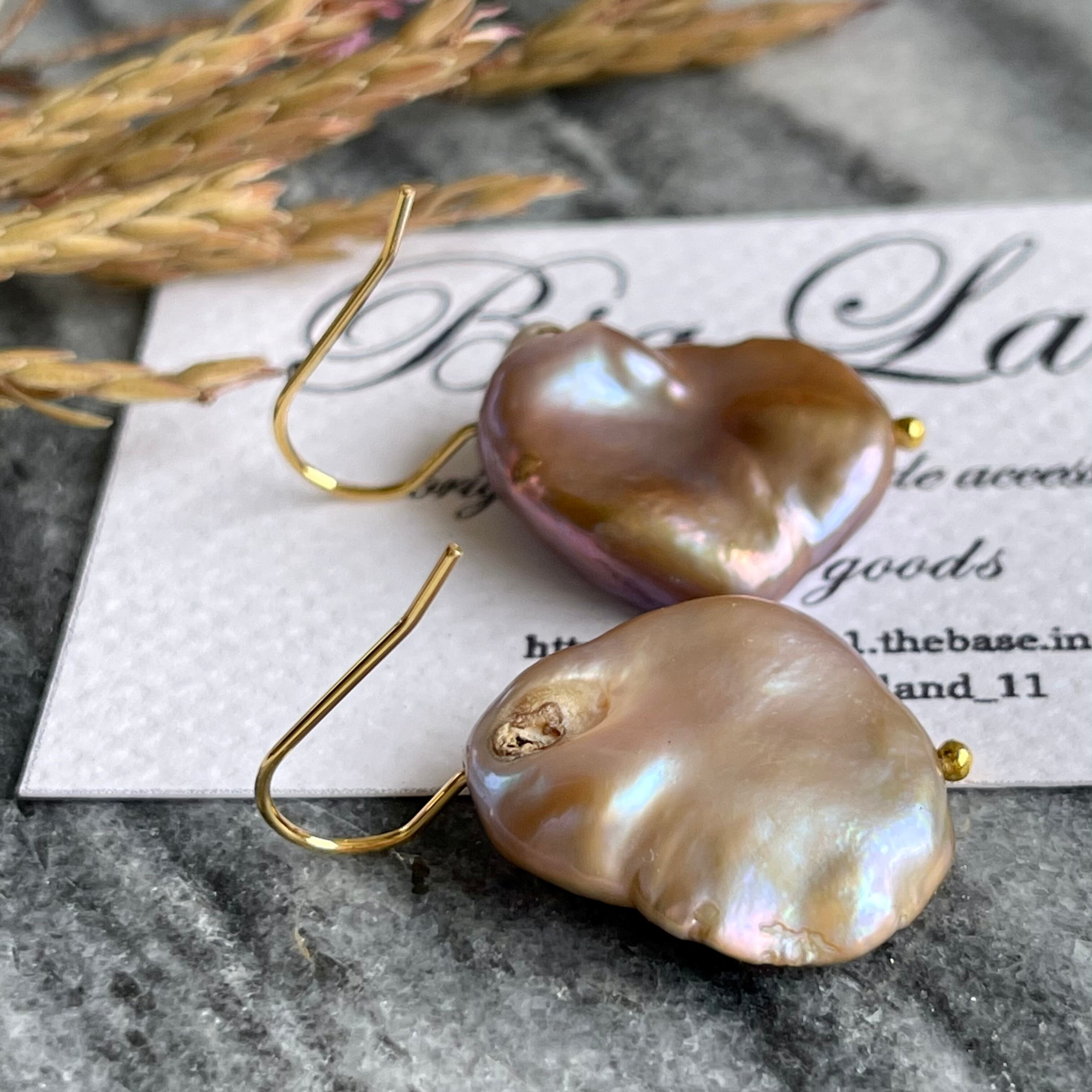 照り艶が大変美しい一点もの天然バロックパールピアス✨