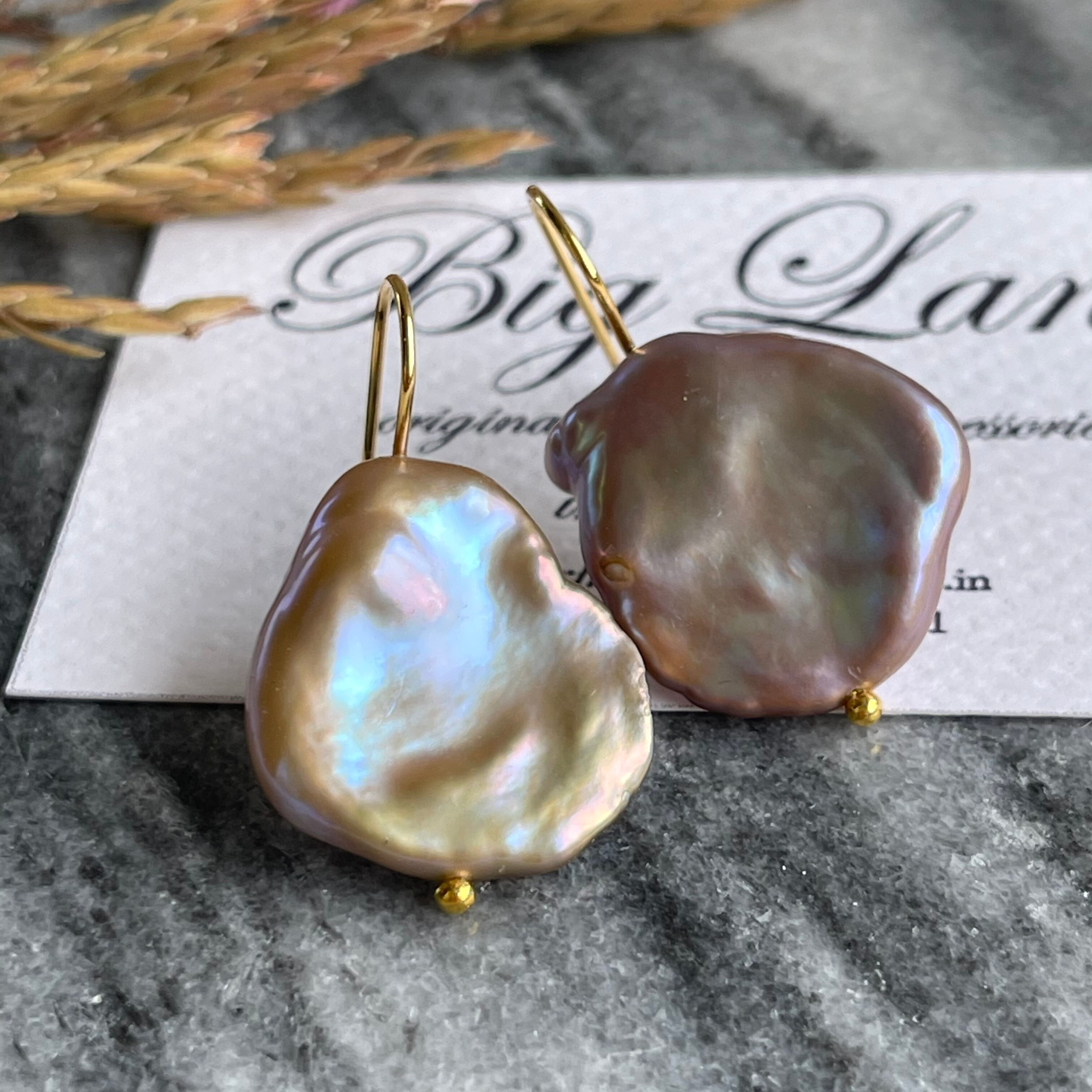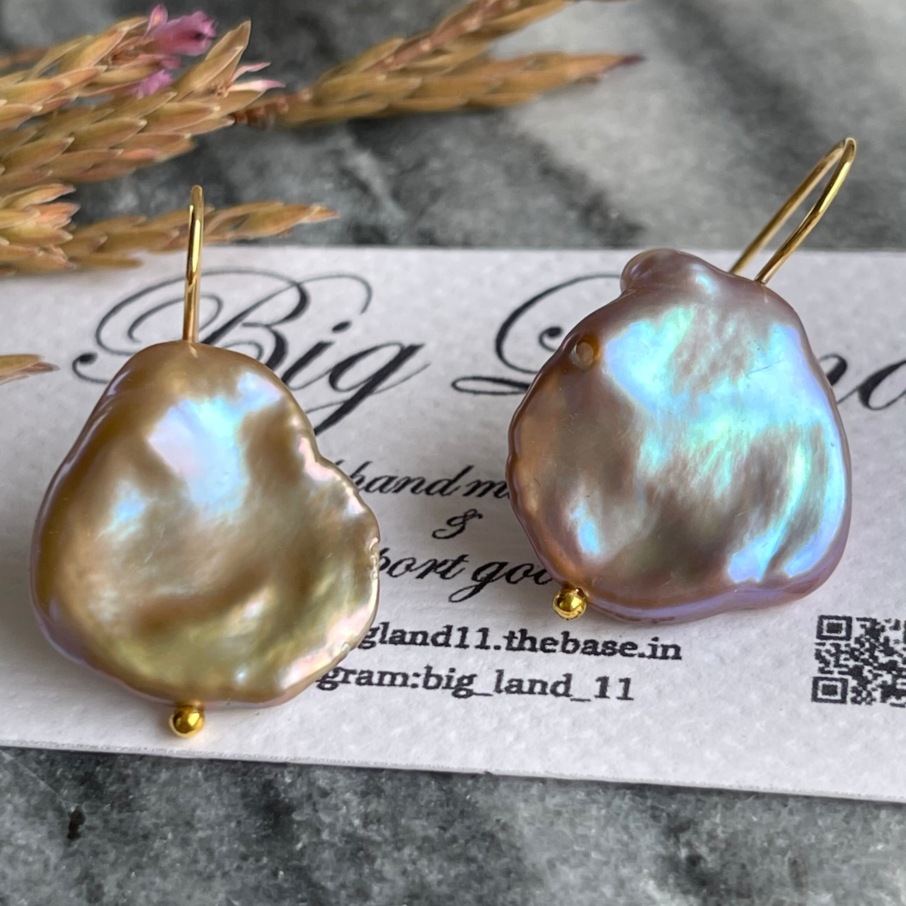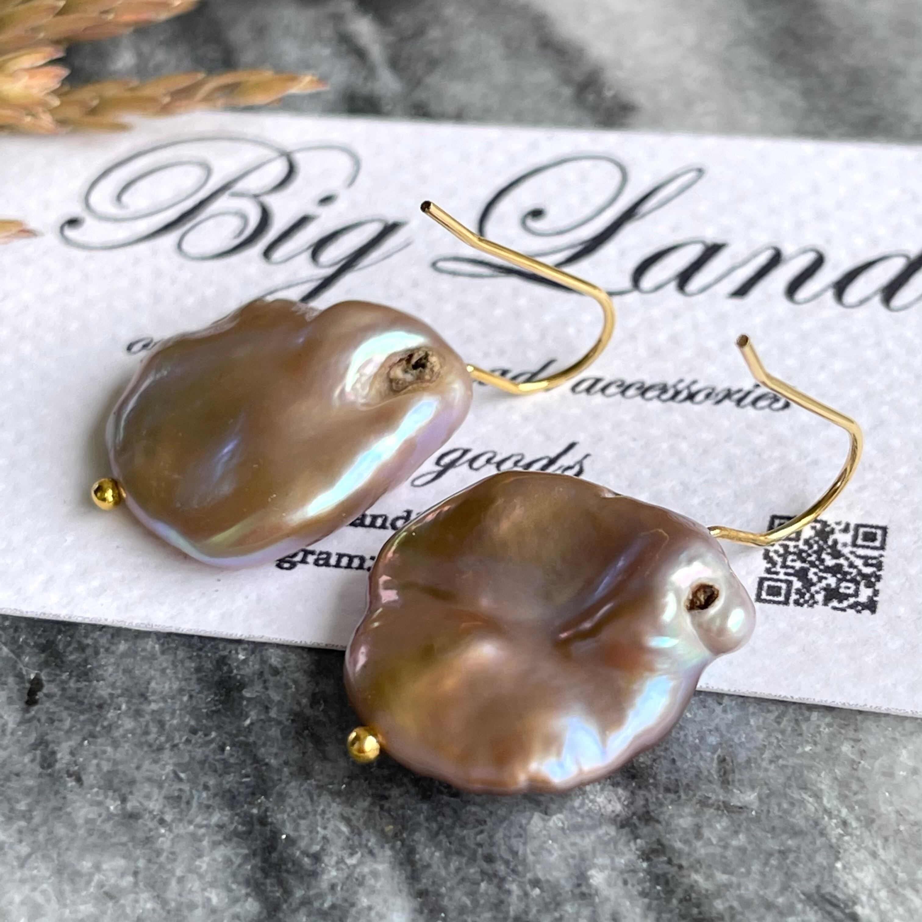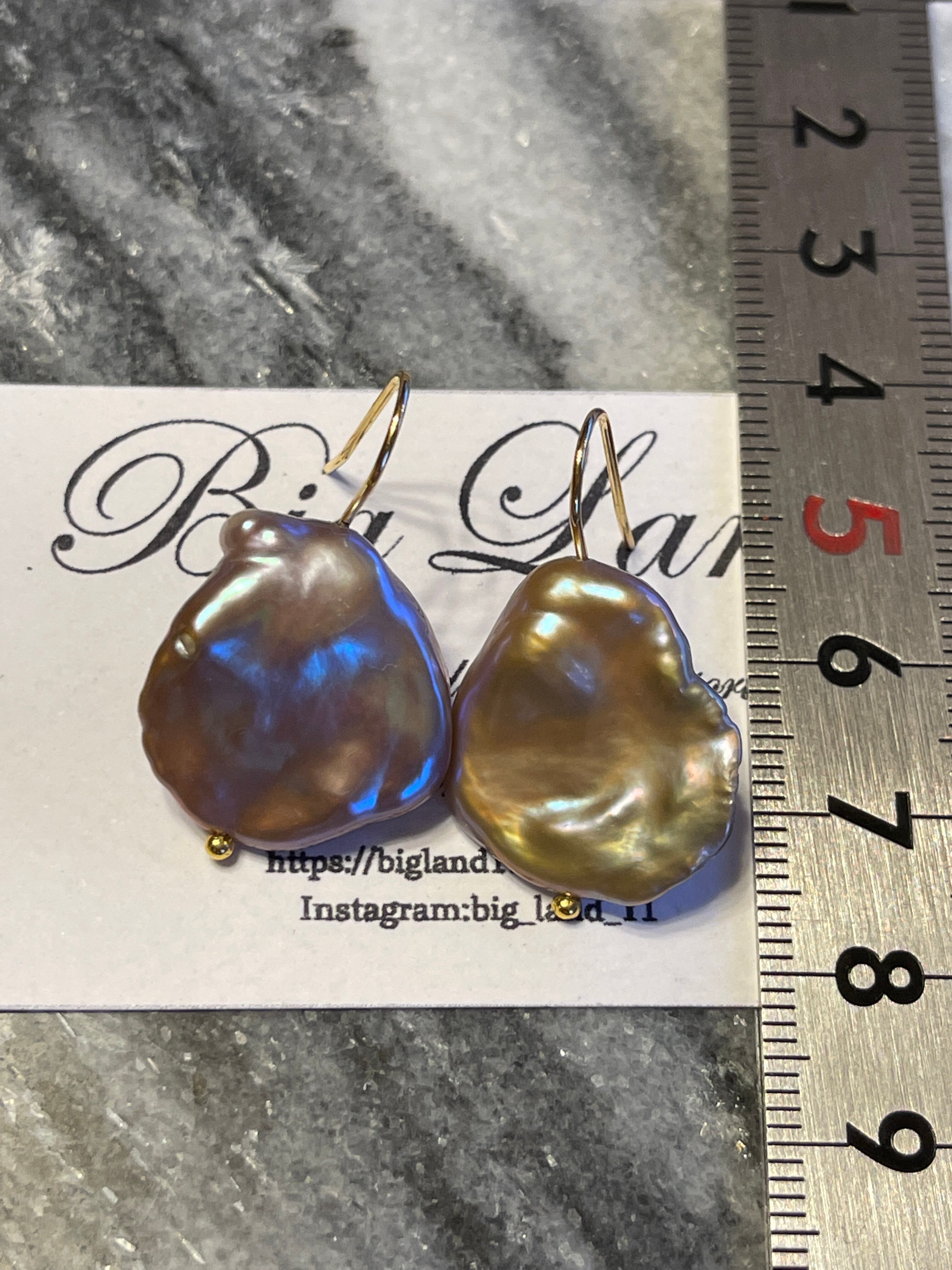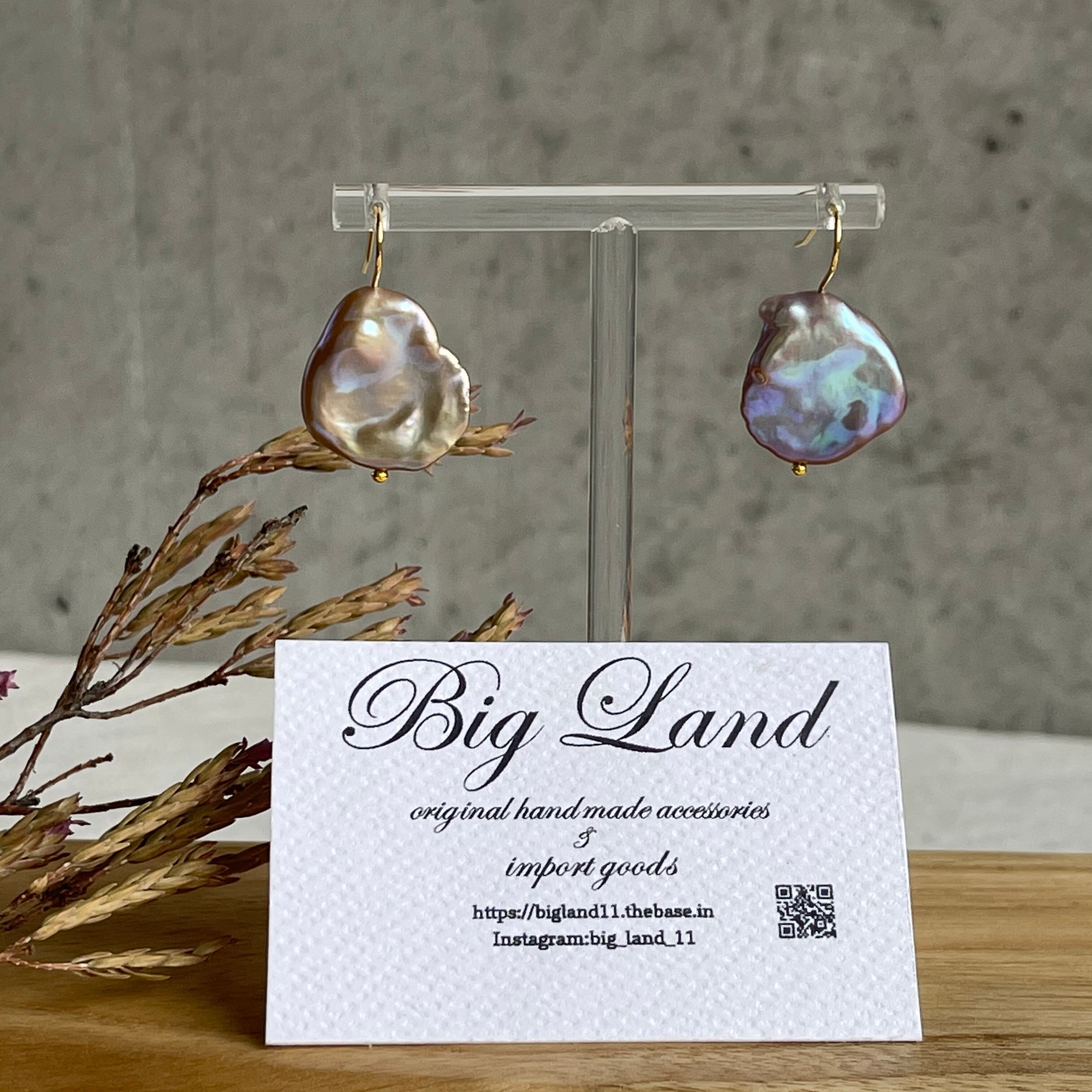 照り艶が大変美しい一点もの天然バロックパールピアス✨