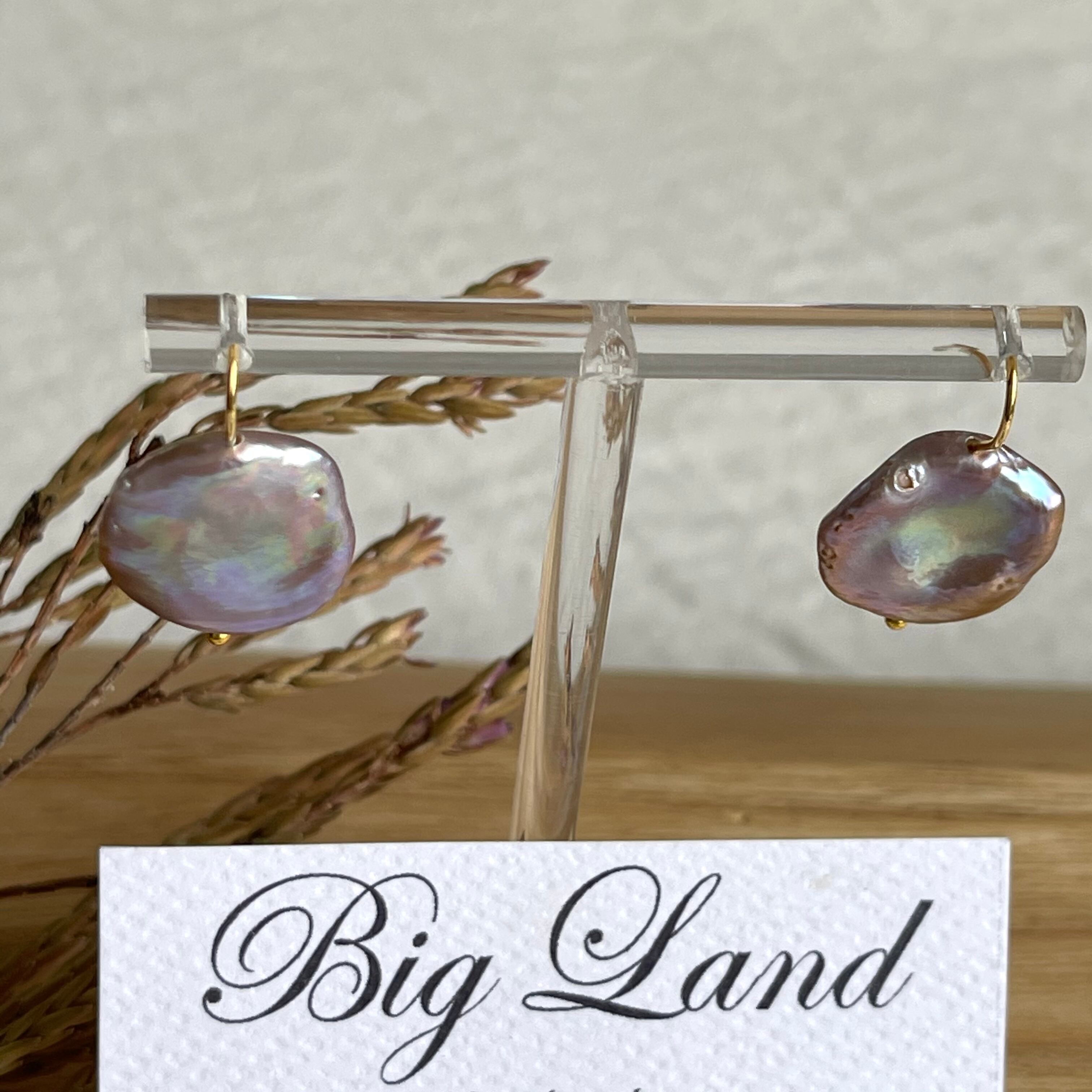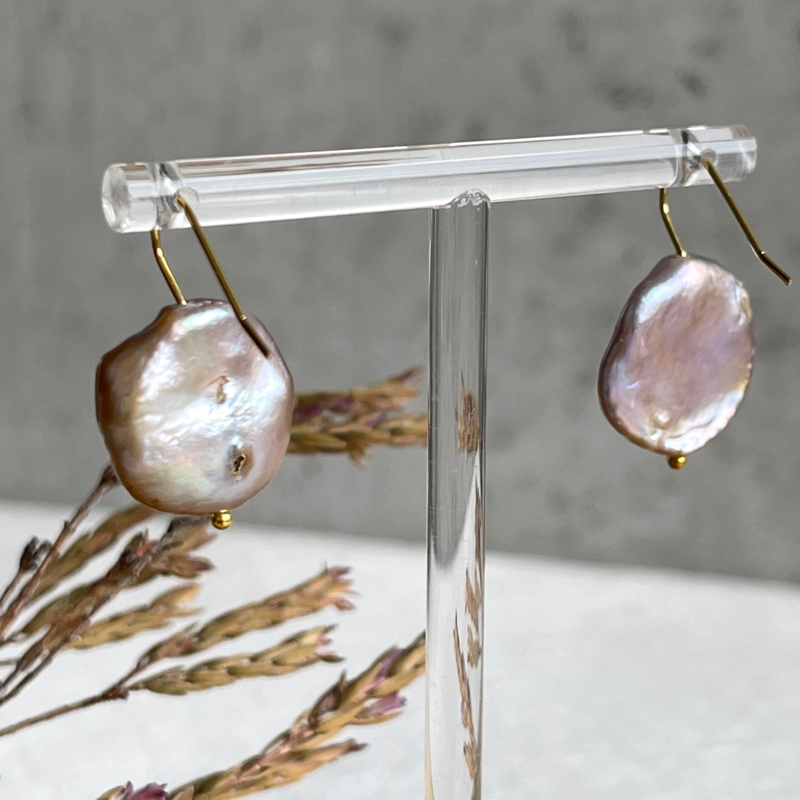 照り艶が大変美しい一点もの天然バロックパールピアス✨