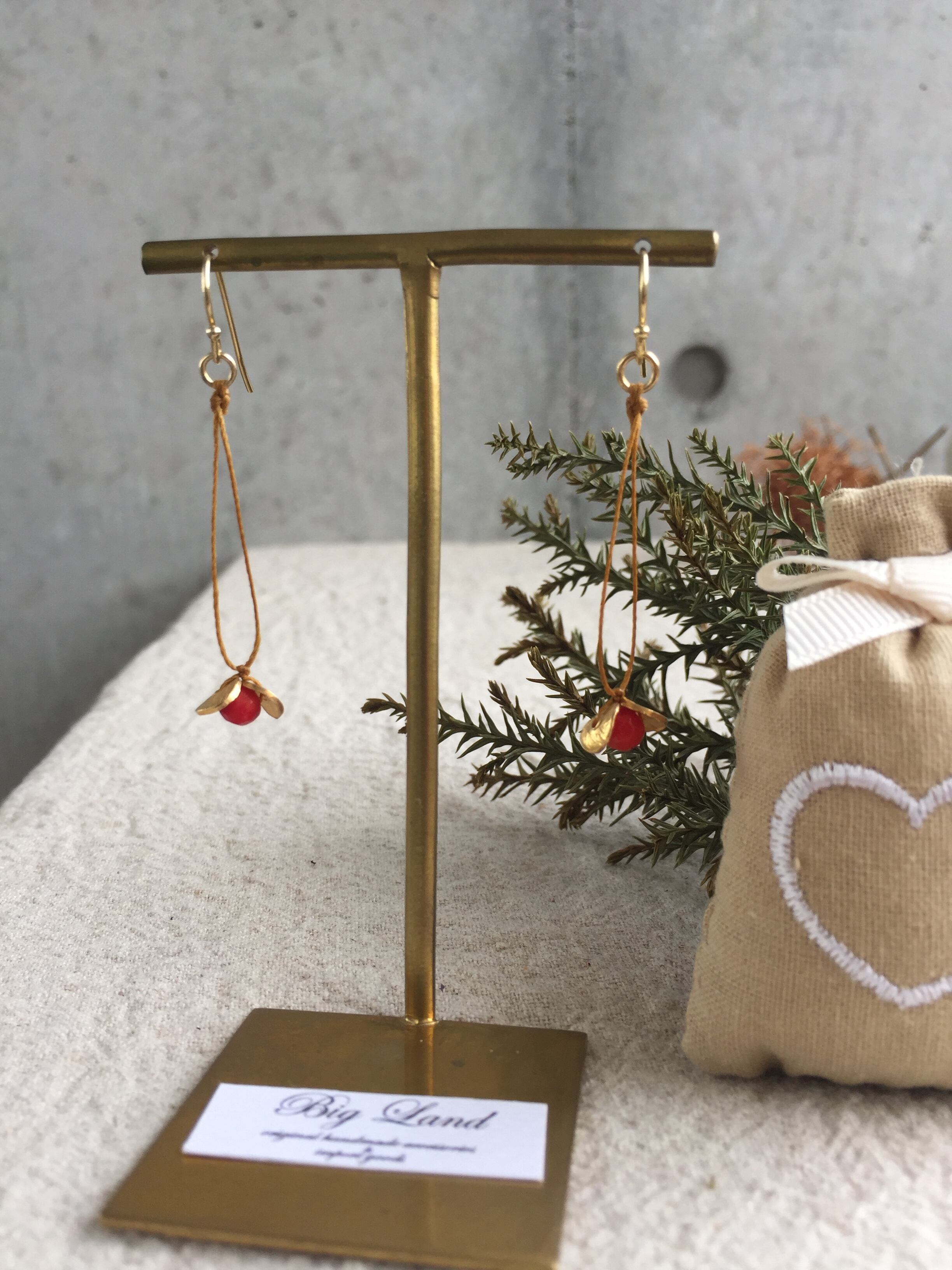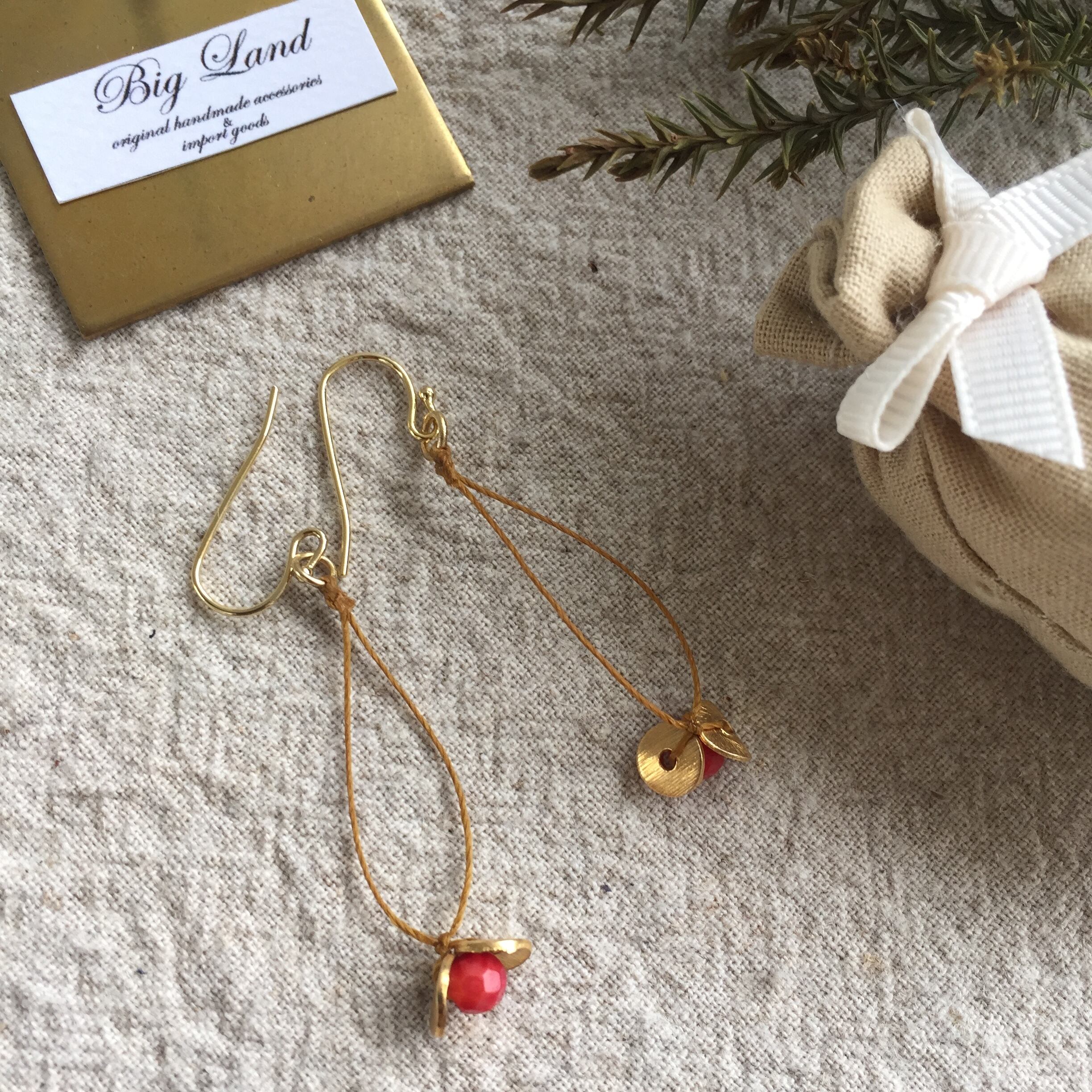 華奢な雰囲気ですがマットゴールドと真っ赤な珊瑚がお顔周りをパッと明るくして素朴の中に華やかな雰囲気が全開です