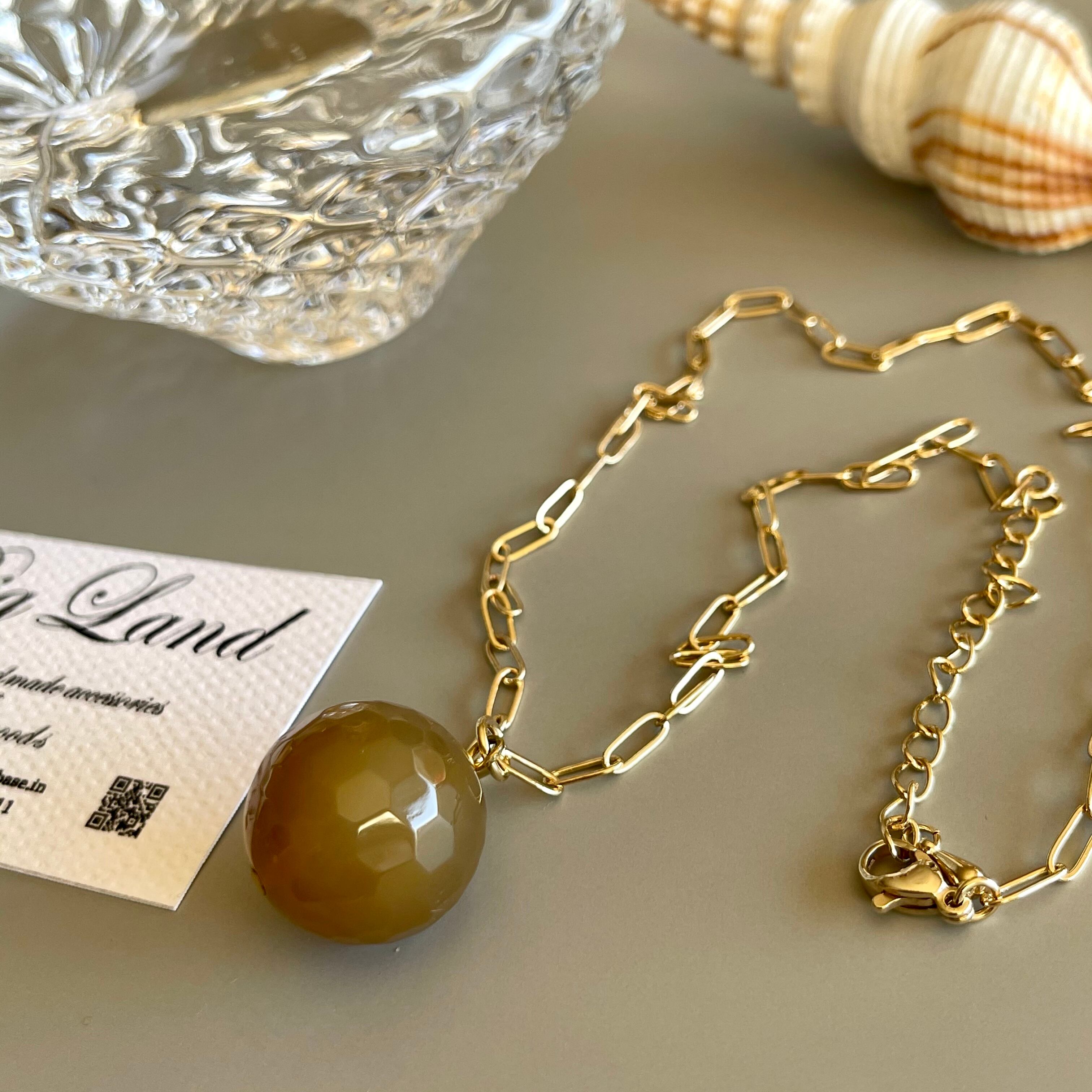 瑪瑙ネックレス 多面カット ミドルチェーン