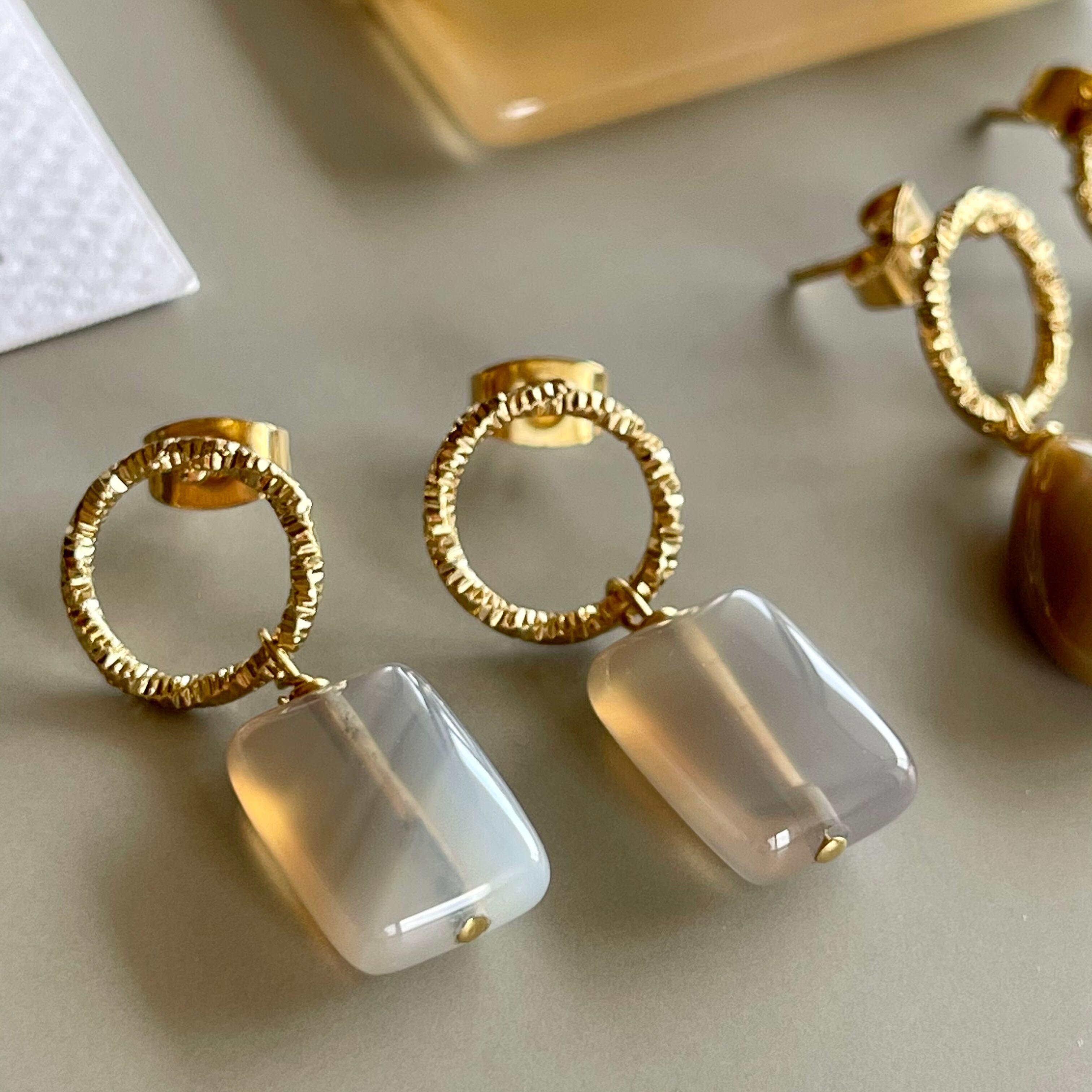 艶々でぽってりした美しい上質な瑪瑙(メノウ)ピアス