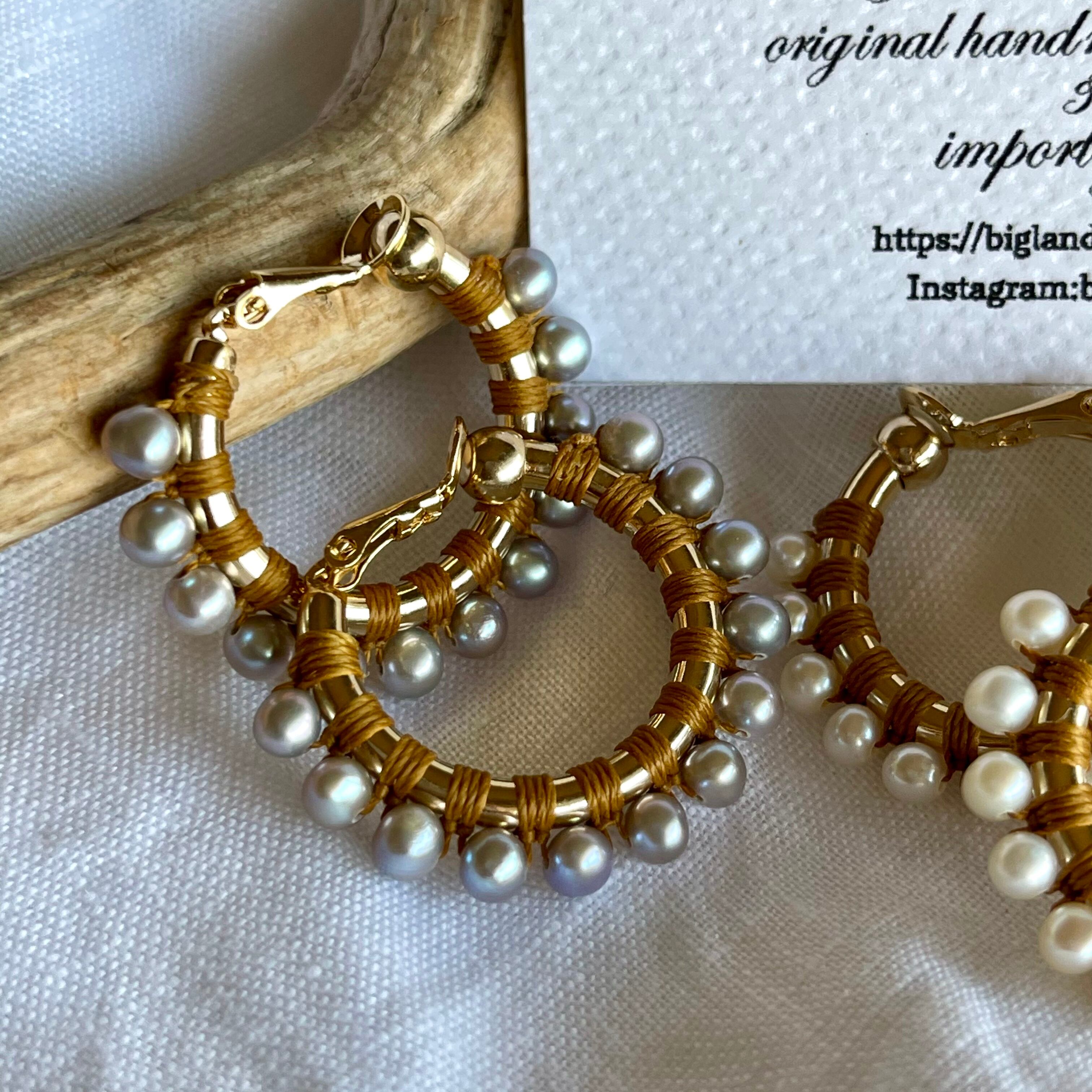 初のイヤリング‼️こちらのピアスは既に販売しておりますがイヤリングも有ればとのお声を頂き、今回定番のマストカラ〜3色でお作りしました☝️