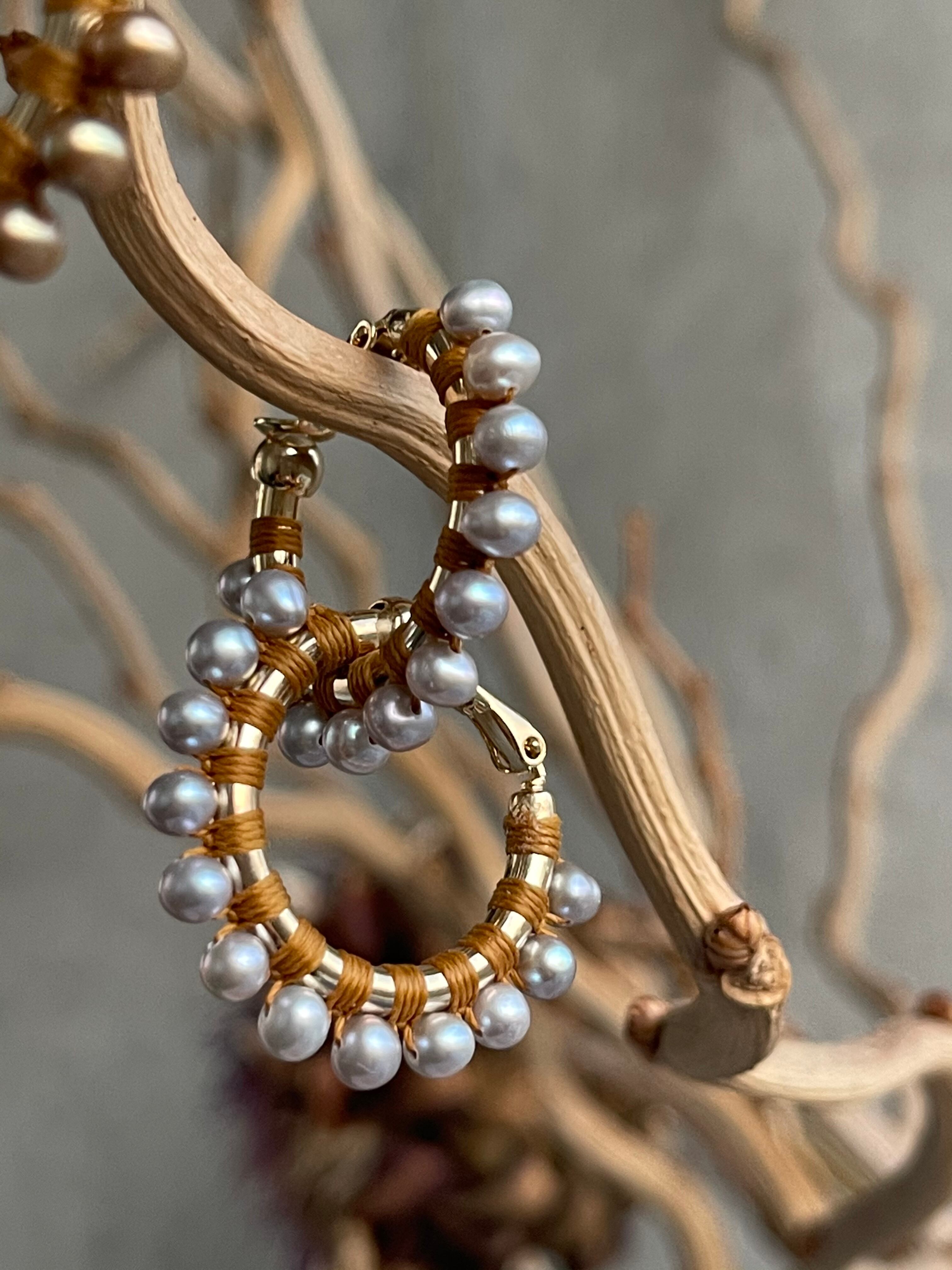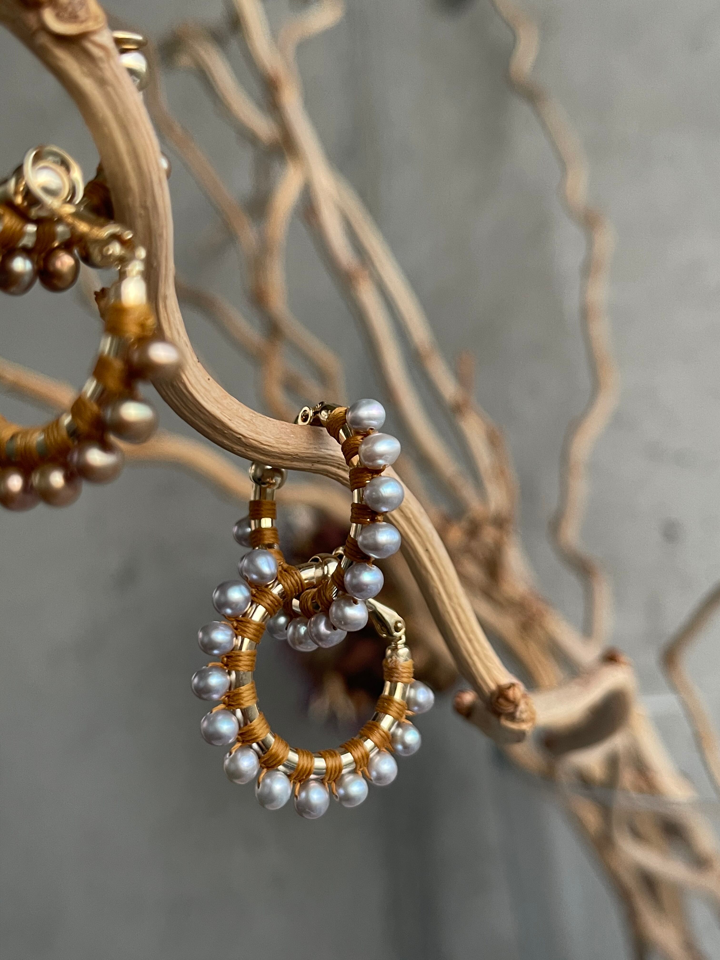 卒入学式シーズンや、普段使いに何かと合わせ易い大変美しい照りのあるパールを一粒一粒糸で丁寧にしっかり編みあげ、高級感がありどんなお洋服にも合うと皆様色違いでご購入されてます