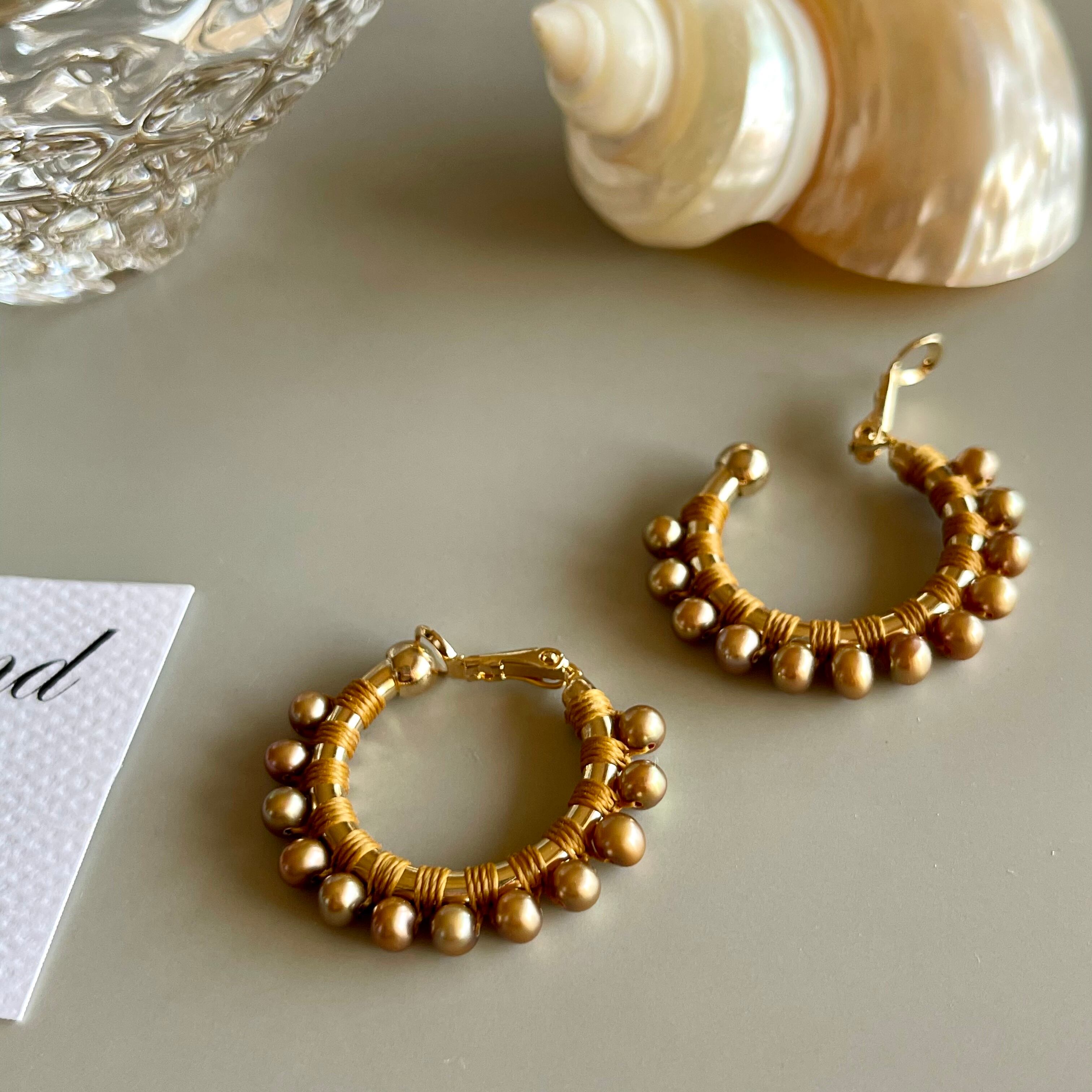 初のイヤリング‼️こちらのピアスは既に販売しておりますがイヤリングも有ればとのお声を頂き、今回定番のマストカラ〜3色でお作りしました☝️