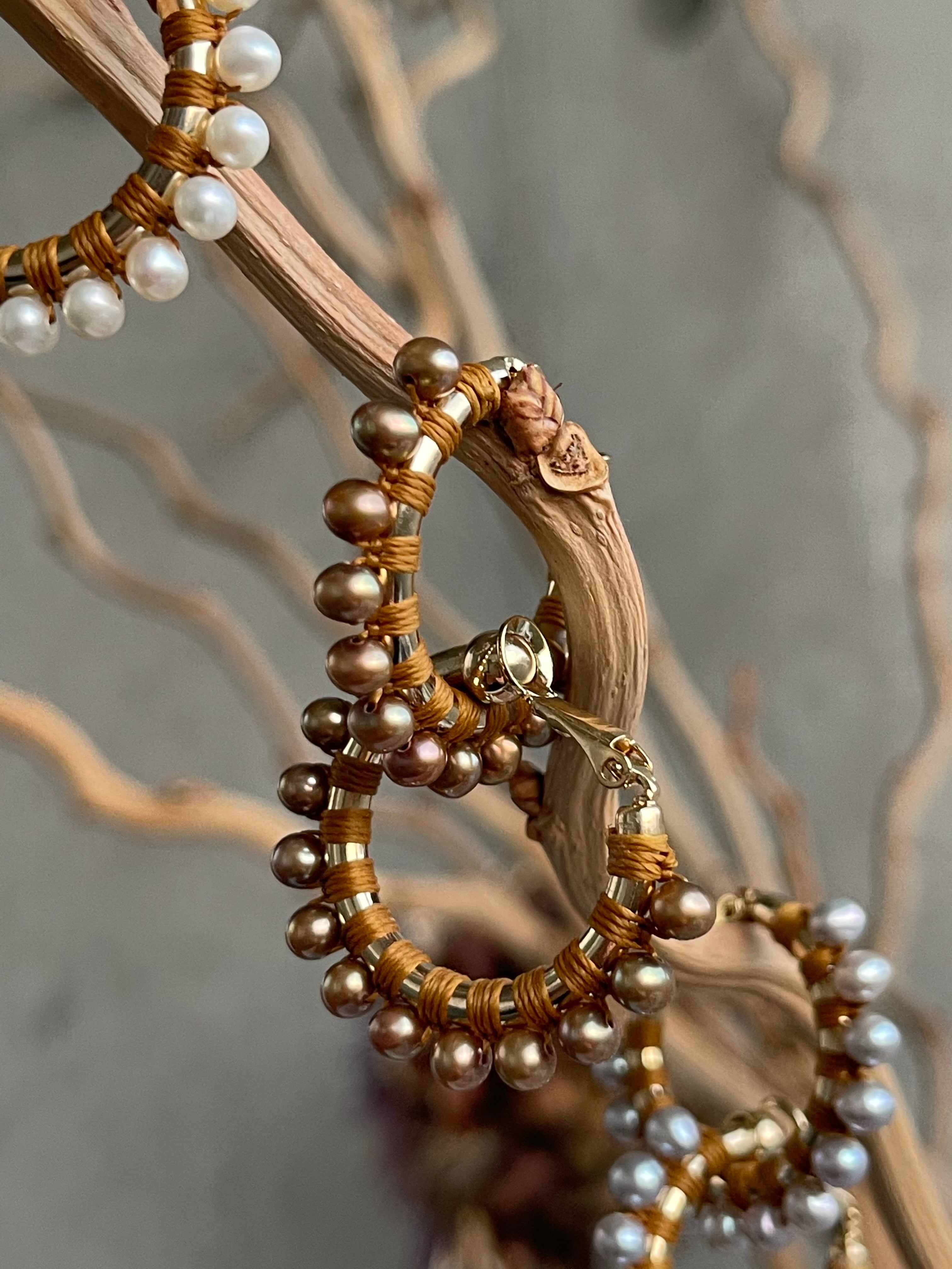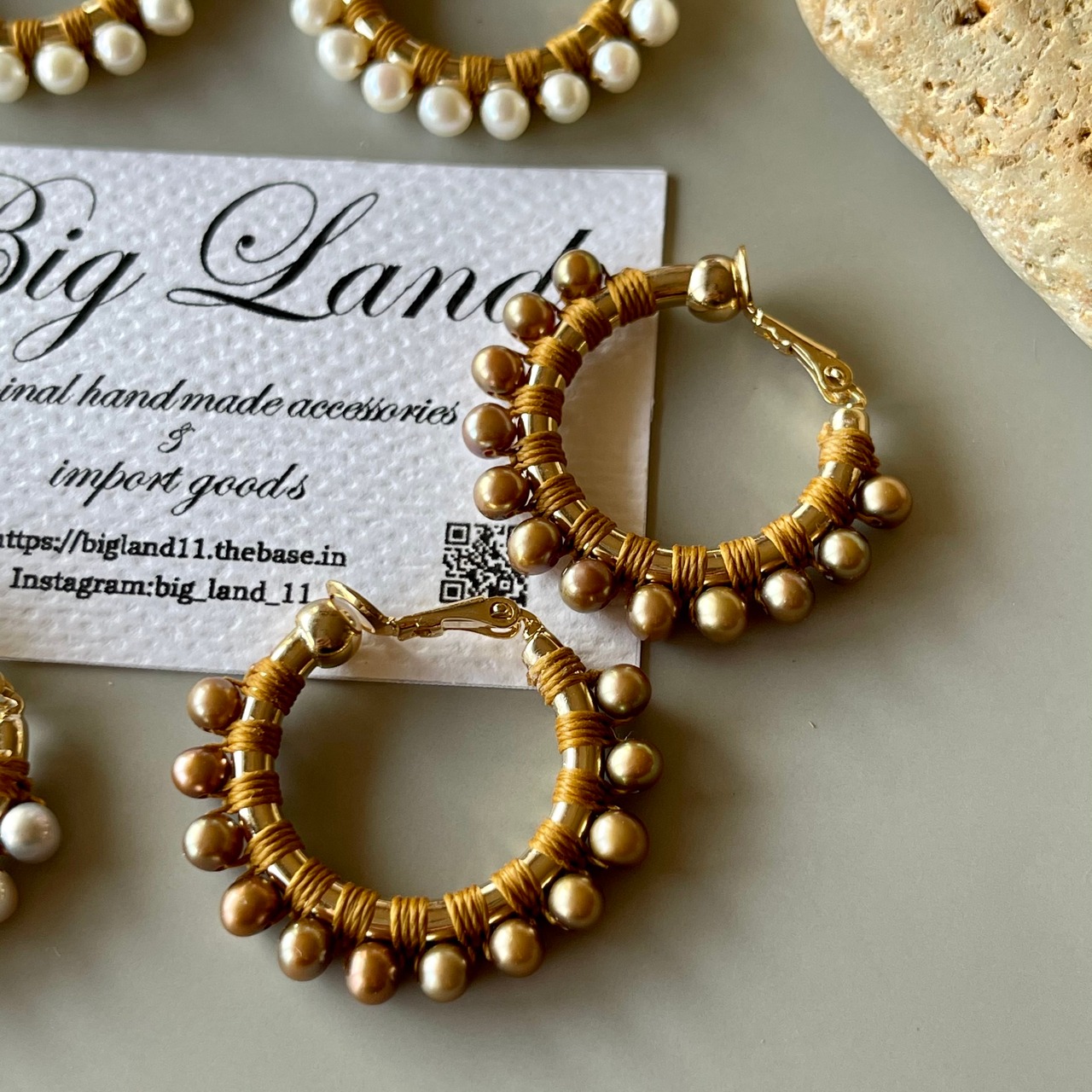 卒入学式シーズンや、普段使いに何かと合わせ易い大変美しい照りのあるパールを一粒一粒糸で丁寧にしっかり編みあげ、高級感がありどんなお洋服にも合うと皆様色違いでご購入されてます