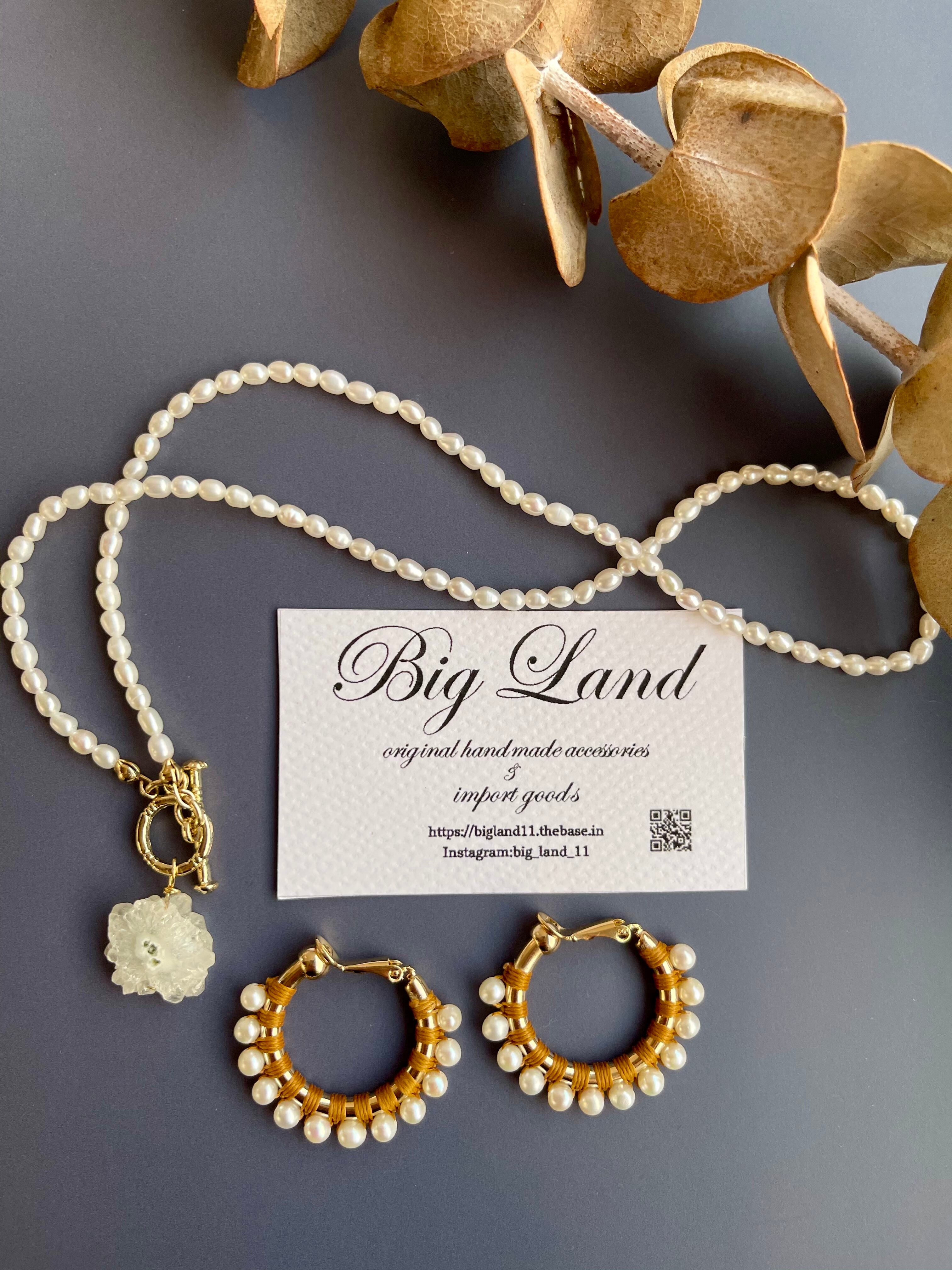 卒入学式シーズンや、普段使いに何かと合わせ易い大変美しい照りのあるパールを一粒一粒糸で丁寧にしっかり編みあげ、高級感がありどんなお洋服にも合うと皆様色違いでご購入されてます