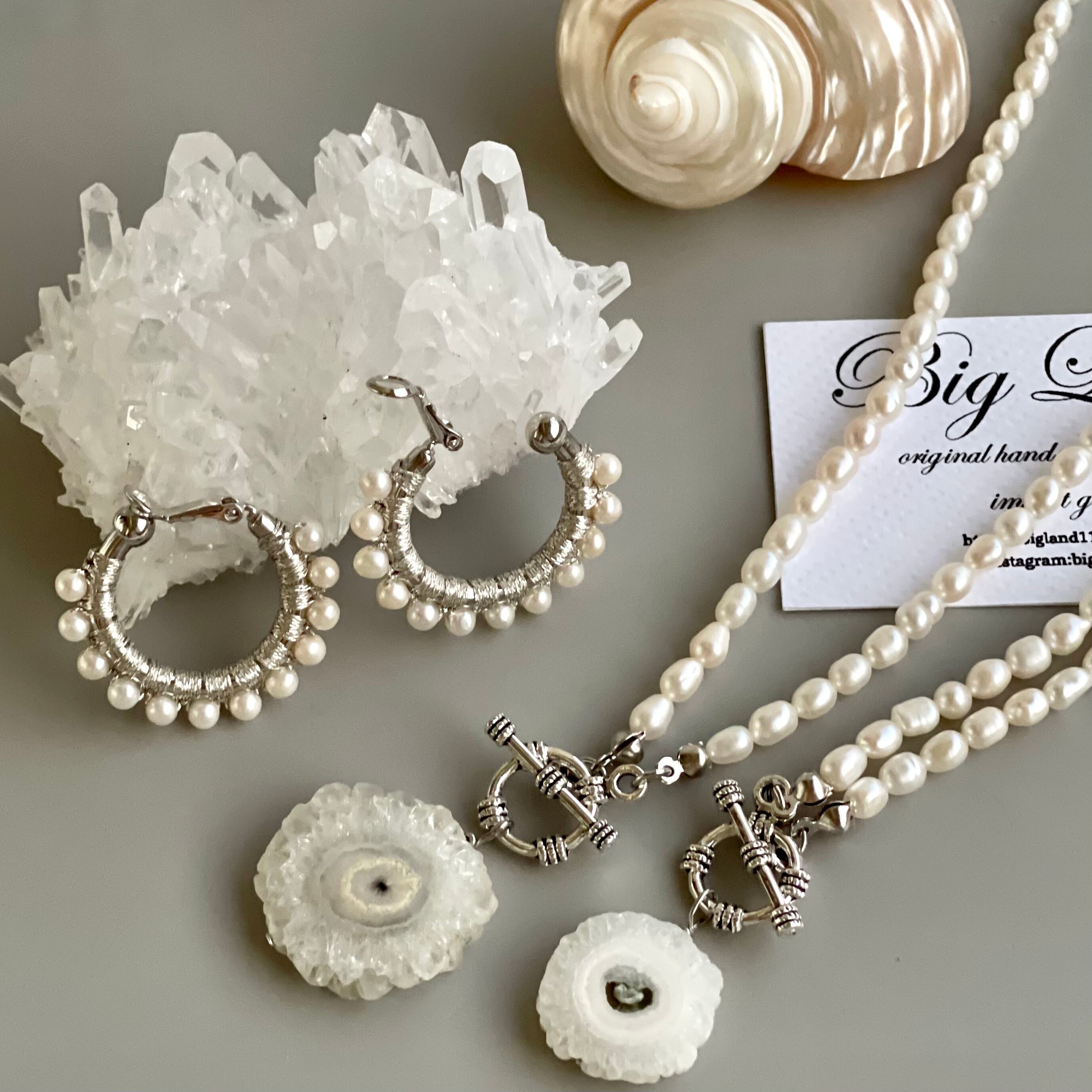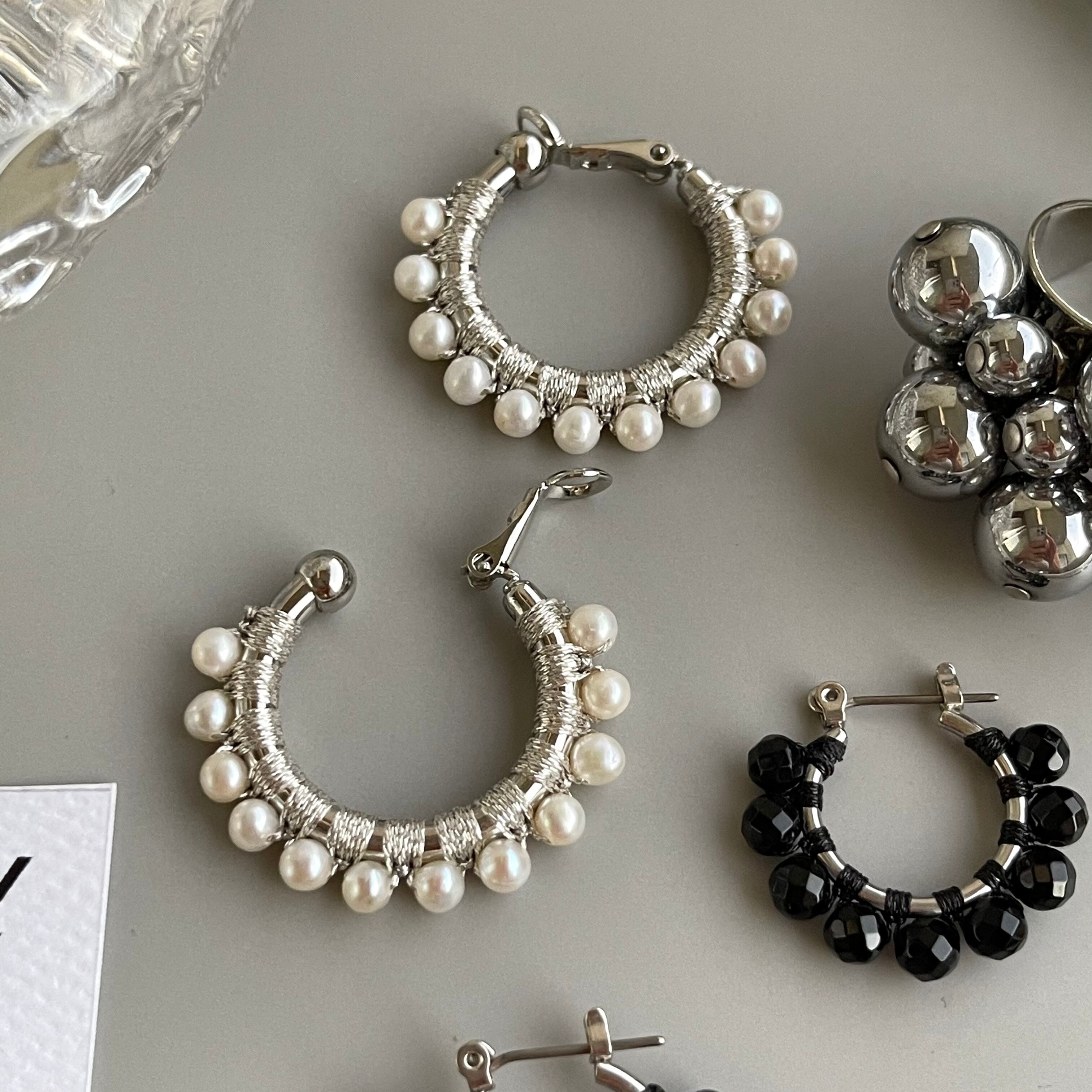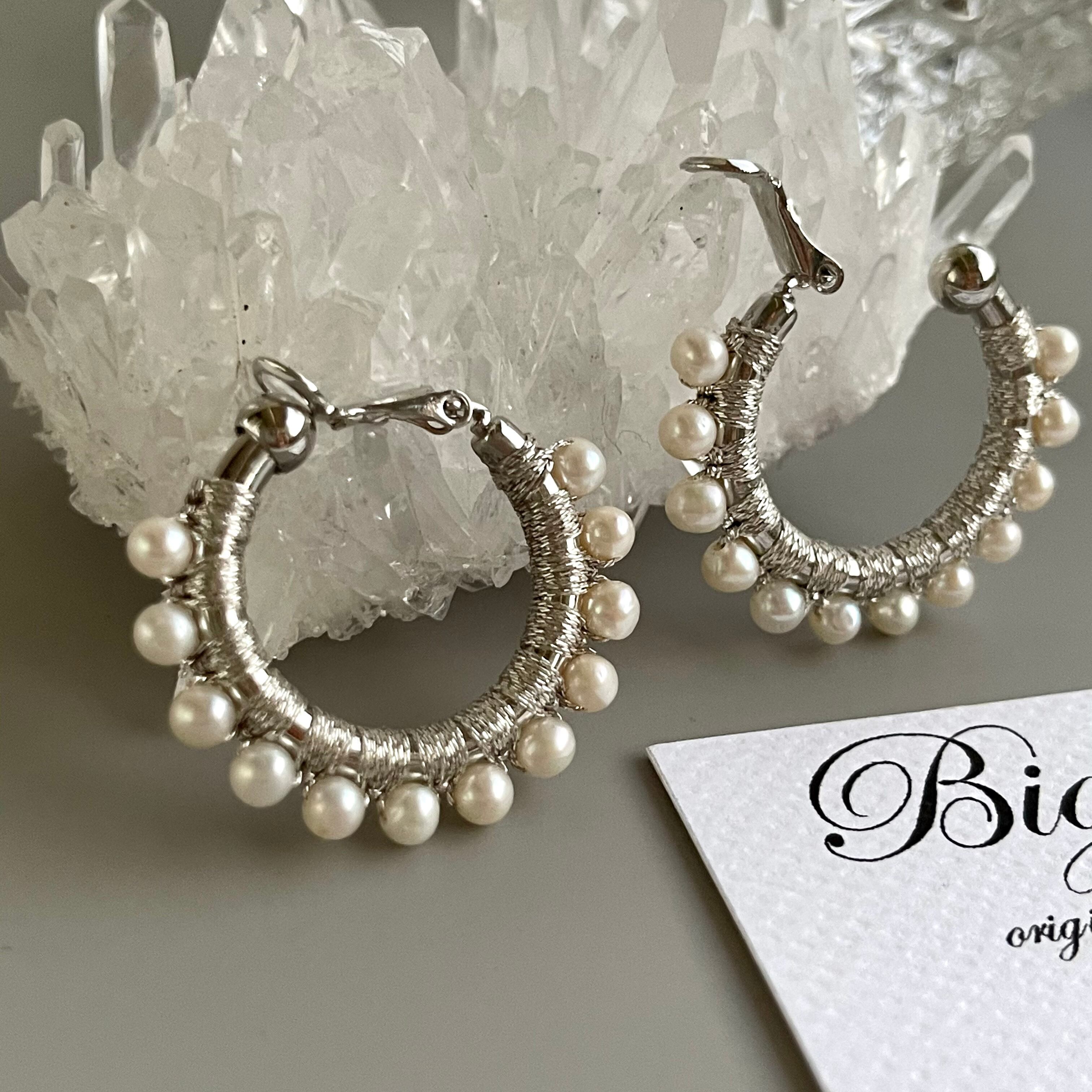 初のイヤリング‼️こちらのピアスは既に販売しておりますがイヤリングも有ればとのお声を頂き、今回シルバー色とホワイトパールで夏らしく☝️