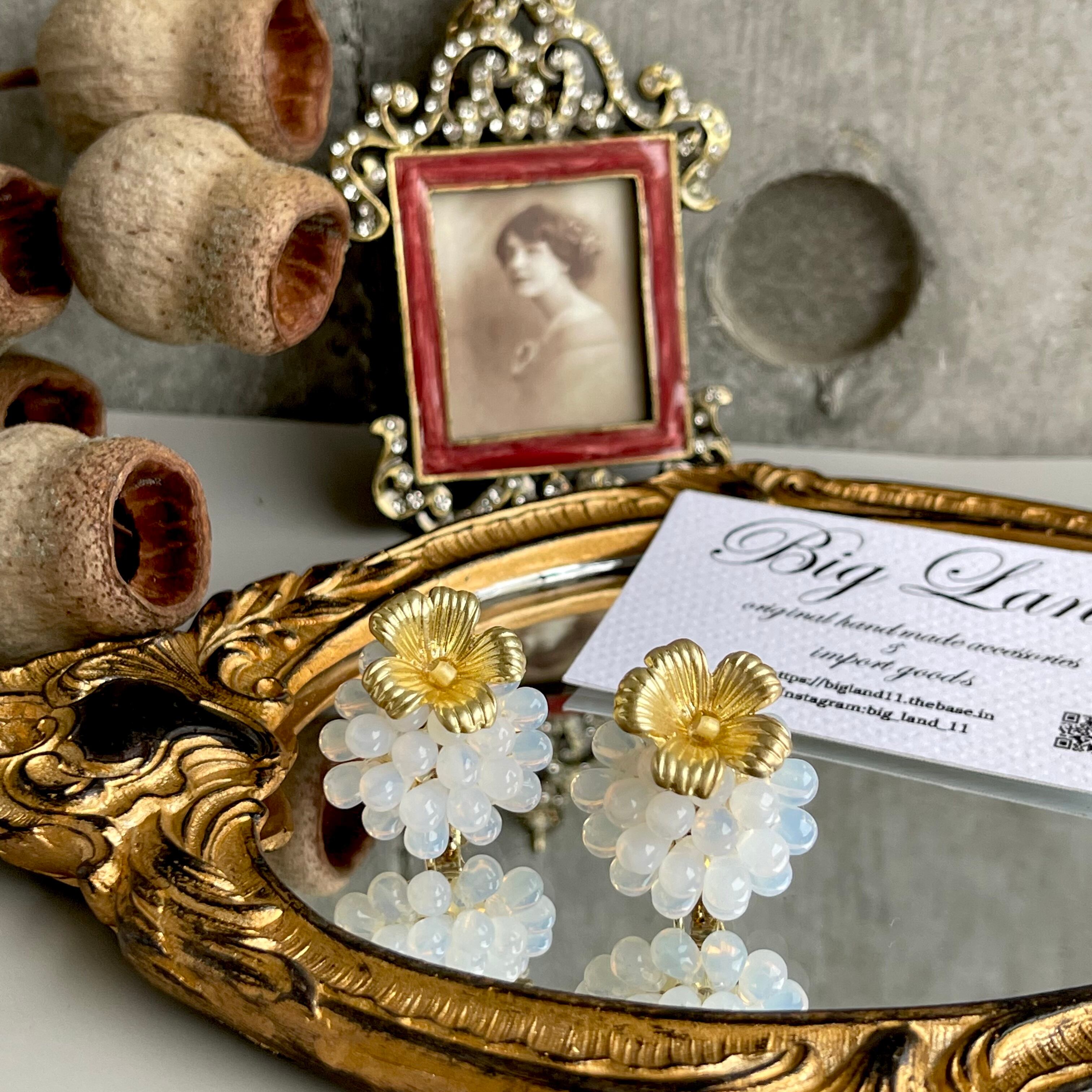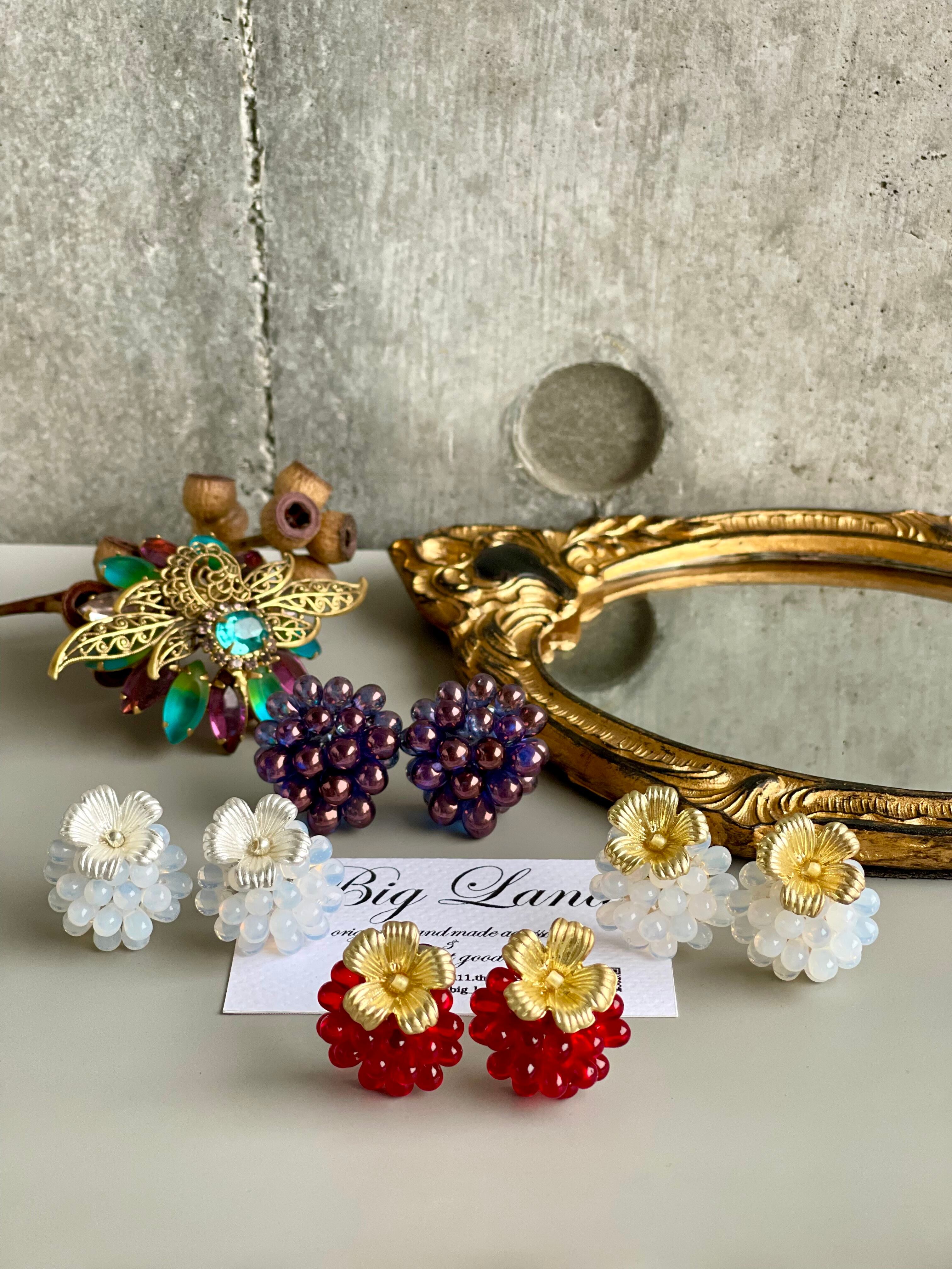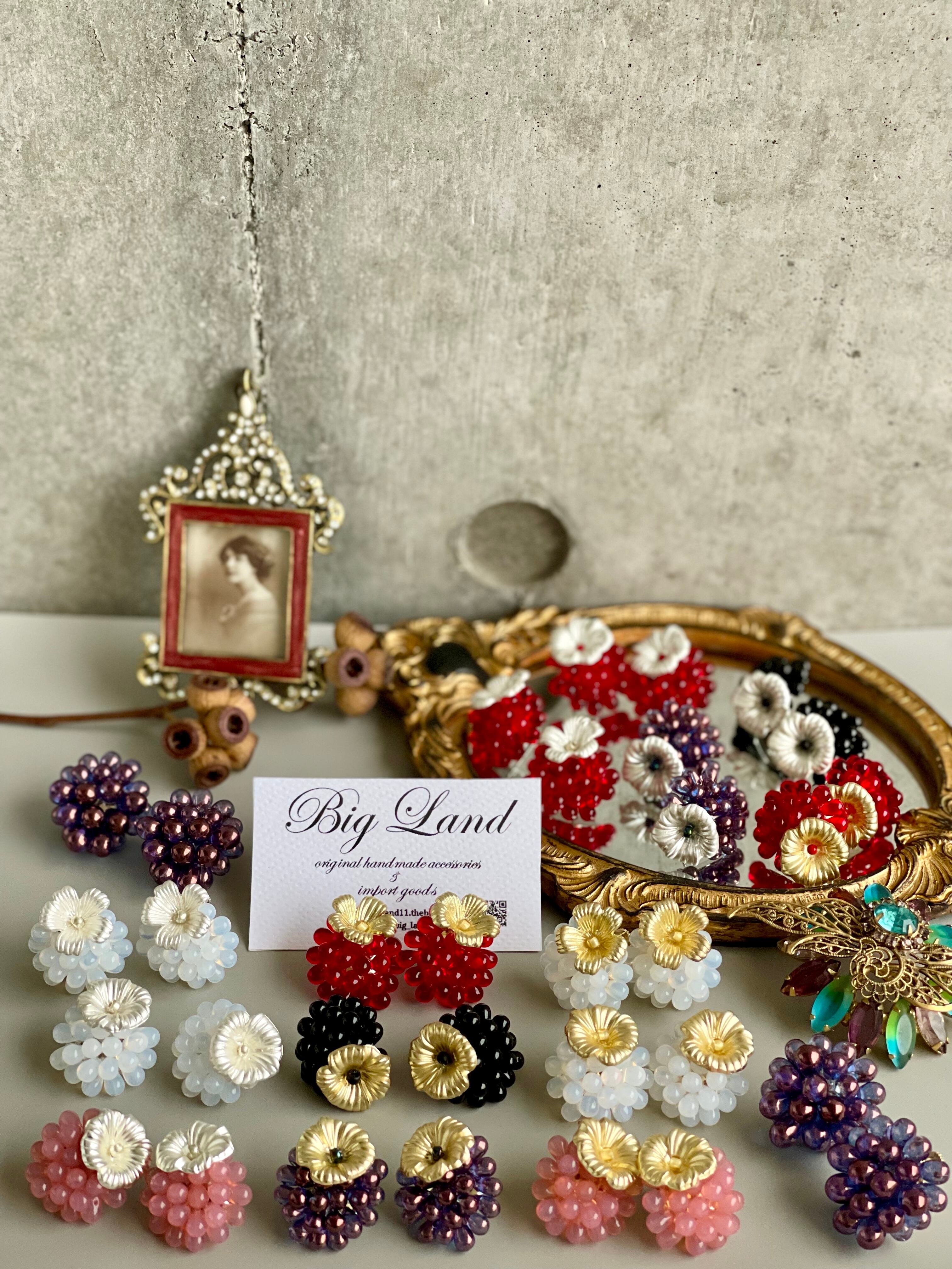 マットなお花とチェコガラスの組み合わせが堪らないキュートさ ‼️