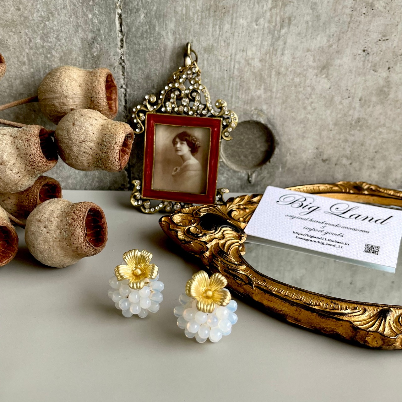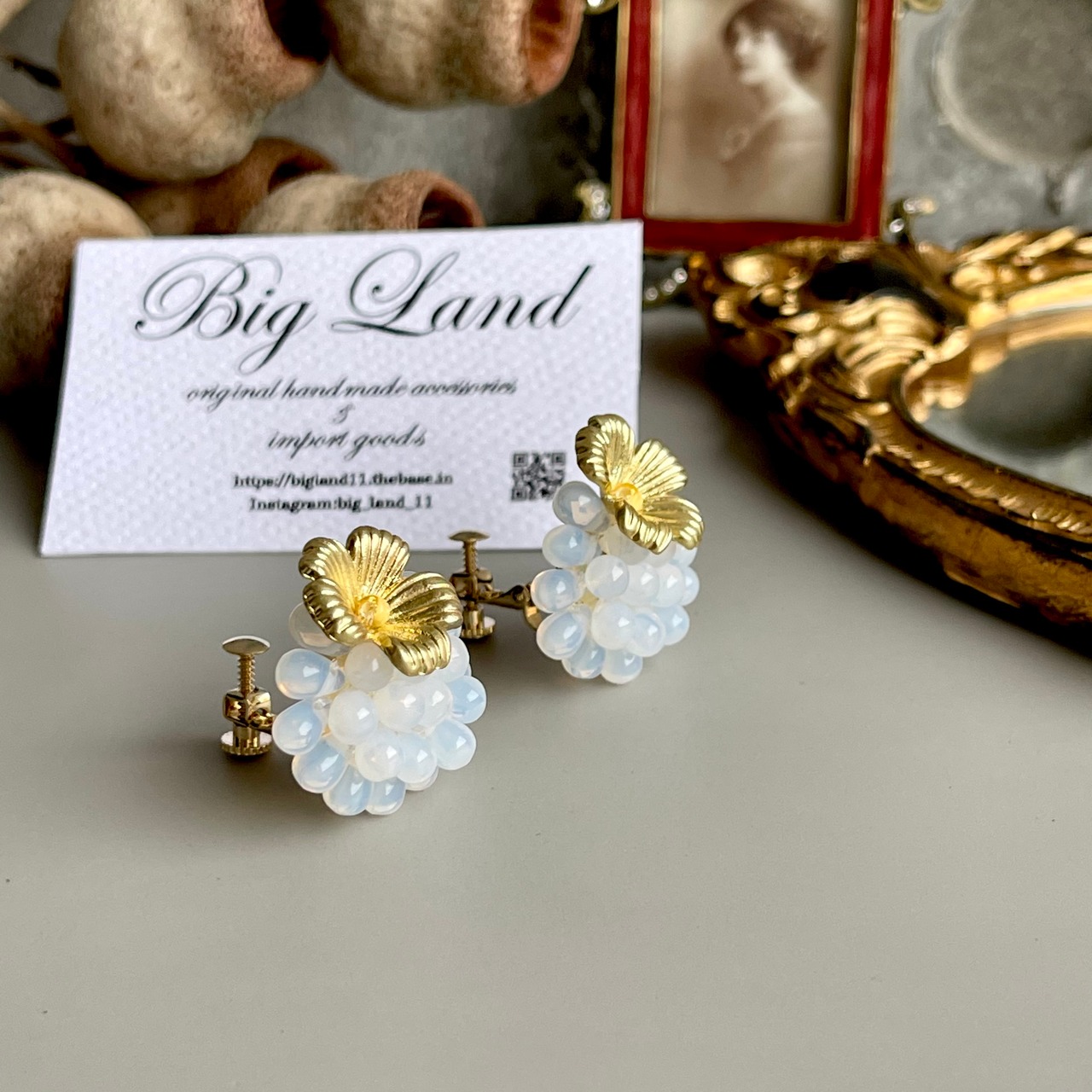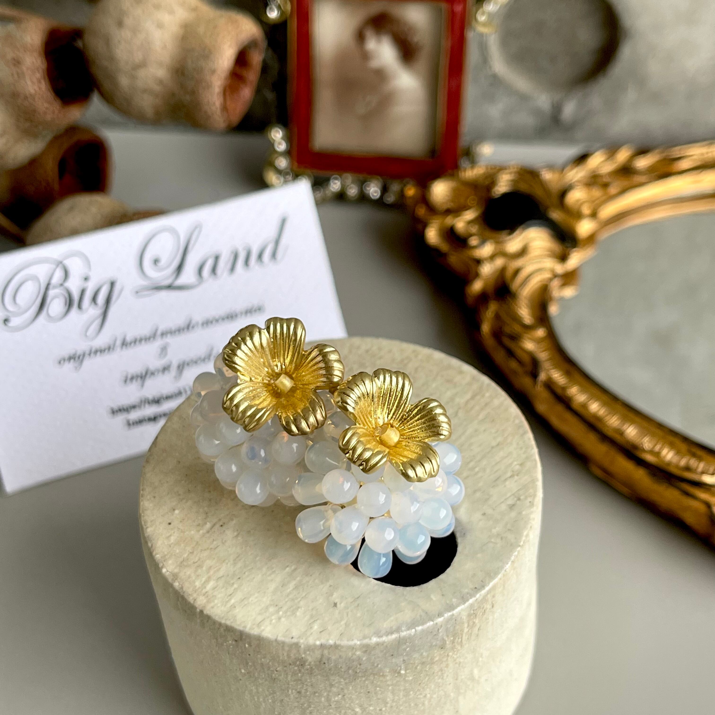 マットなお花とチェコガラスの組み合わせが堪らないキュートさ ‼️