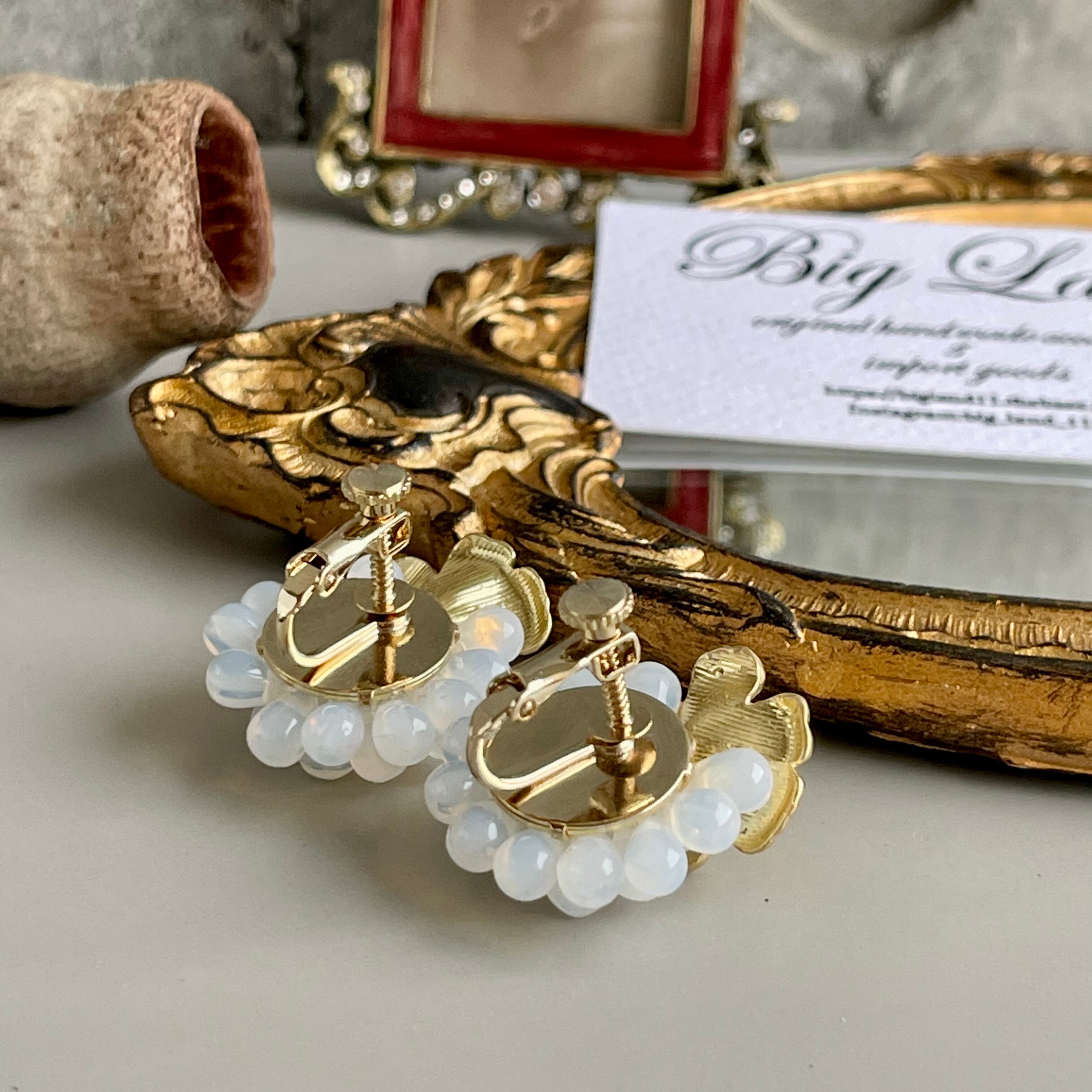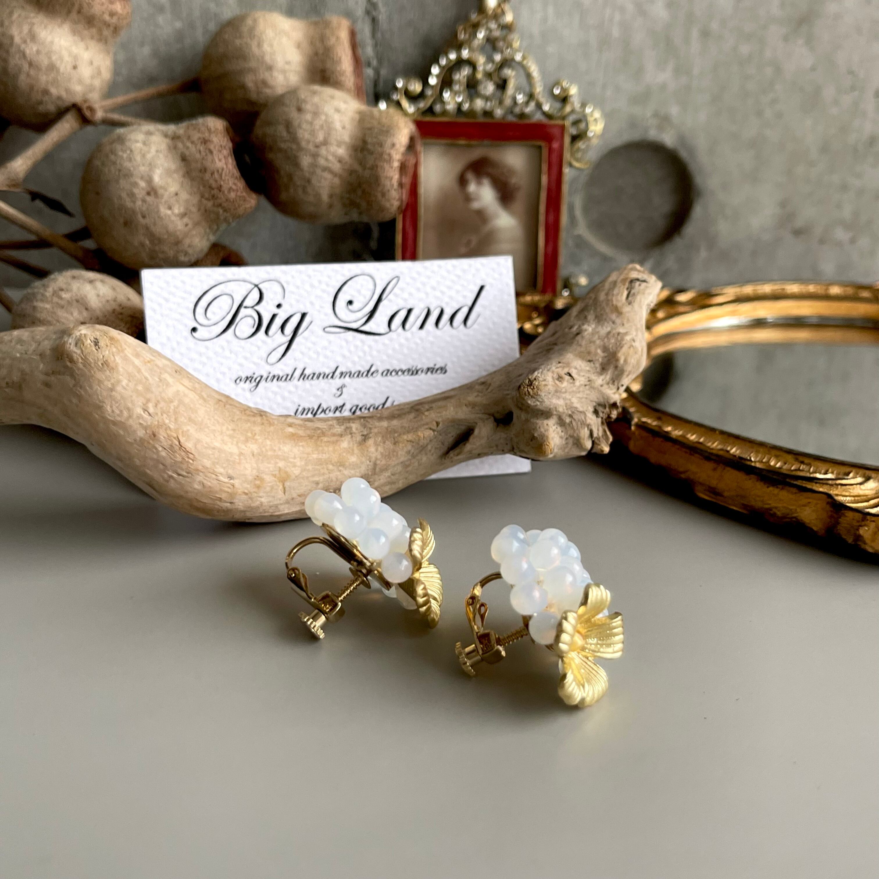 お花イヤリング 白&ゴールド