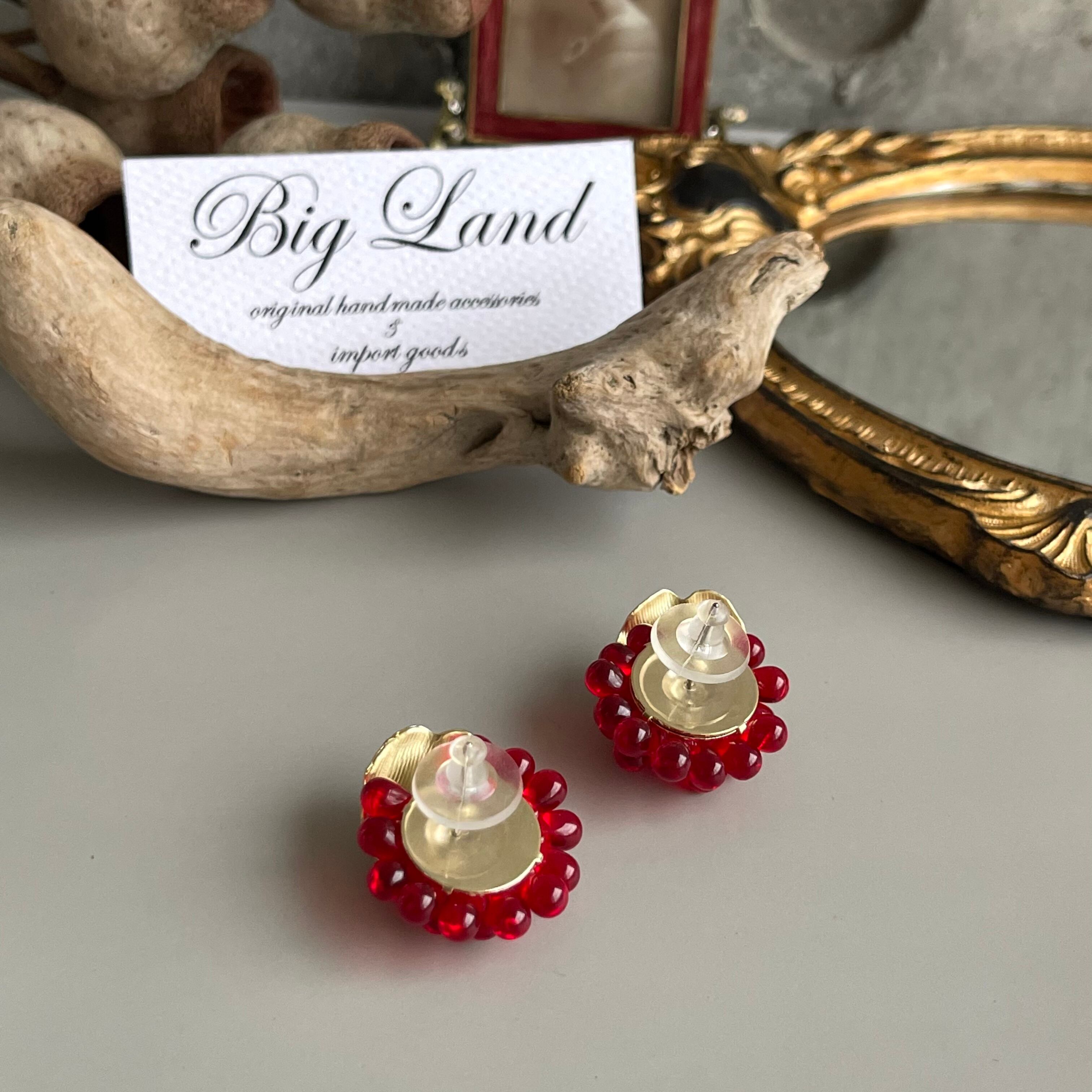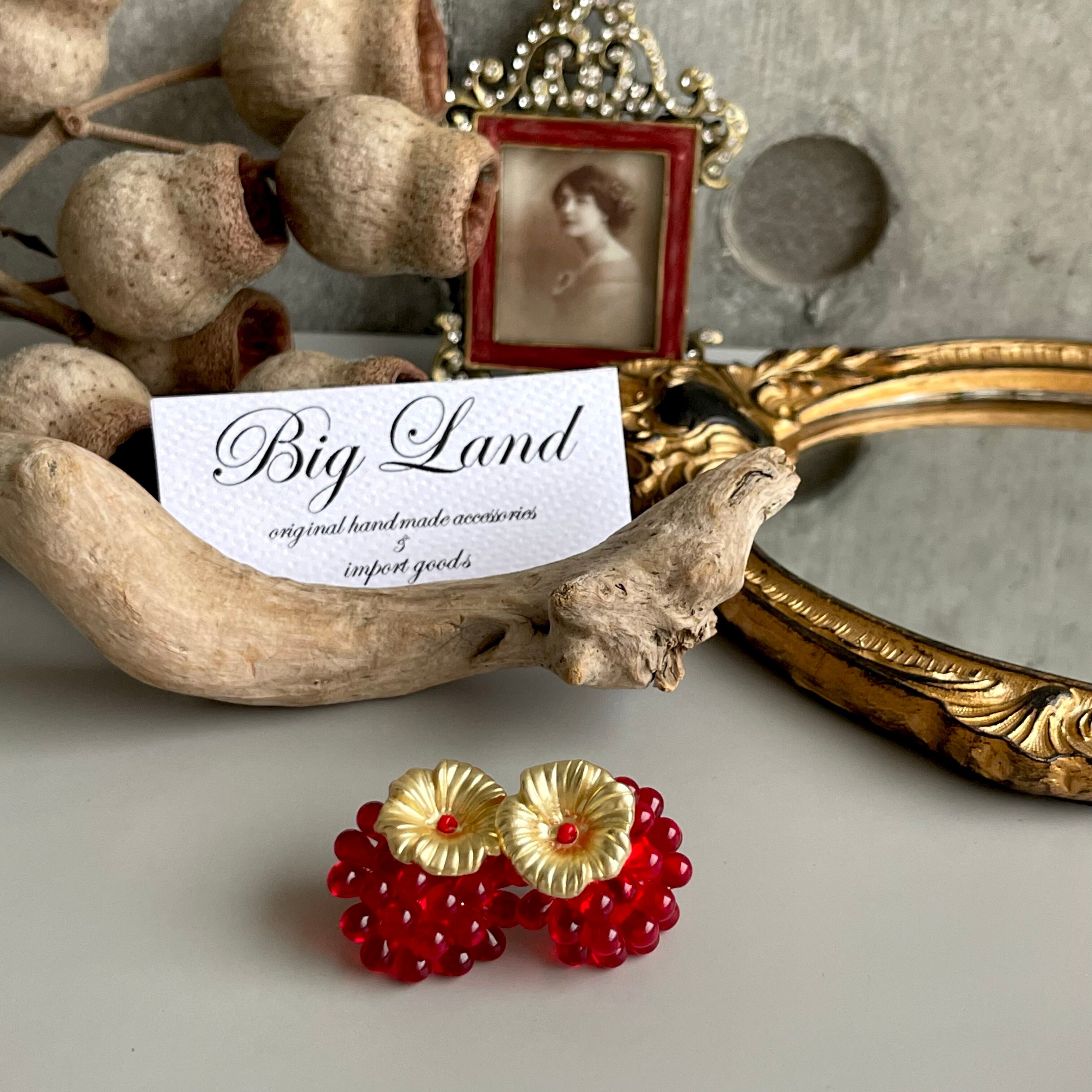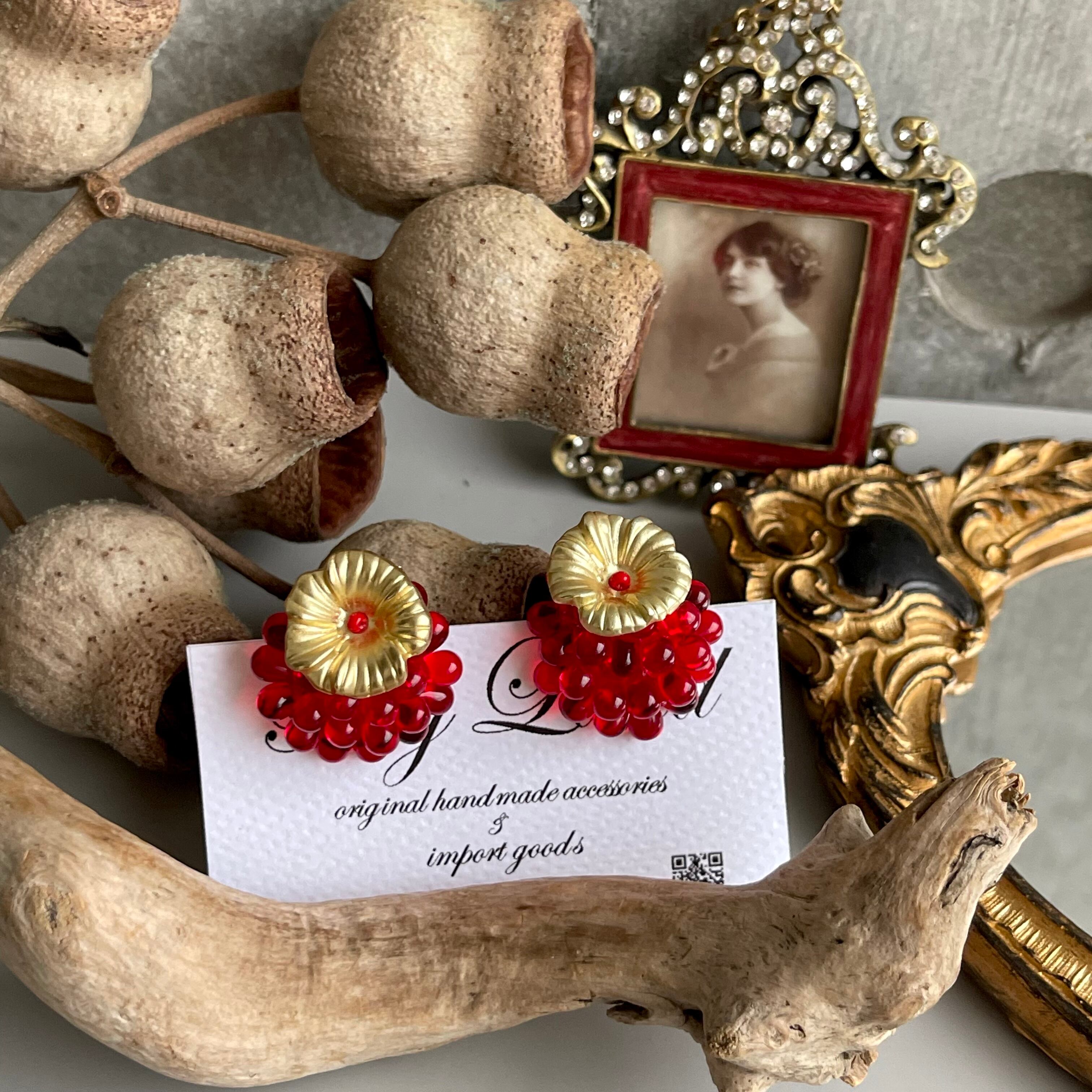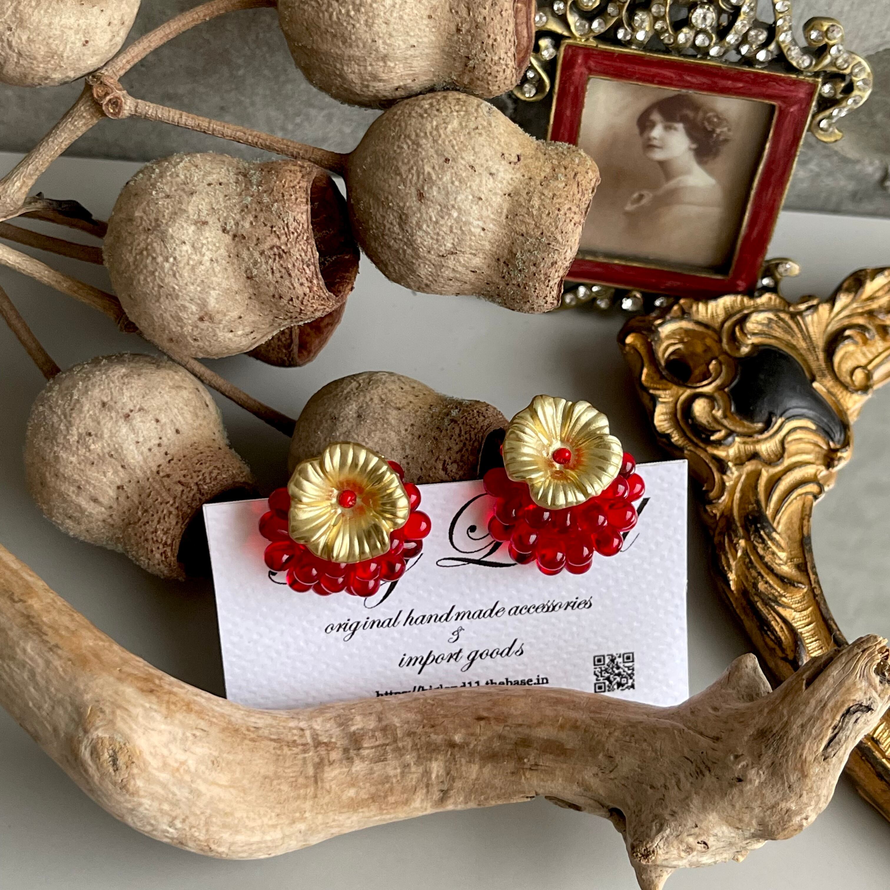 お花ピアス 赤&ゴールド