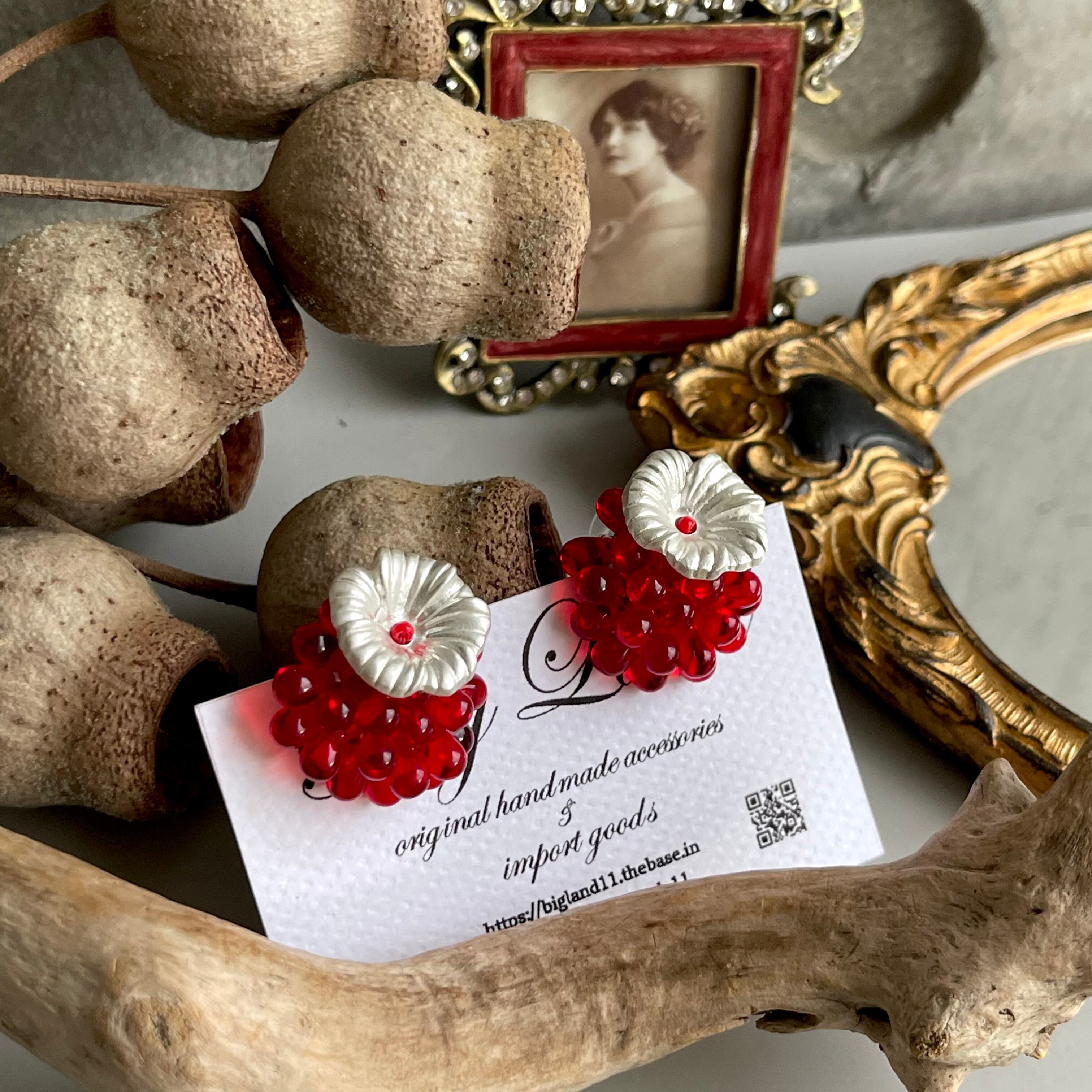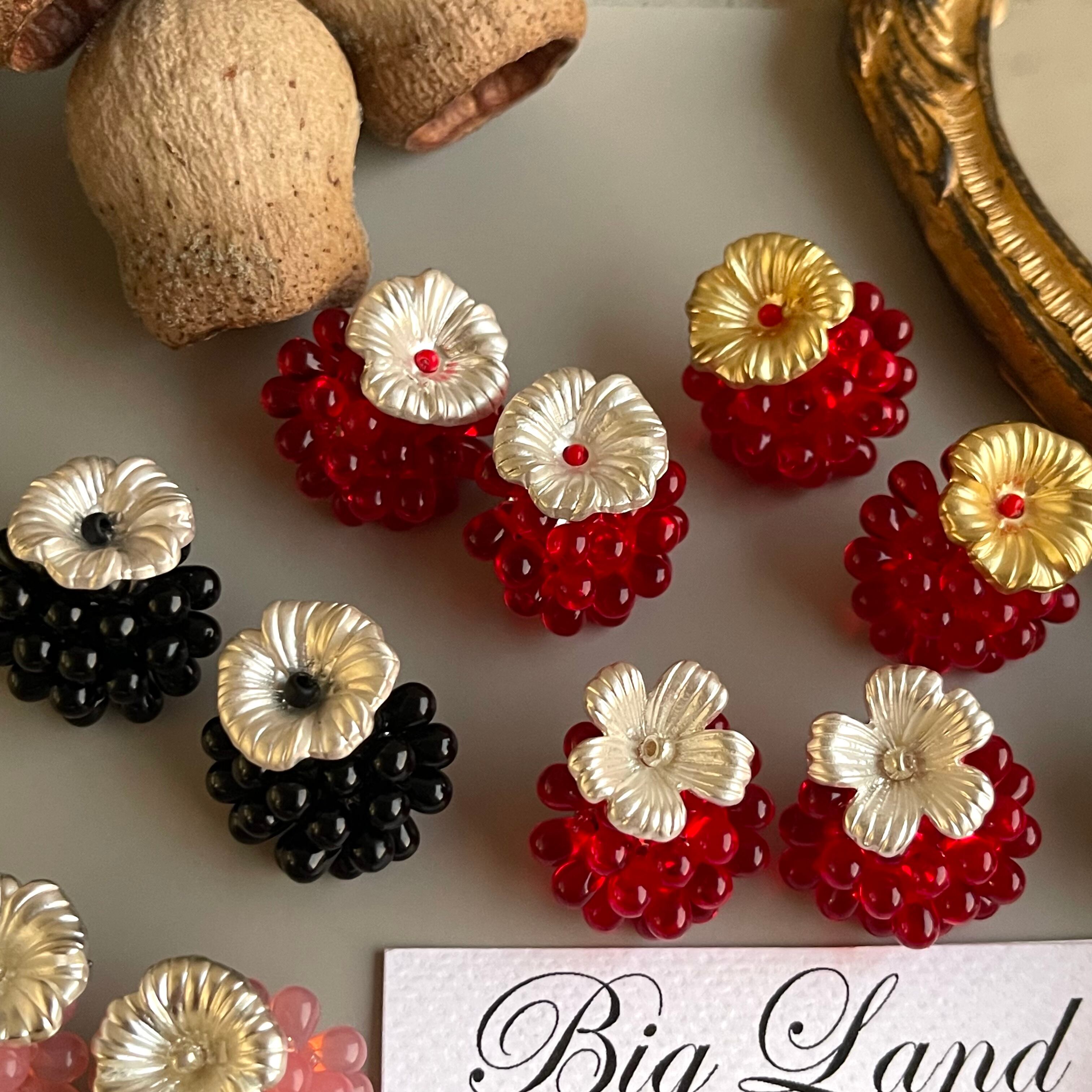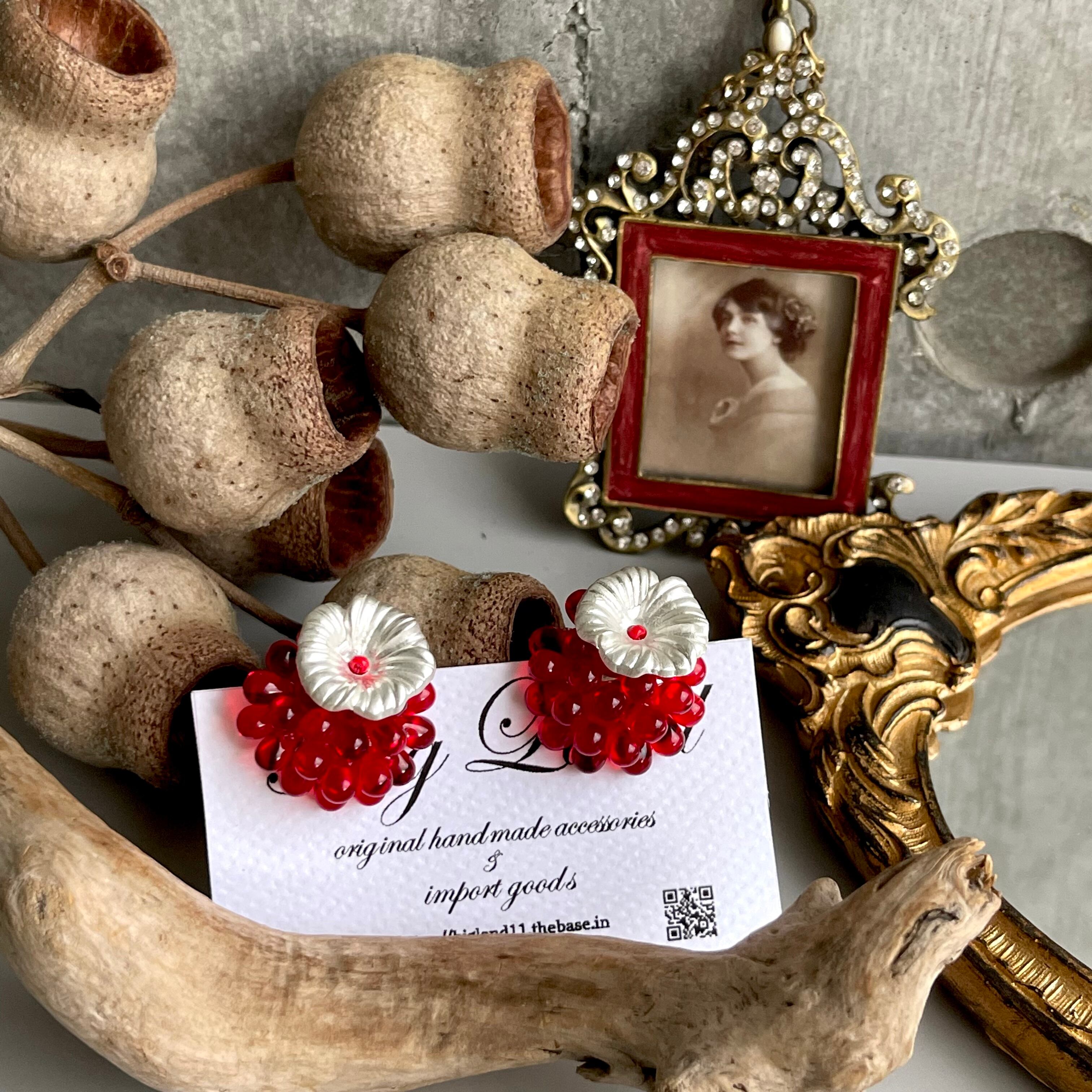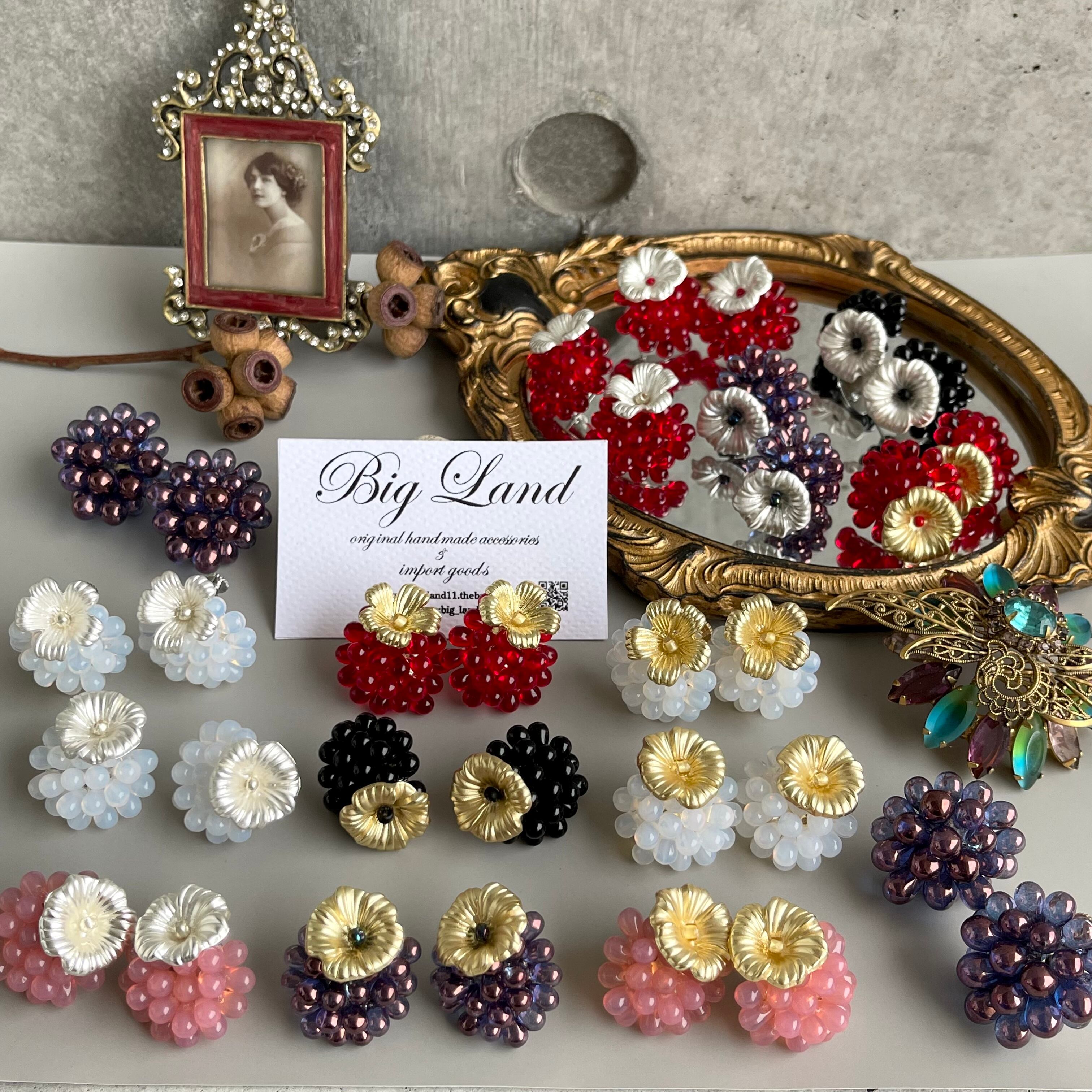 マットなお花とチェコガラスの組み合わせが堪らないキュートさ ‼️