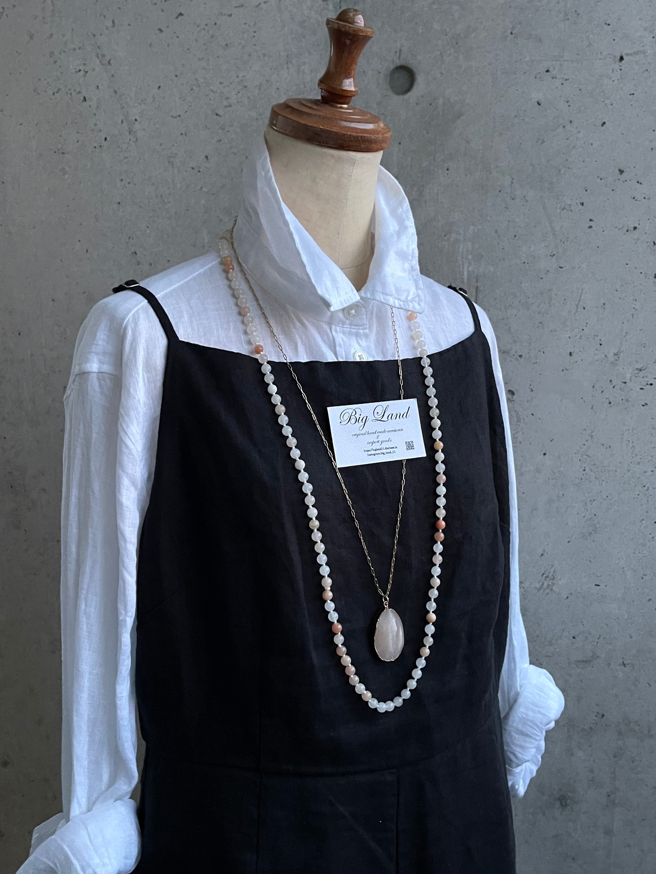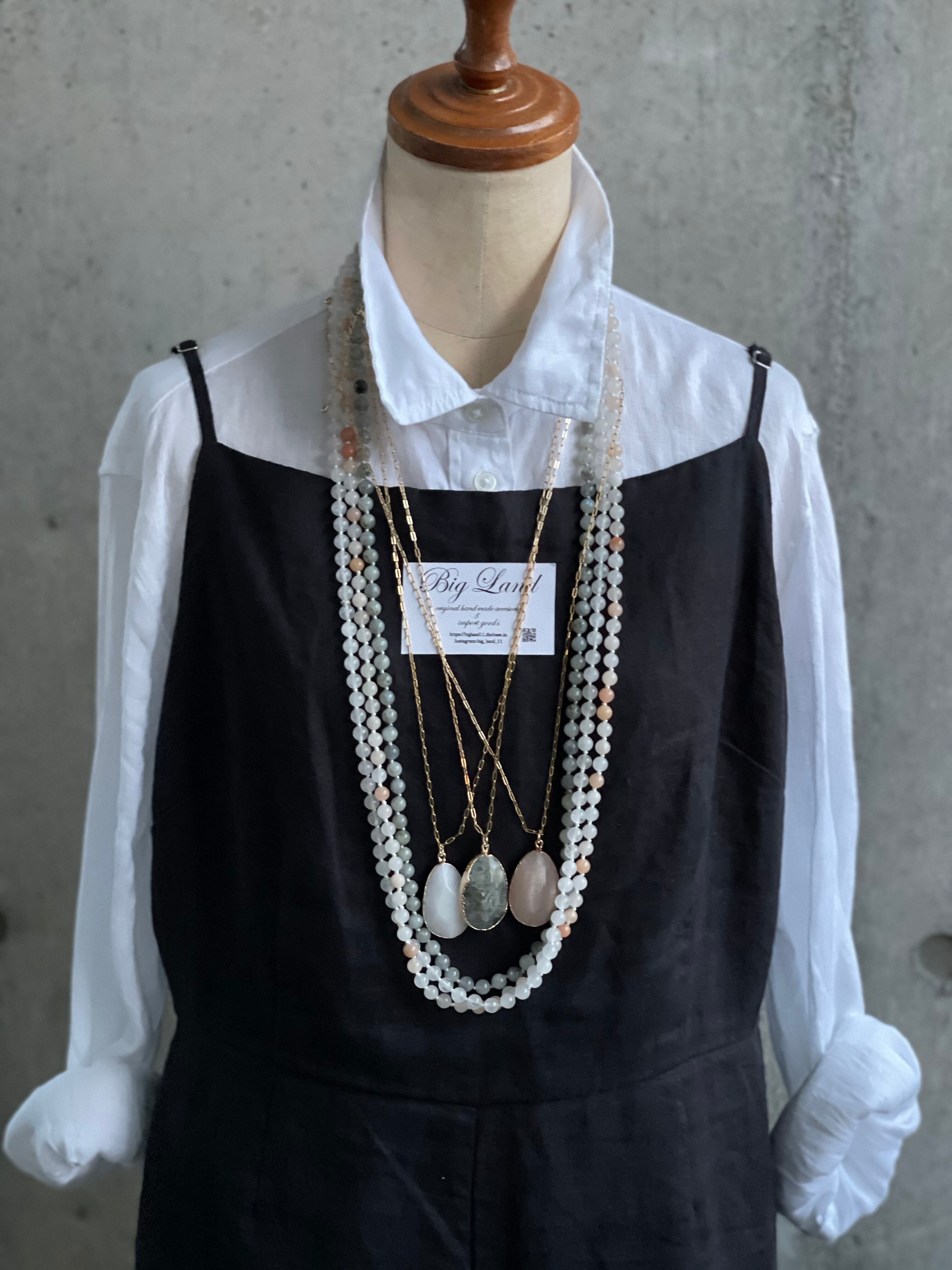 天然石を一粒ごとに結んだ手の込んだロングネックレスはシンプルに1本使いは勿論、重ねづけするとガラッと雰囲気が変わりアクセサリー上級者のようなこなれ感がでます✨