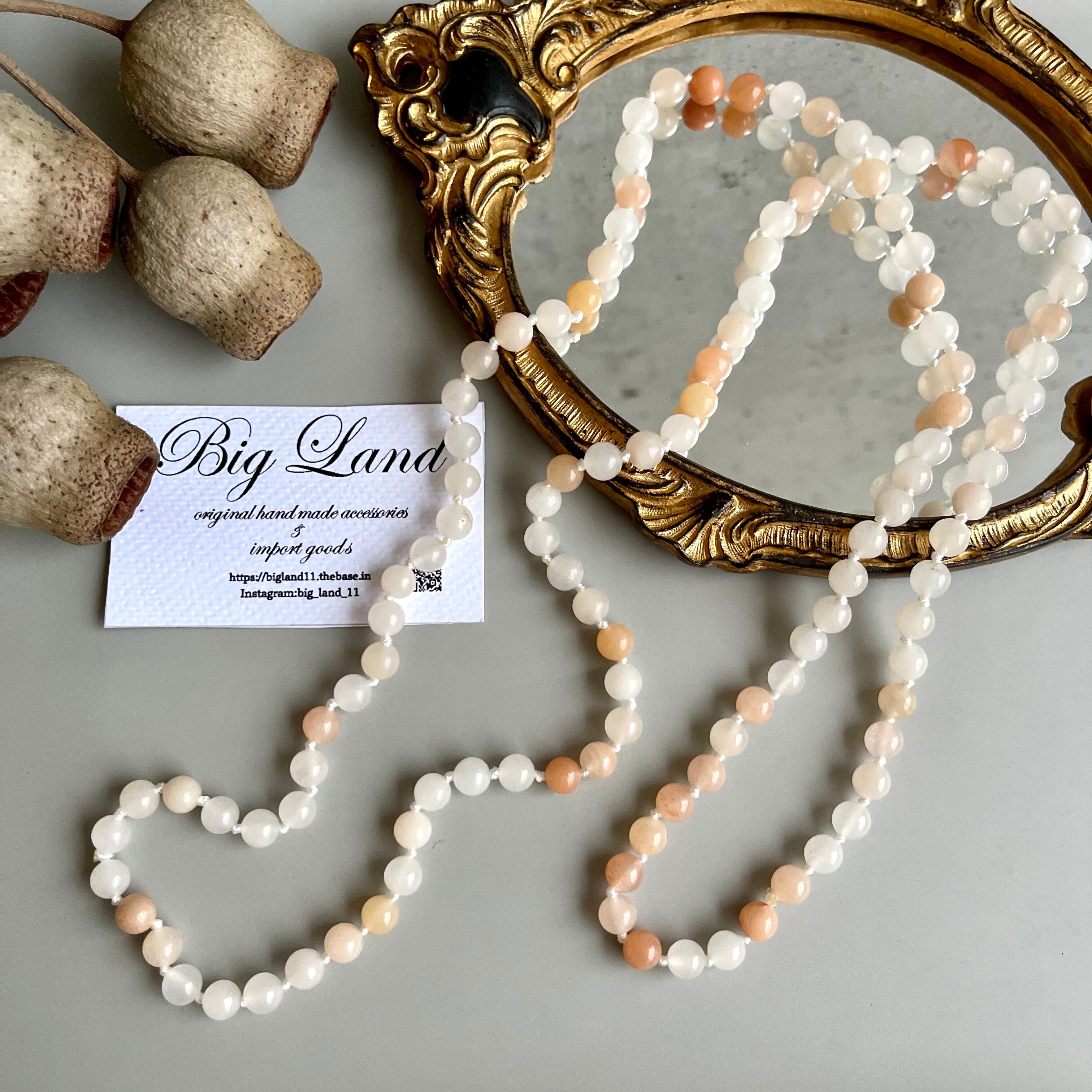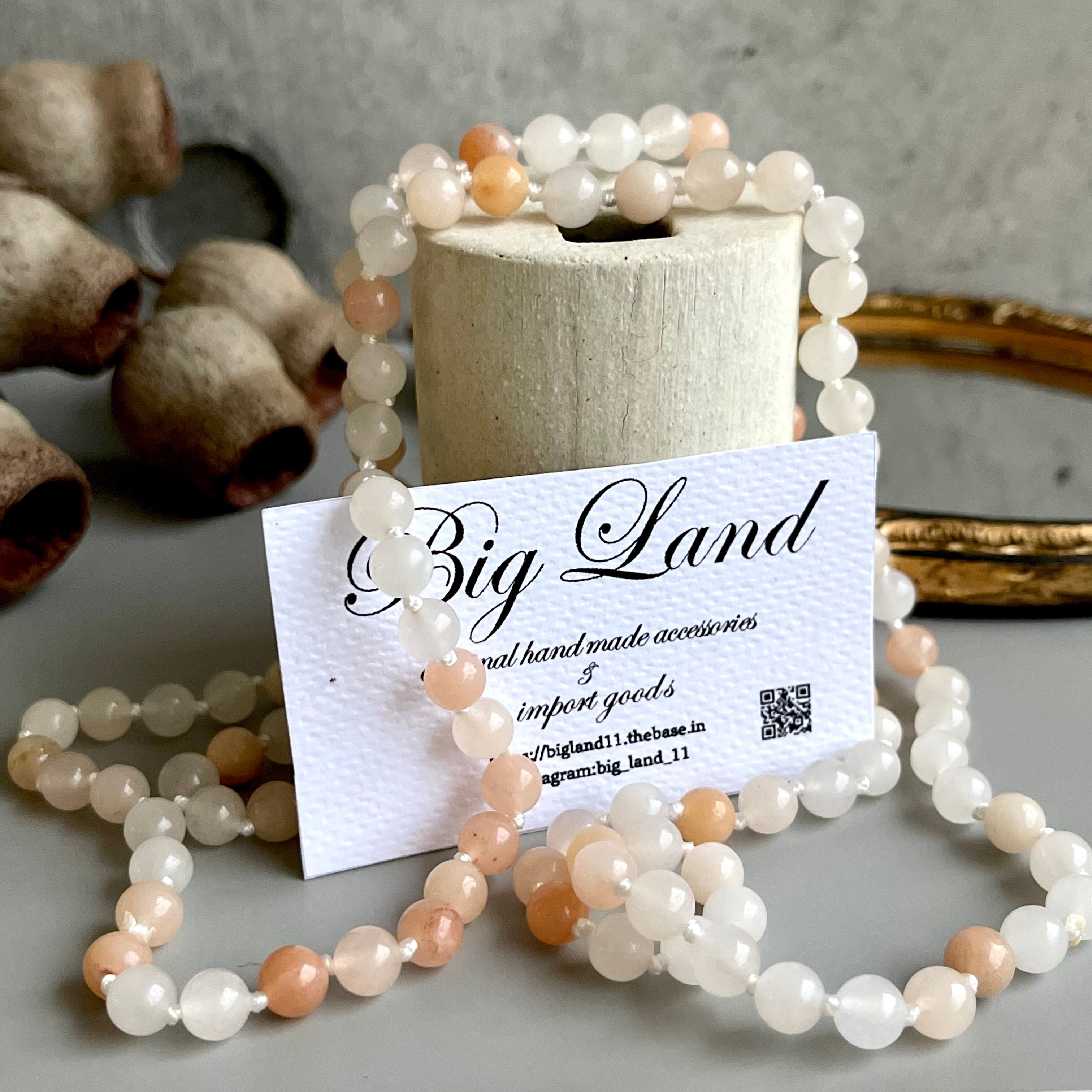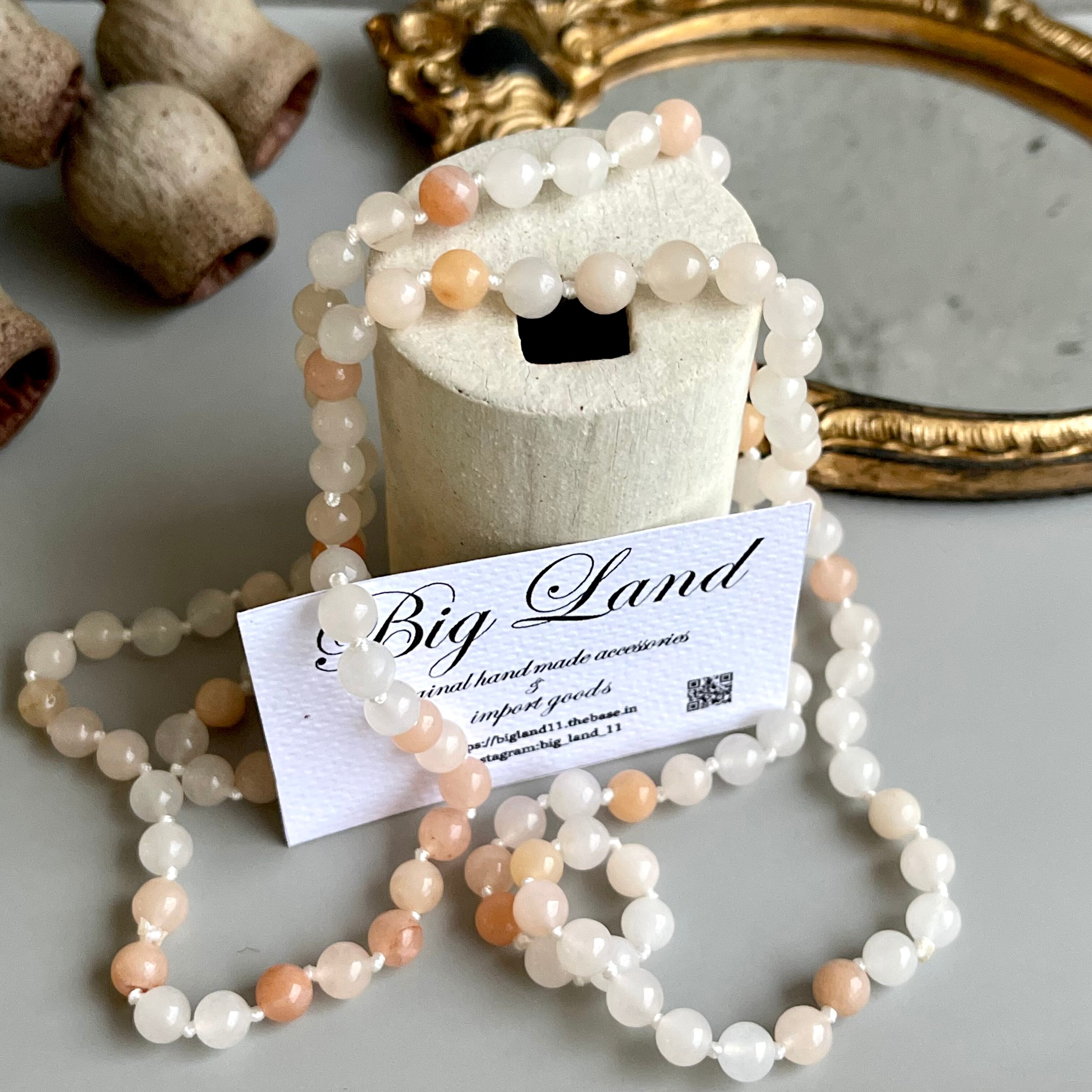 少し小粒の乳白色&ベビーピンクジェードネックレス✨