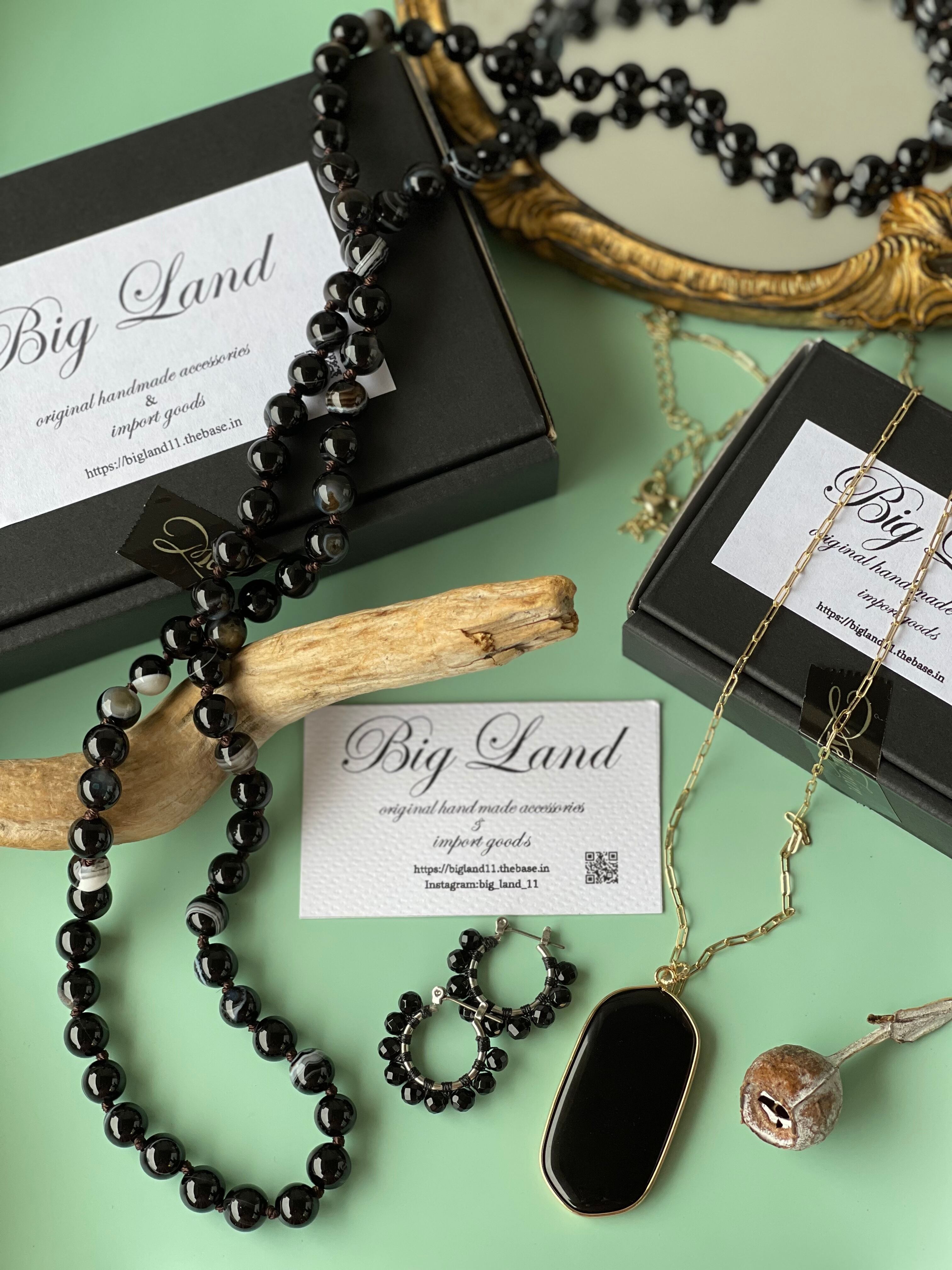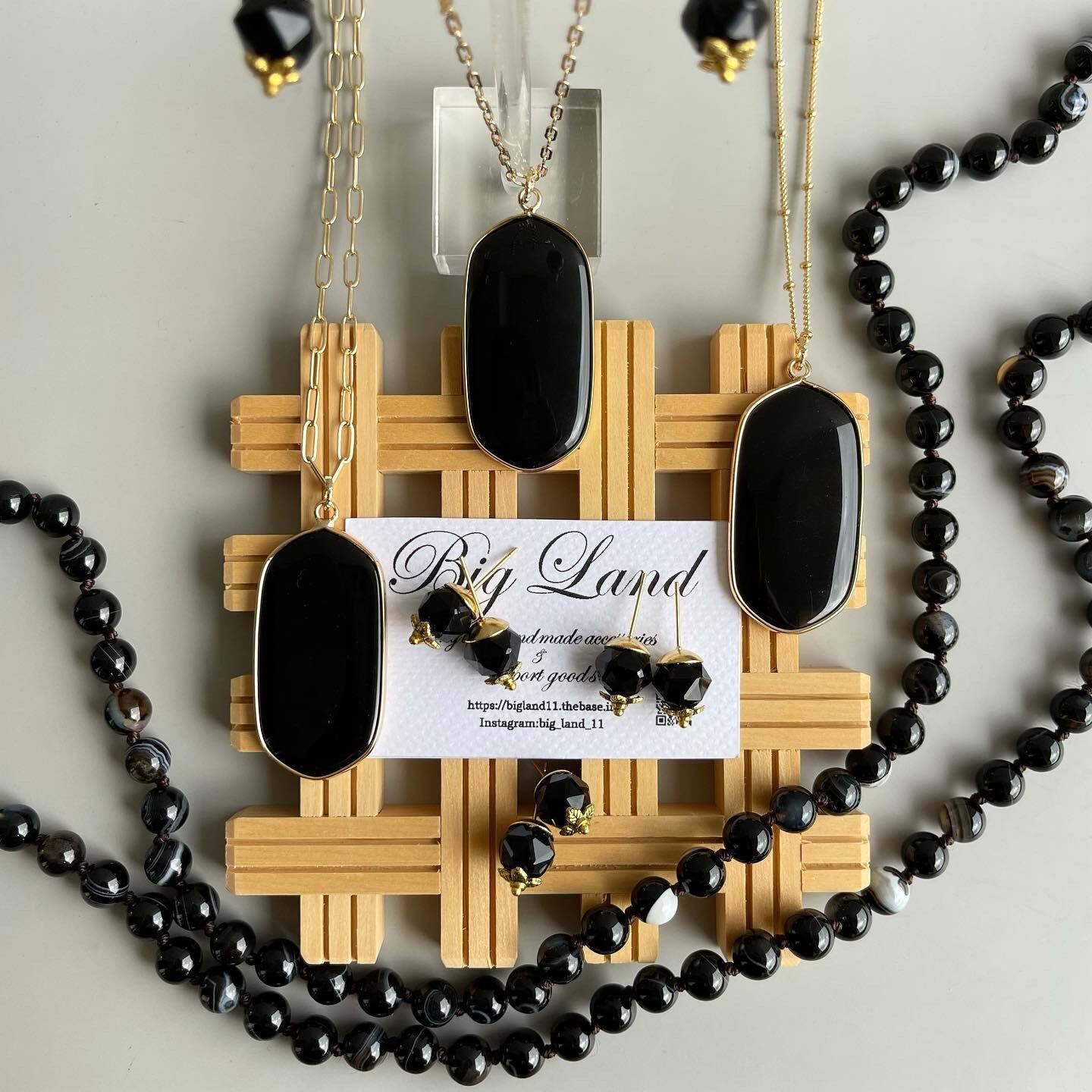 艶々で上品な大人ブラックが美しいアゲートネックレス✨