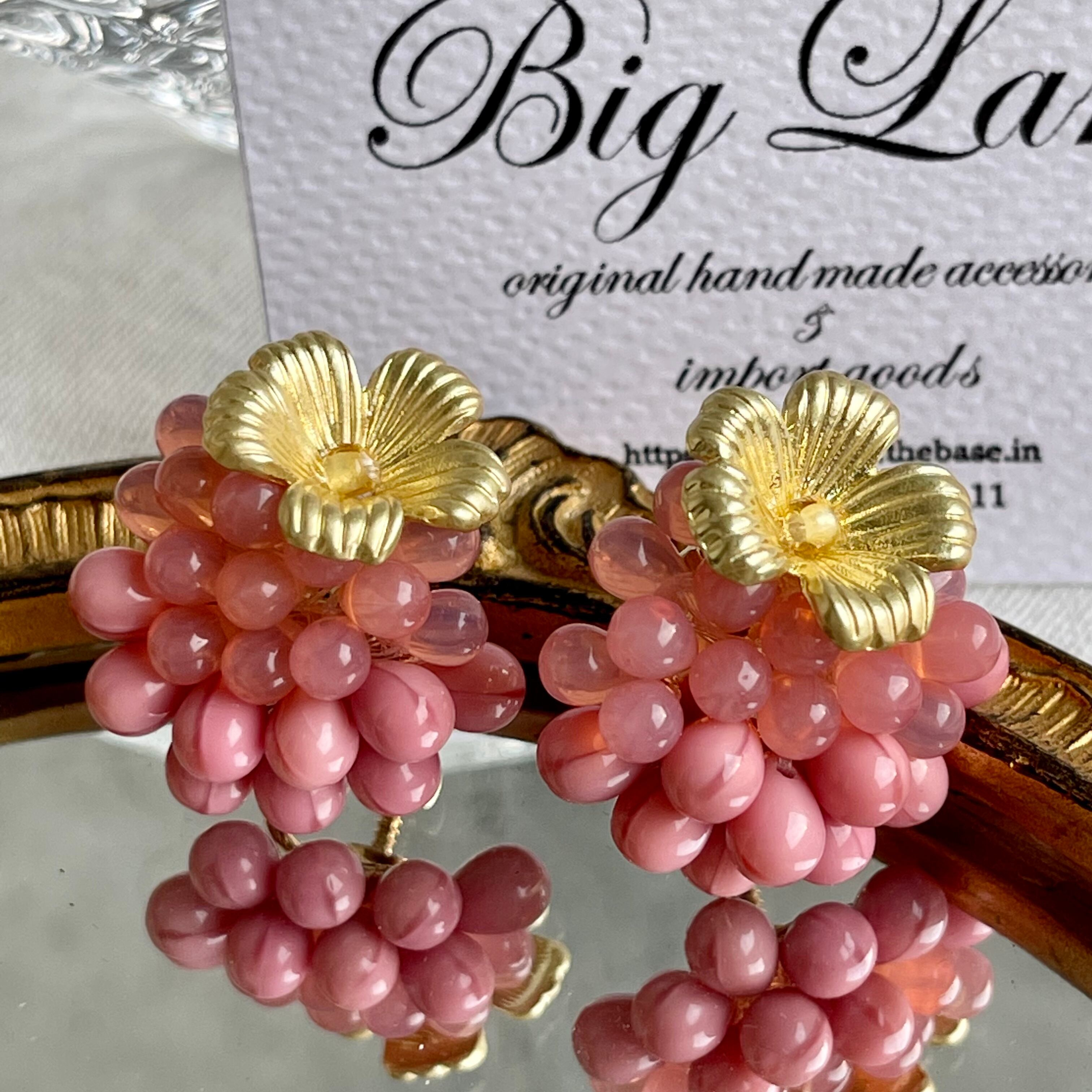 サイズ、色違いのピンクチェコガラスをmixに組み合わせたアレンジデザイン‼︎
