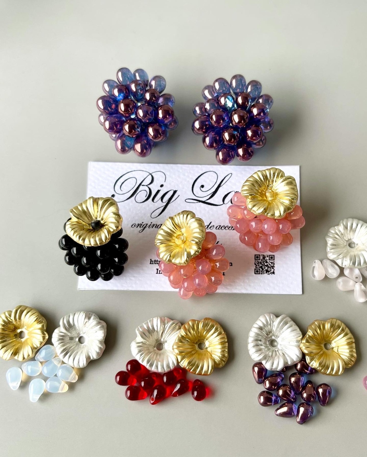 マットなお花とチェコガラスの組み合わせが堪らないキュートさ ‼️